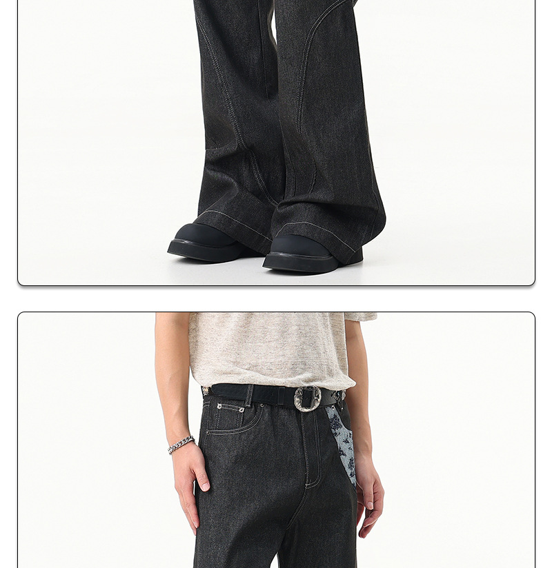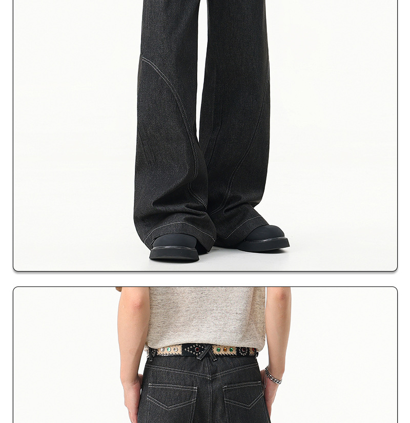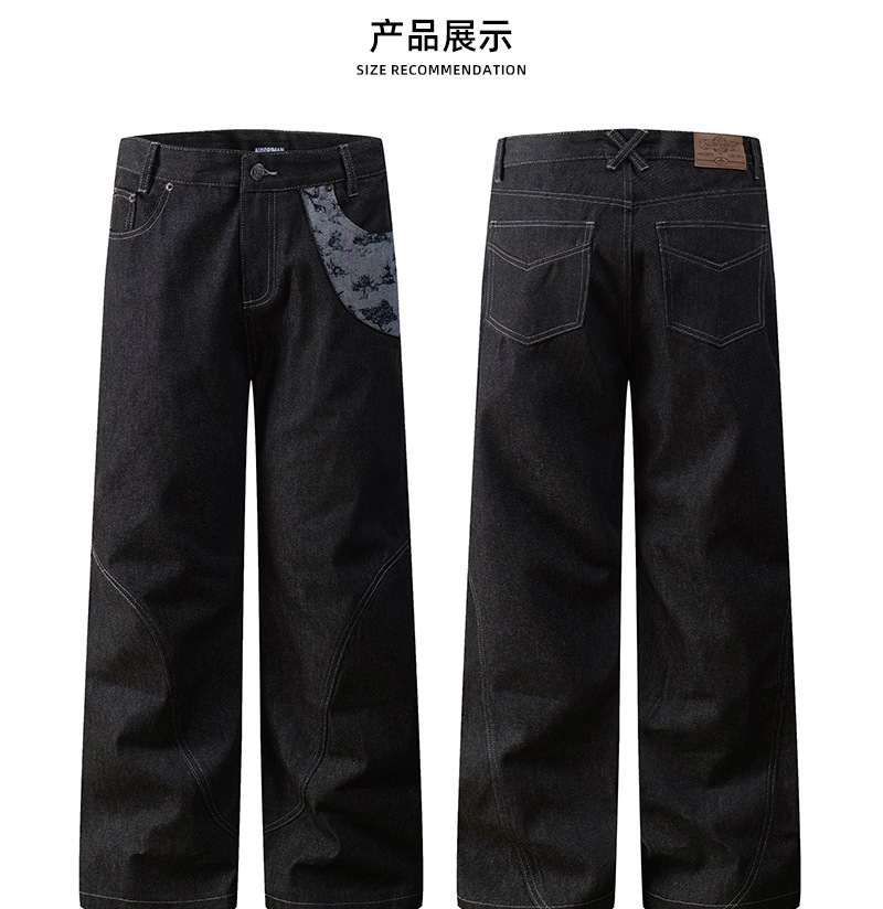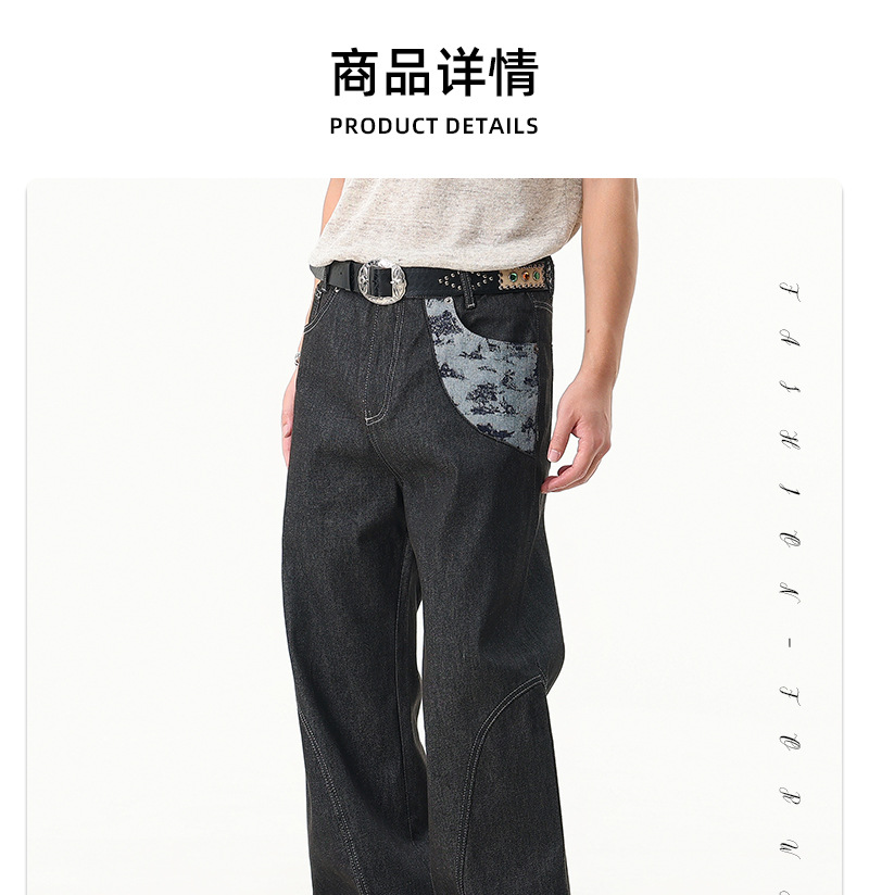 Модные мужские джинсы для лета, в американском стиле, облегающие, с изогнутыми штанинами, универсальные, с узорчатыми вставками, слегка расклешенные длинные брюки, стильные.