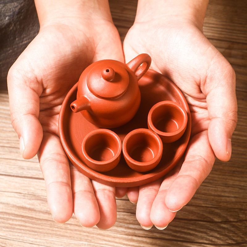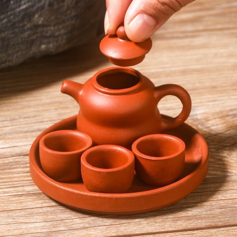 Детский чайный набор, мини-чайник из фиолетового песка, чайник, чашка, поднос для чая, украшения для чайных домашних животных, песочный стол, ландшафтное украшение