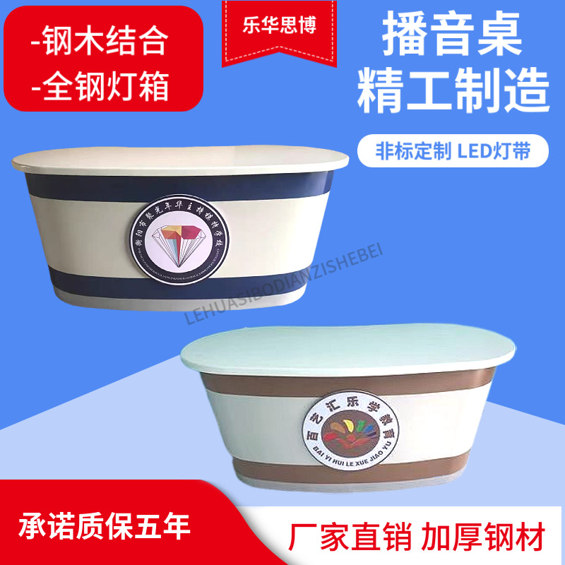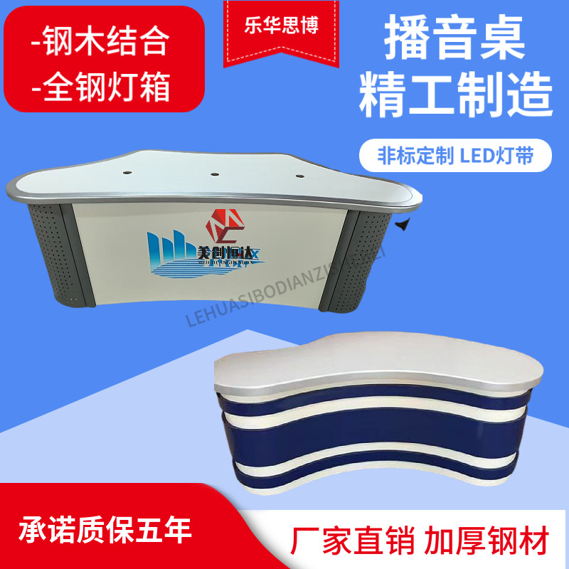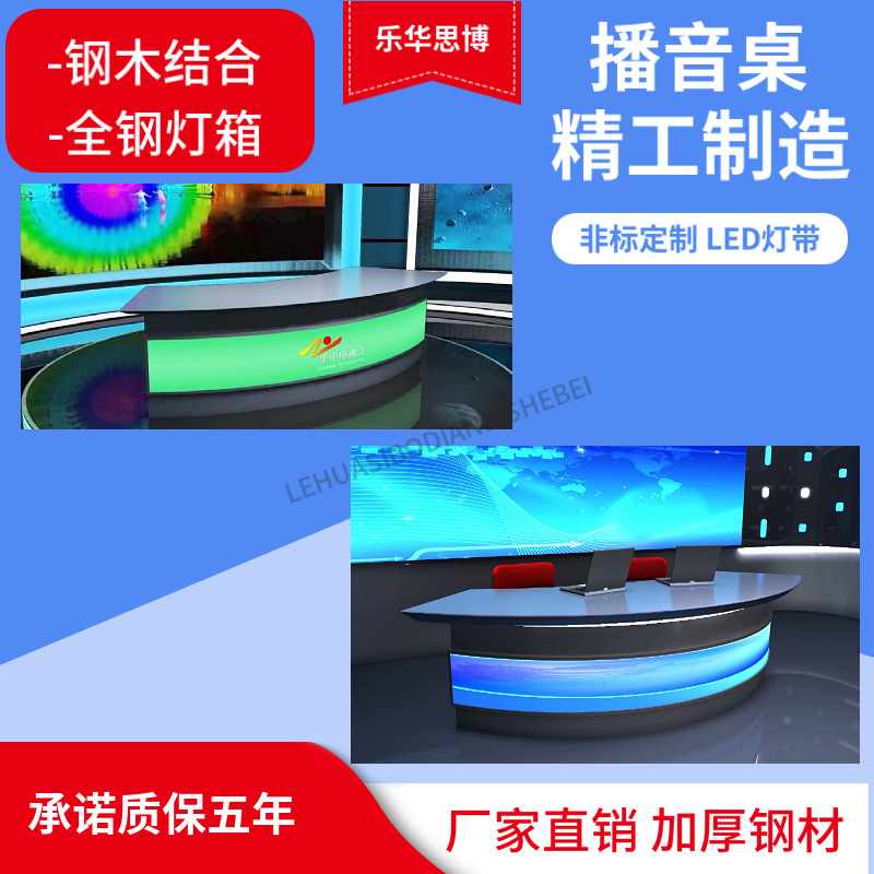 Изготовленные на заказ световые короба различных размеров, стилей и цветов, трансляционные столы, студийные столы, столы для интервью, столы для прямых трансляций.