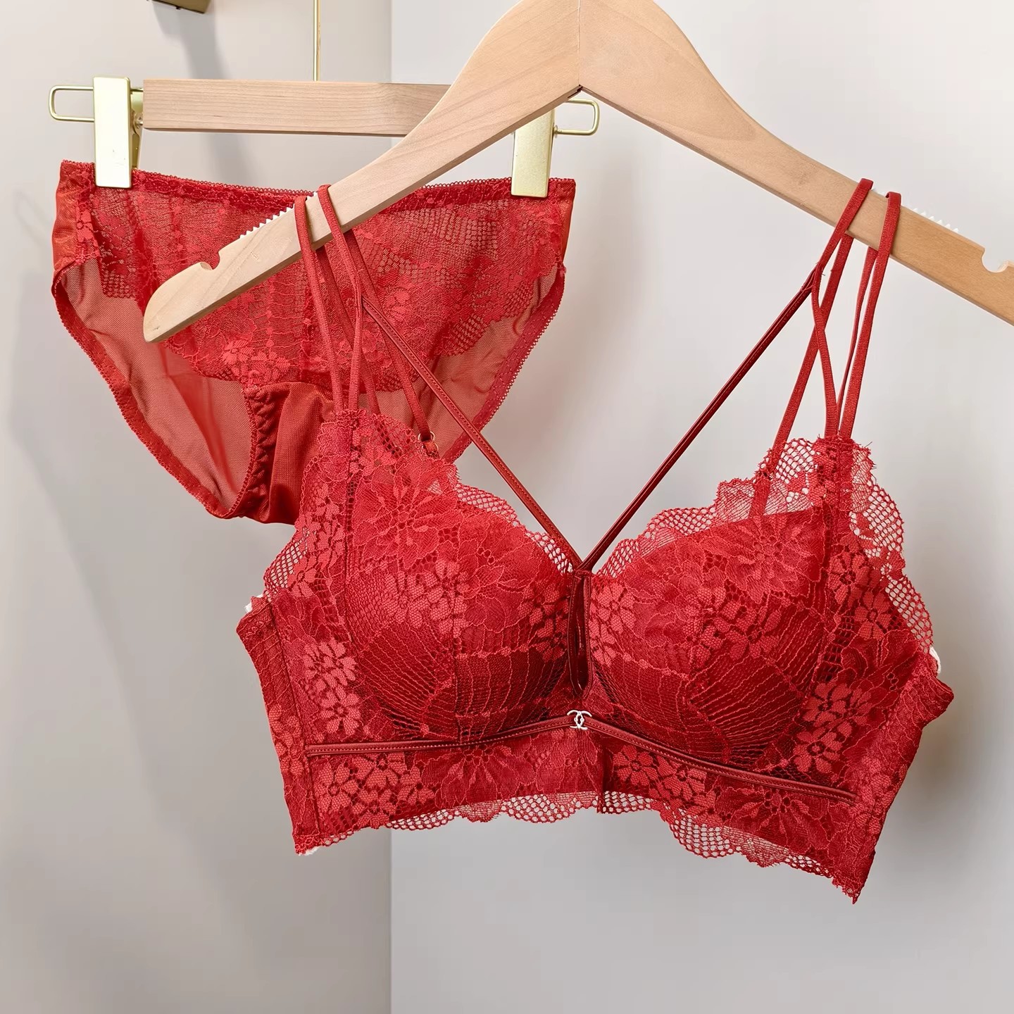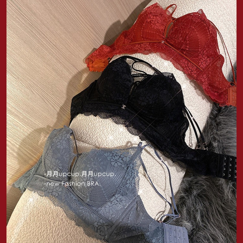 Ретро сексуальное кружевное нижнее белье с красивой спиной для женщин с маленькой грудью, комплект бюстгальтера пуш-ап и противопровисающего бюстгальтера без ободков