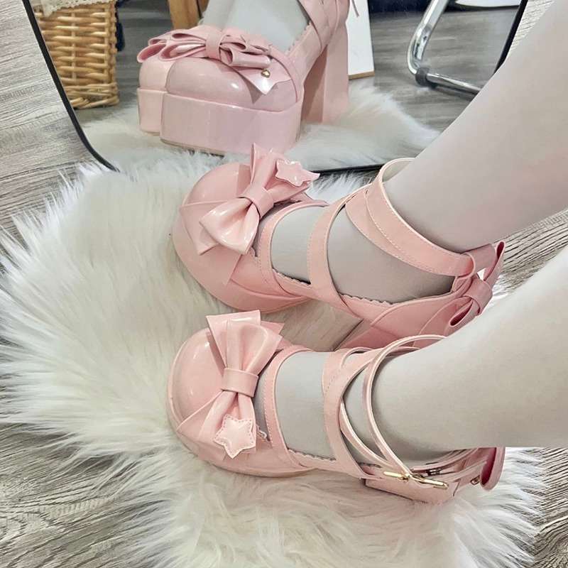 Туфли Sweet Lolita с круглым носком, милые туфли Лолиты для девочек JK, японский стиль, Мэри Джейн, на толстом каблуке, высокие каблуки, водонепроницаемая платформа