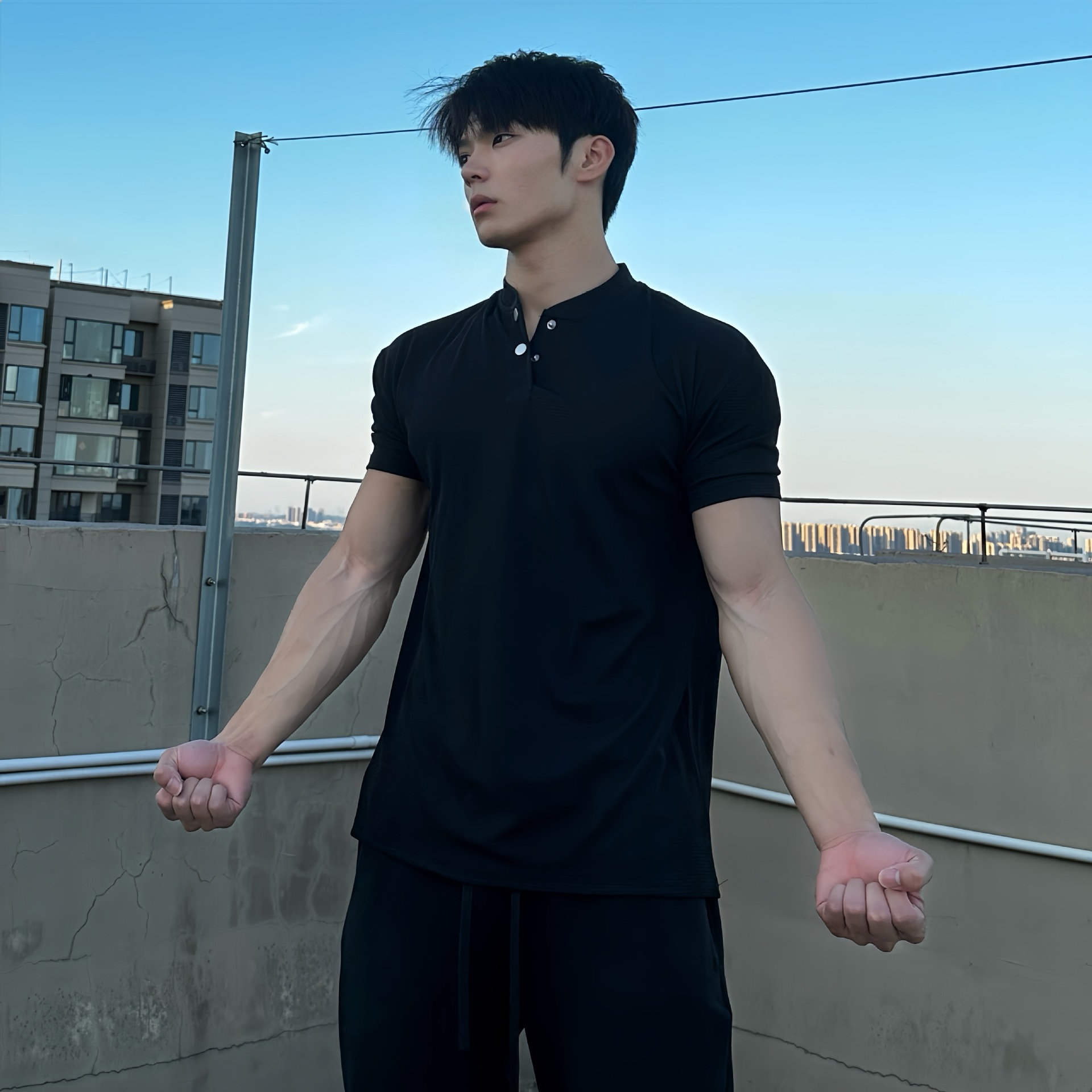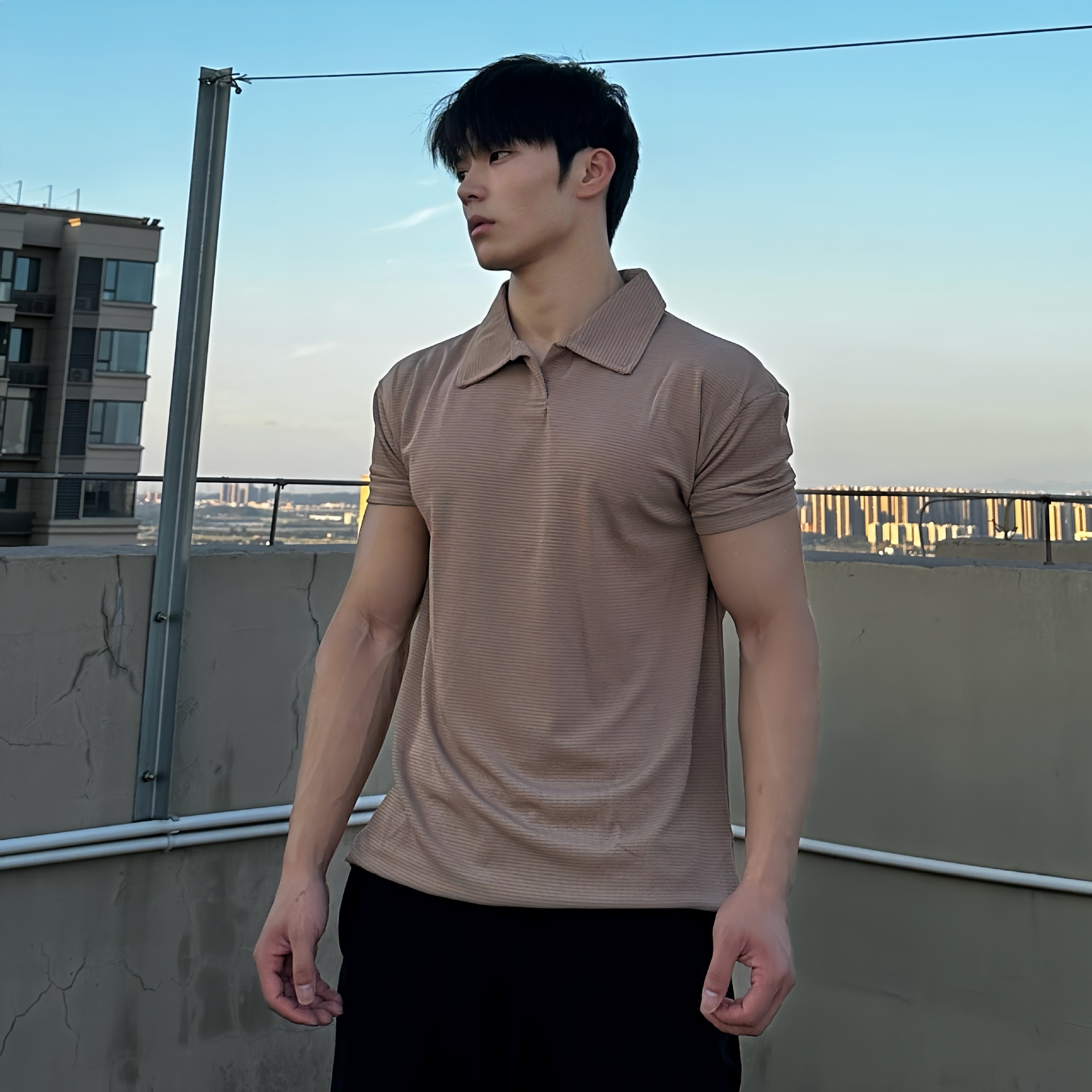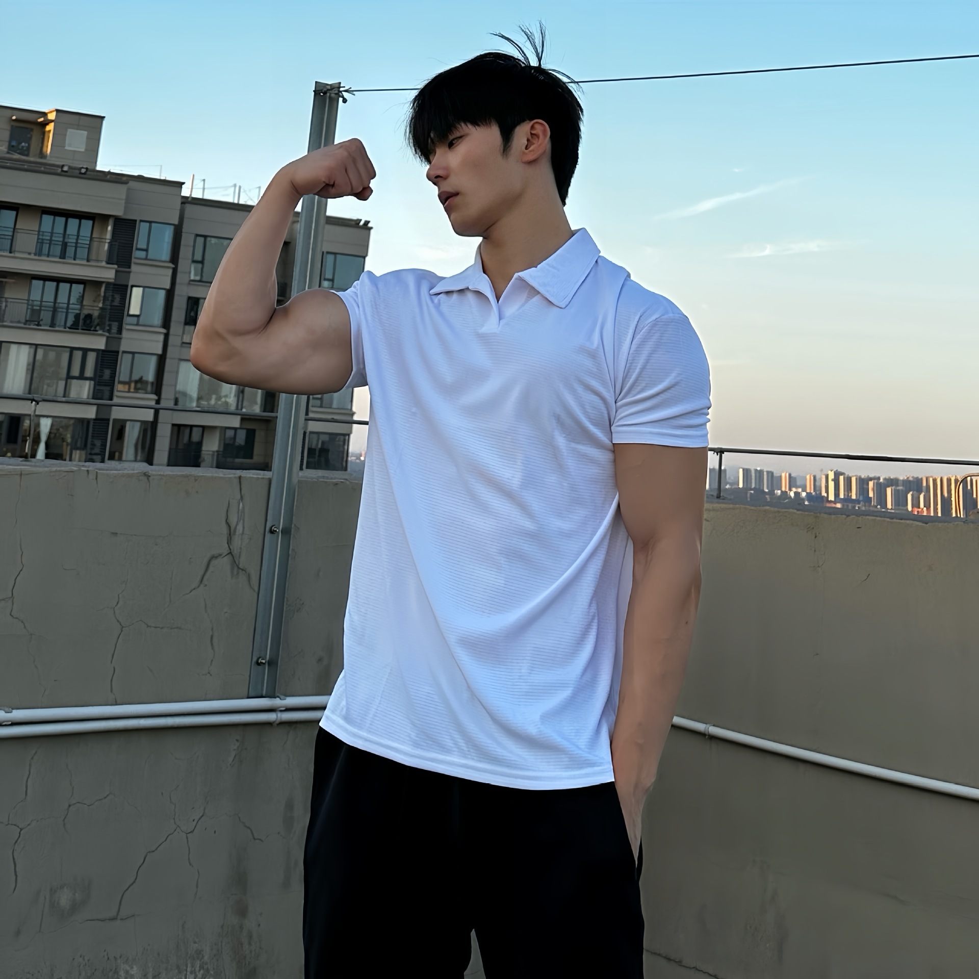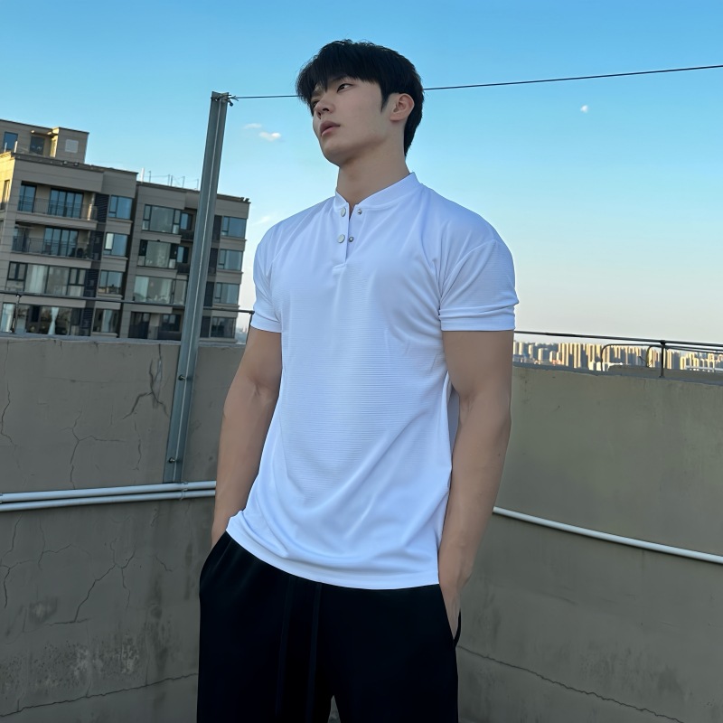 Летняя рубашка-поло с манжетами для спортзала, футболка с короткими рукавами, мужская дышащая быстросохнущая спортивная одежда для фитнеса, повседневная одежда с v-образным вырезом, 250 г