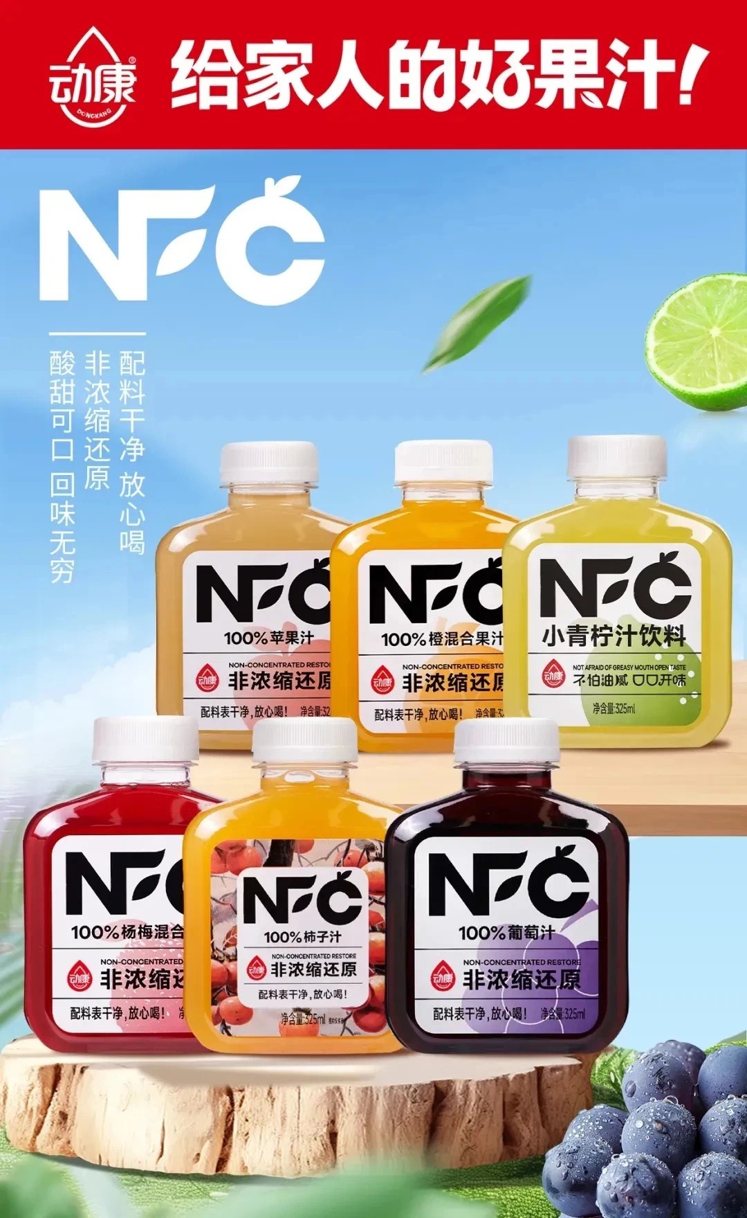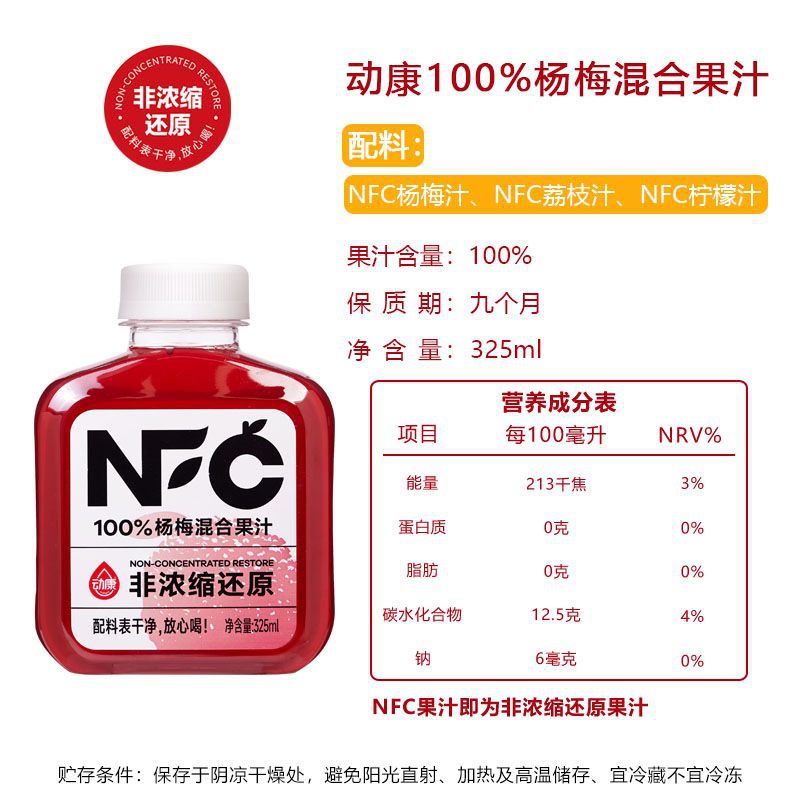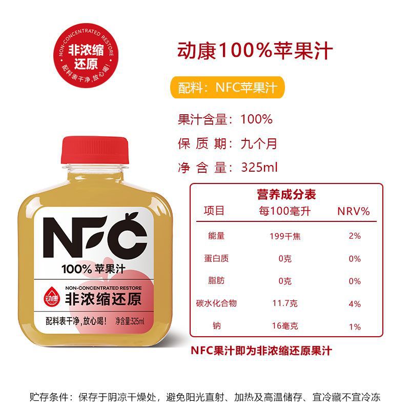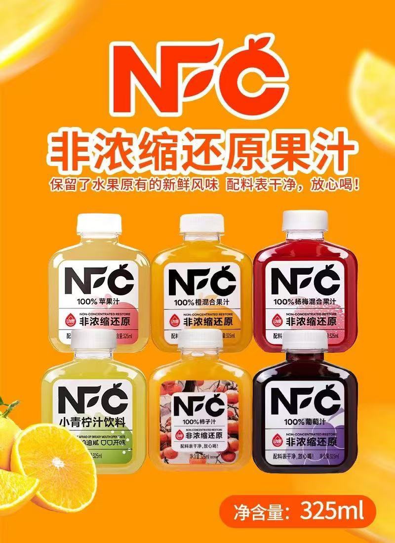 Яблочный сок NFC 325мл; NFC Апельсиновый смешанный сок 325 мл; Смешанный сок NFC Bayberry 325мл; NFC виноградный сок 325мл; NFC небольшой сок лайма 325мл; NFC Wendan смешанный сок 325 мл; Напиток из боярышного сока с NFC, 325 мл; Сок белого персика NFC 325 мл; Сок NFC с морковью, смешанный с фруктами и овощами, 325 мл