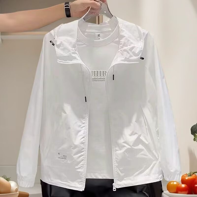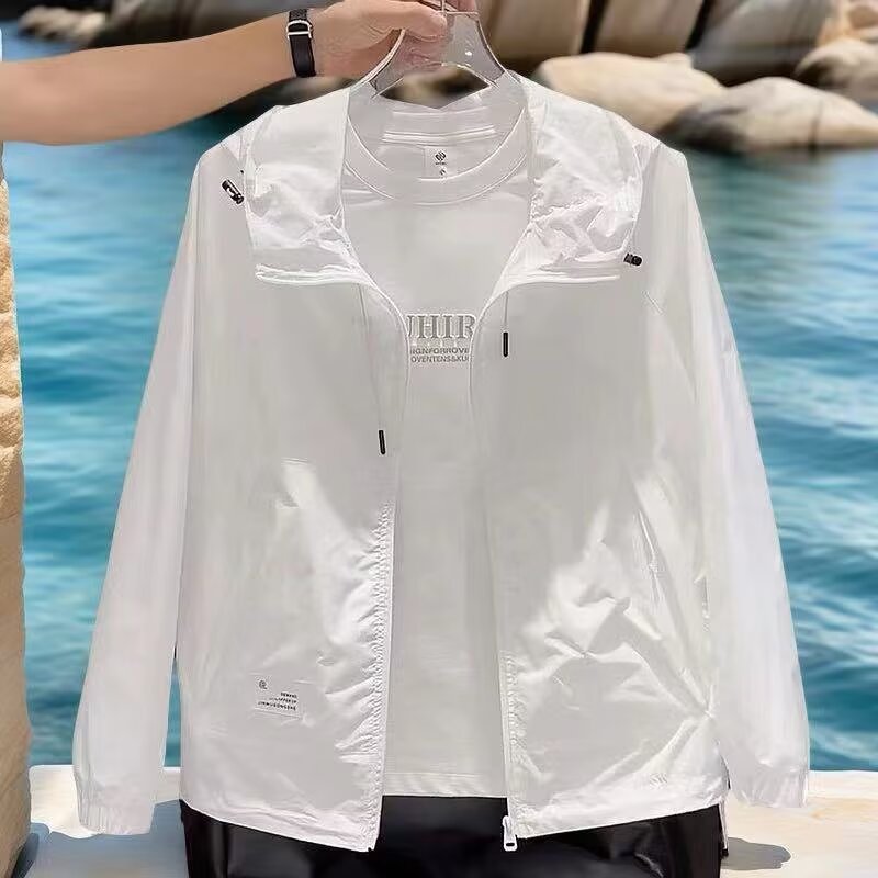 Сплошной цвет, модная летняя солнцезащитная одежда с капюшоном, мужская тонкая куртка, новый стиль, молодежная высококачественная повседневная одежда с длинными рукавами