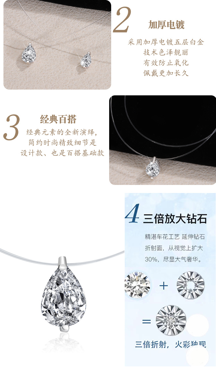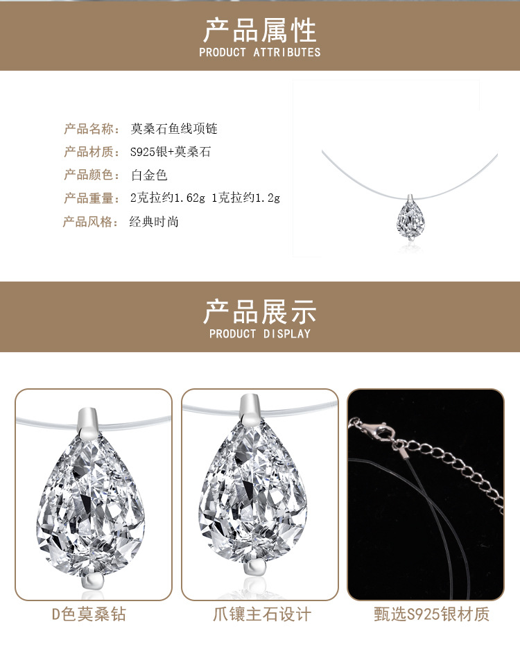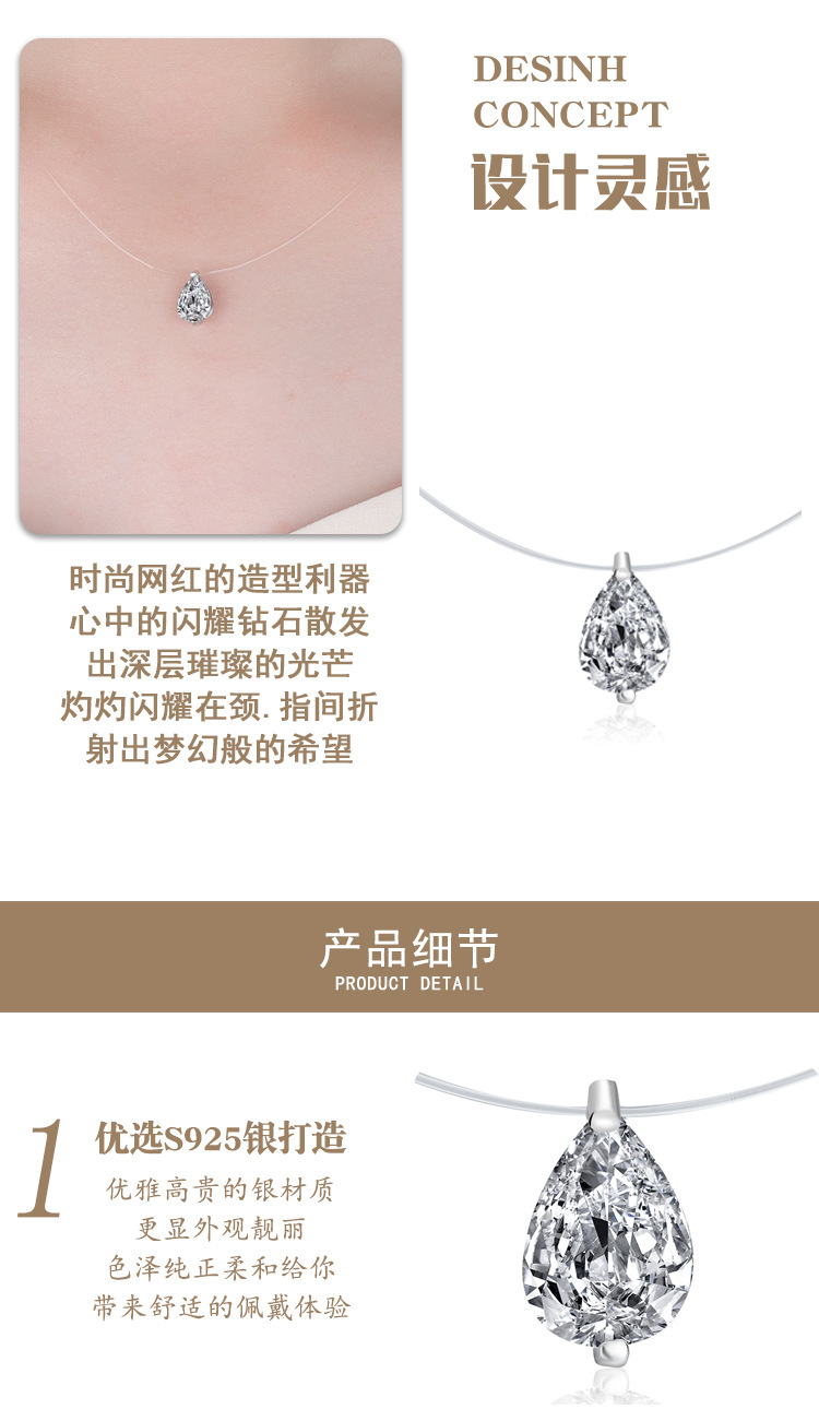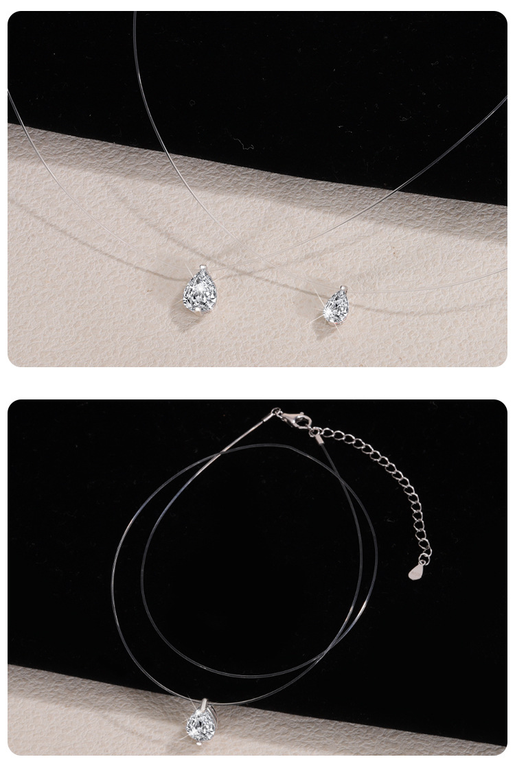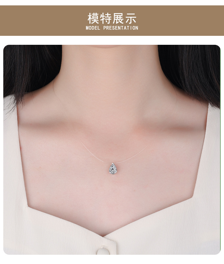 Популярное ожерелье с муассанитом в форме слез русалки, серебро 925 пробы, невидимая леска, капля воды, бриллиант, повседневная супер-флеш-цепочка на ключицу