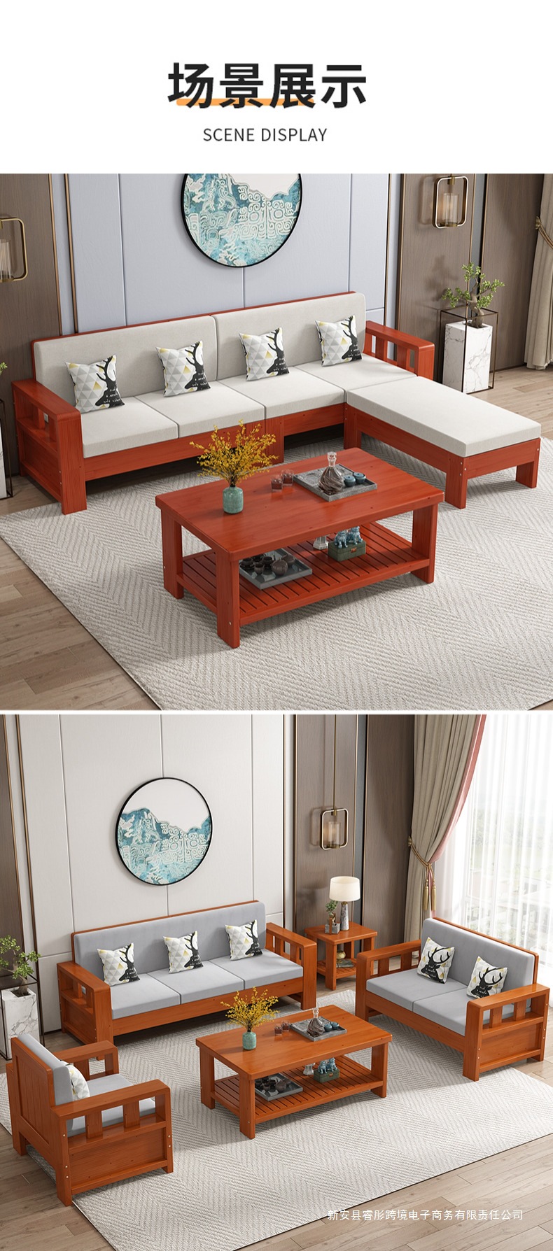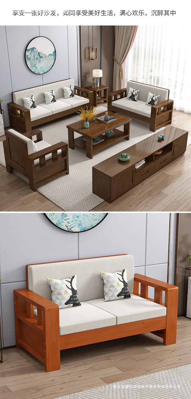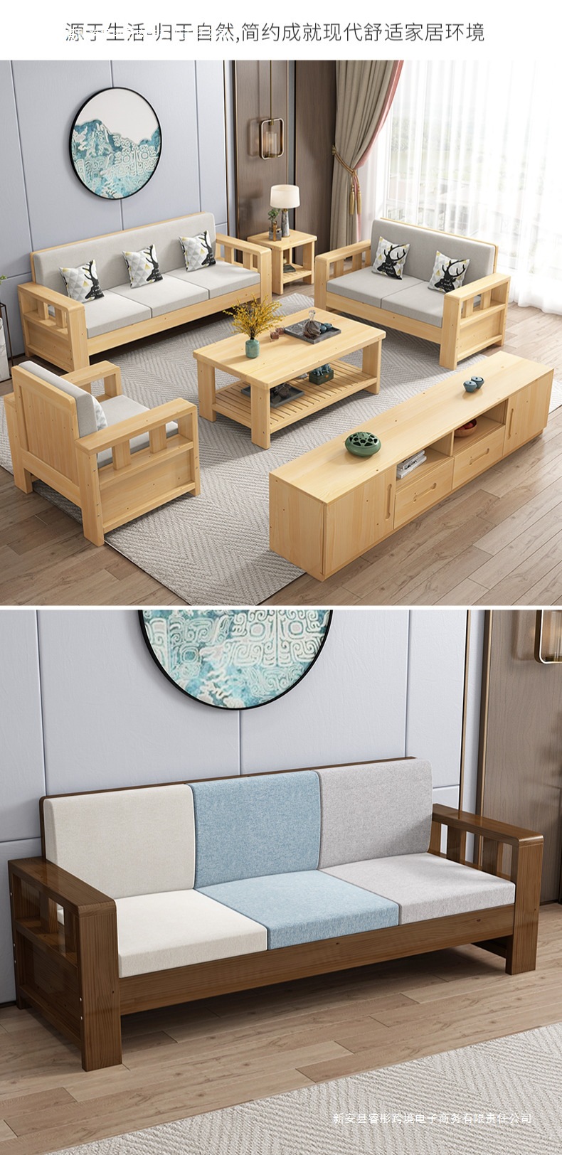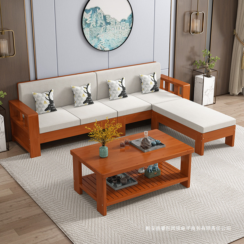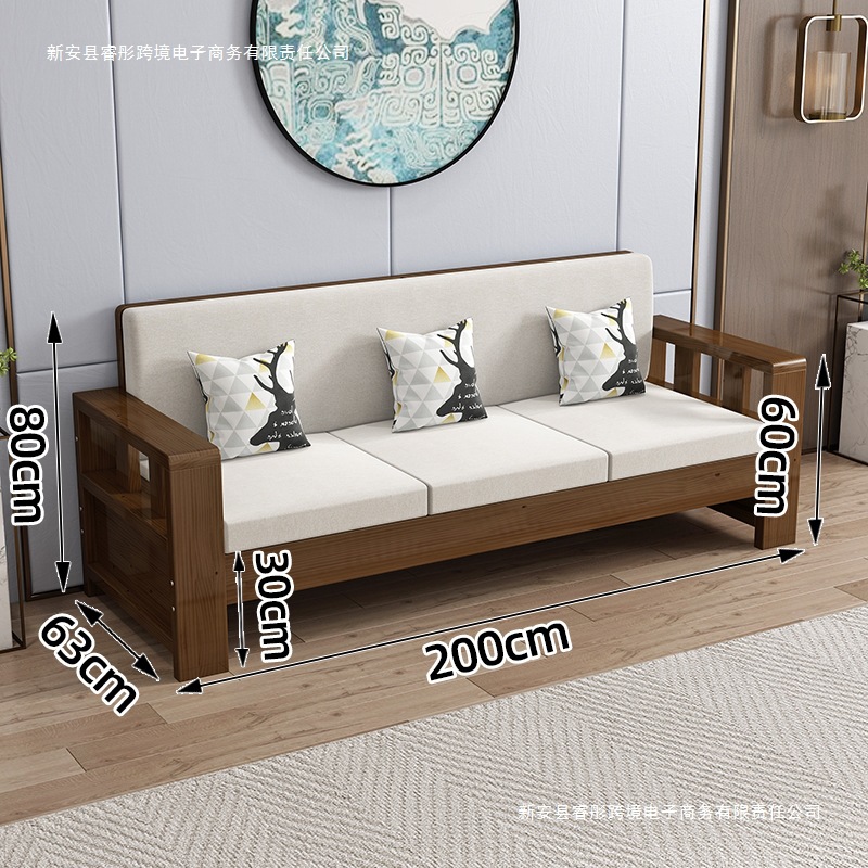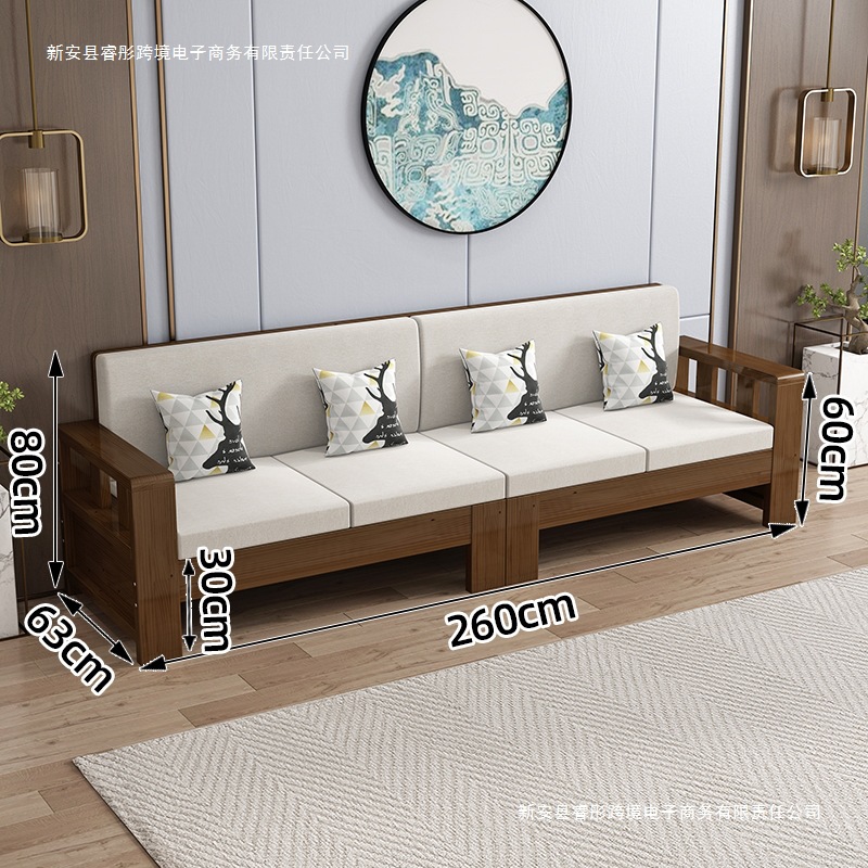 Технологичная ткань, диван из цельного дерева, простой размер для гостиной, новый китайский стиль, экономичный дом для трех человек