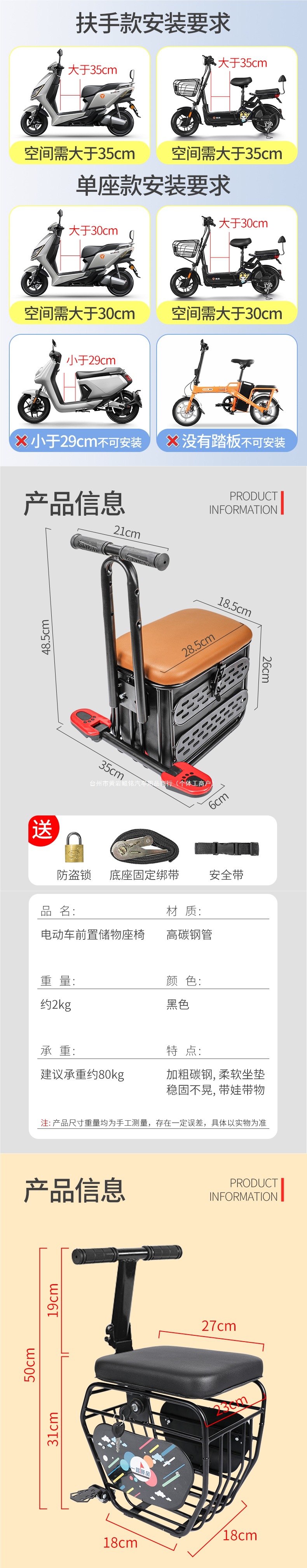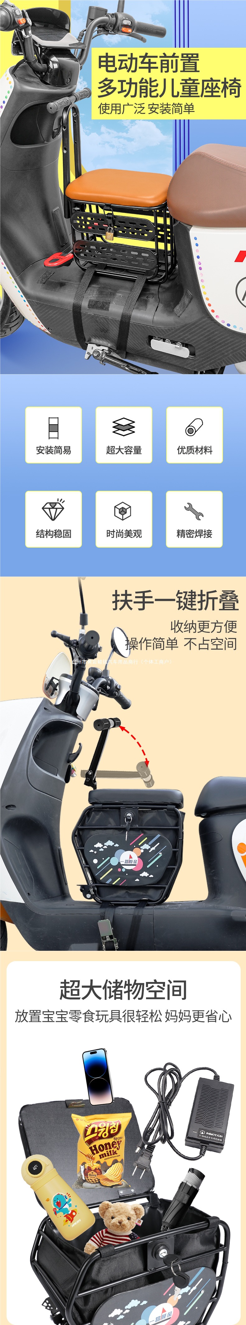 Детское сиденье для электромобиля Yadi, переднее сиденье с ящиком для хранения, подходит для электросамоката Emma Kunming.