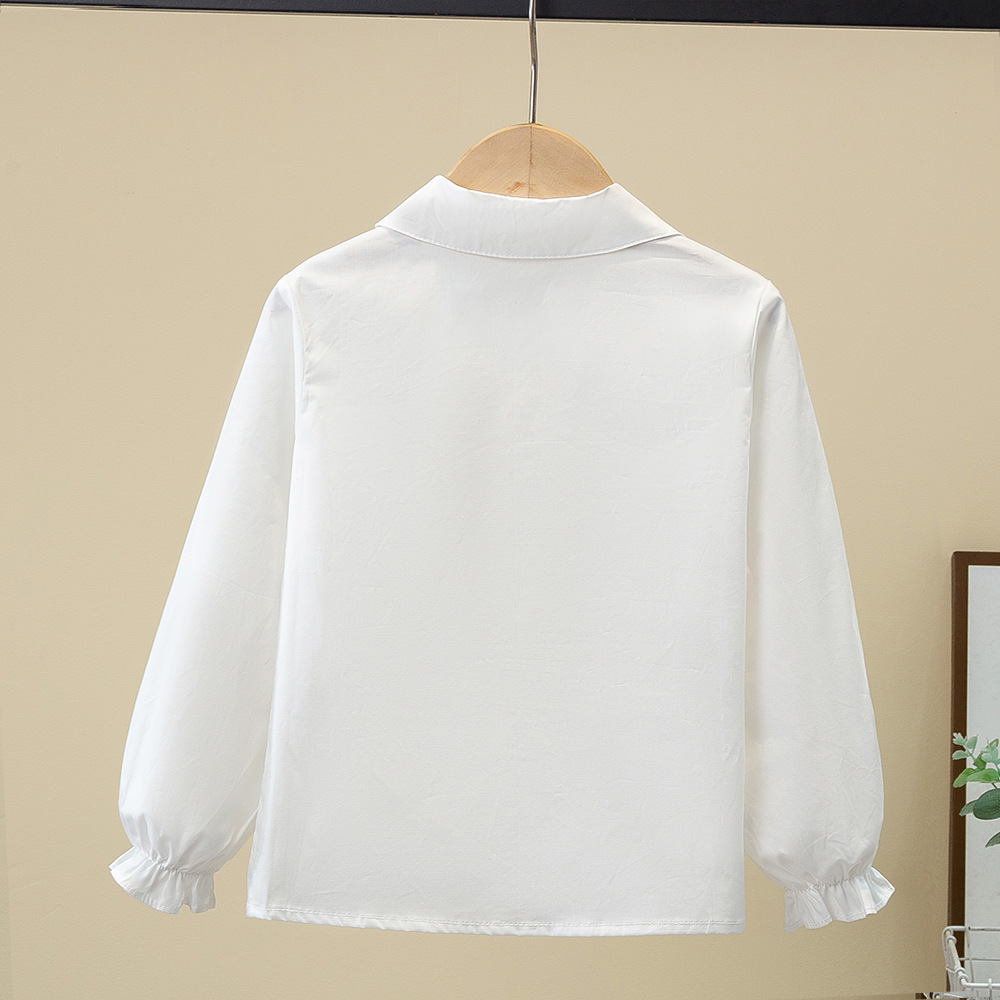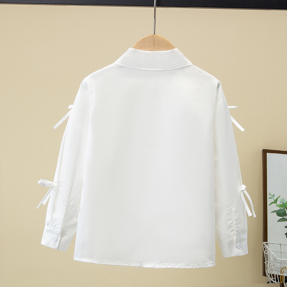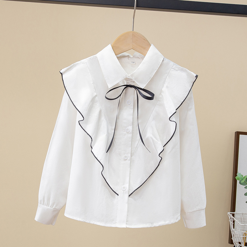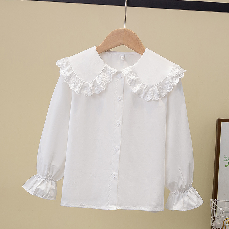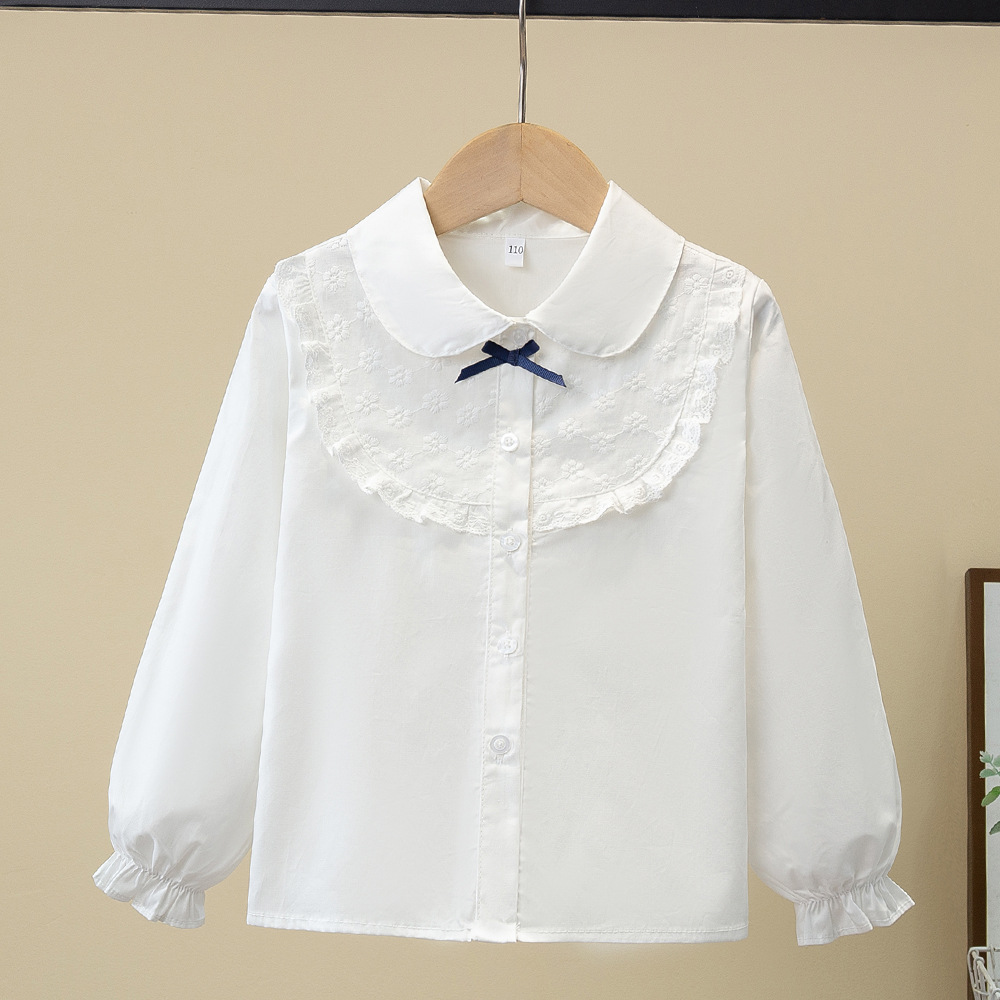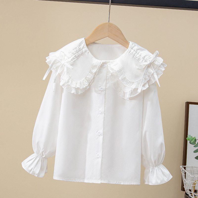 Внешняя торговля, белая рубашка для девочек, весенне-осенний кружевной новый топ, детский кукольный воротник с бантом, чистый хлопок, корейский стиль, стиль принцессы