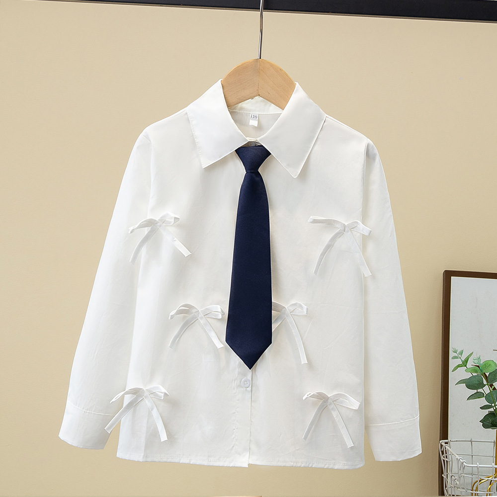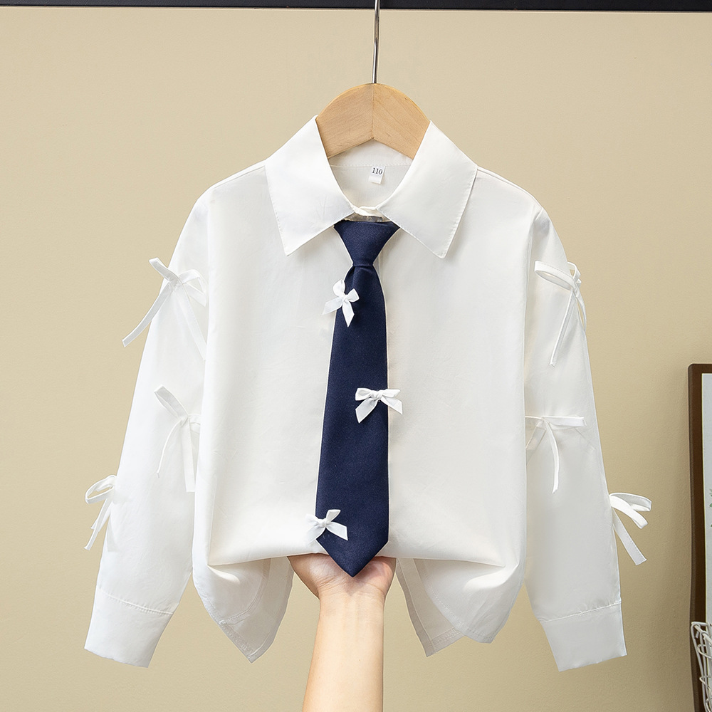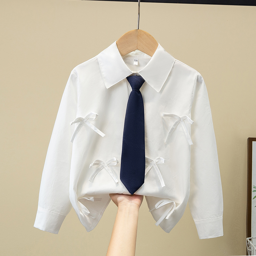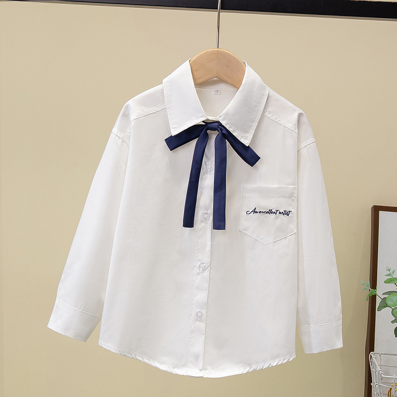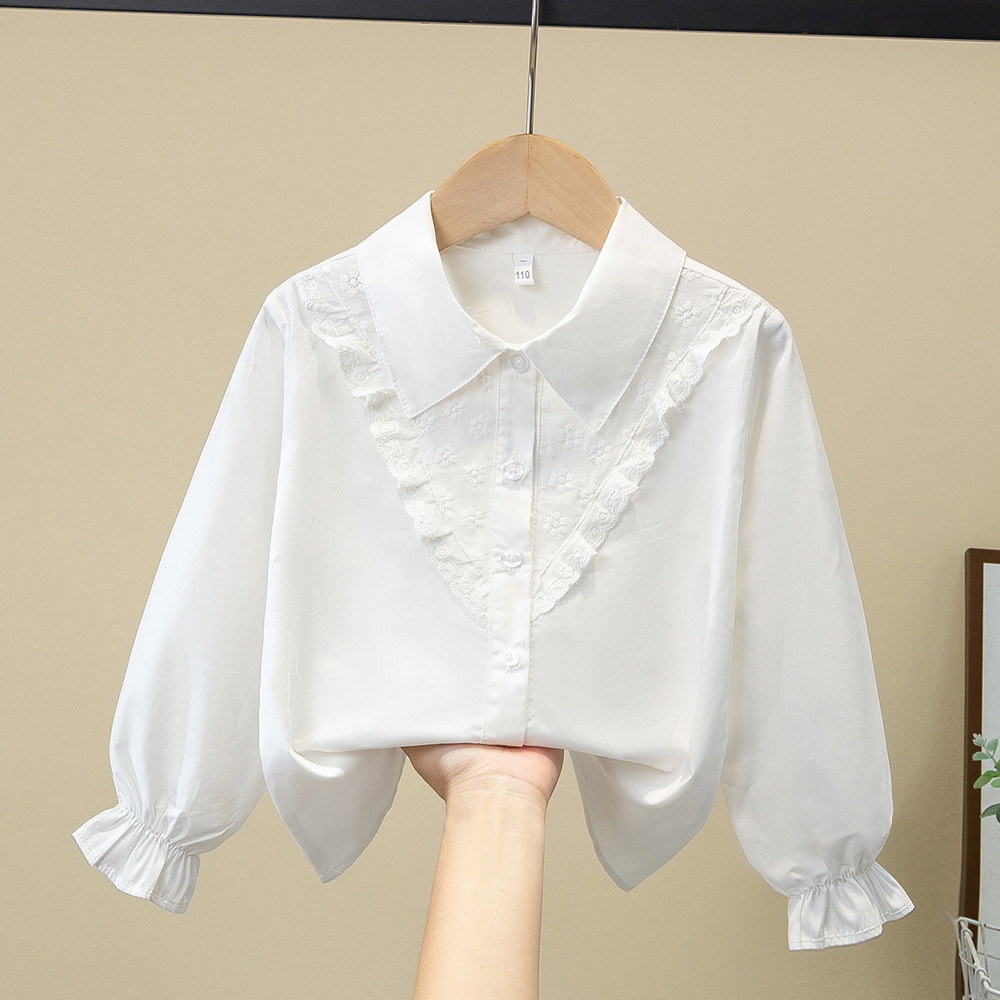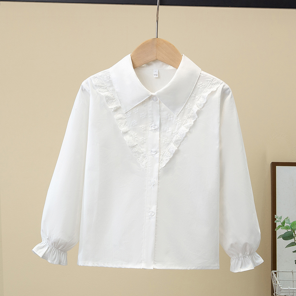 Внешняя торговля, белая рубашка для девочек, весенне-осенний кружевной новый топ, детский кукольный воротник с бантом, чистый хлопок, корейский стиль, стиль принцессы