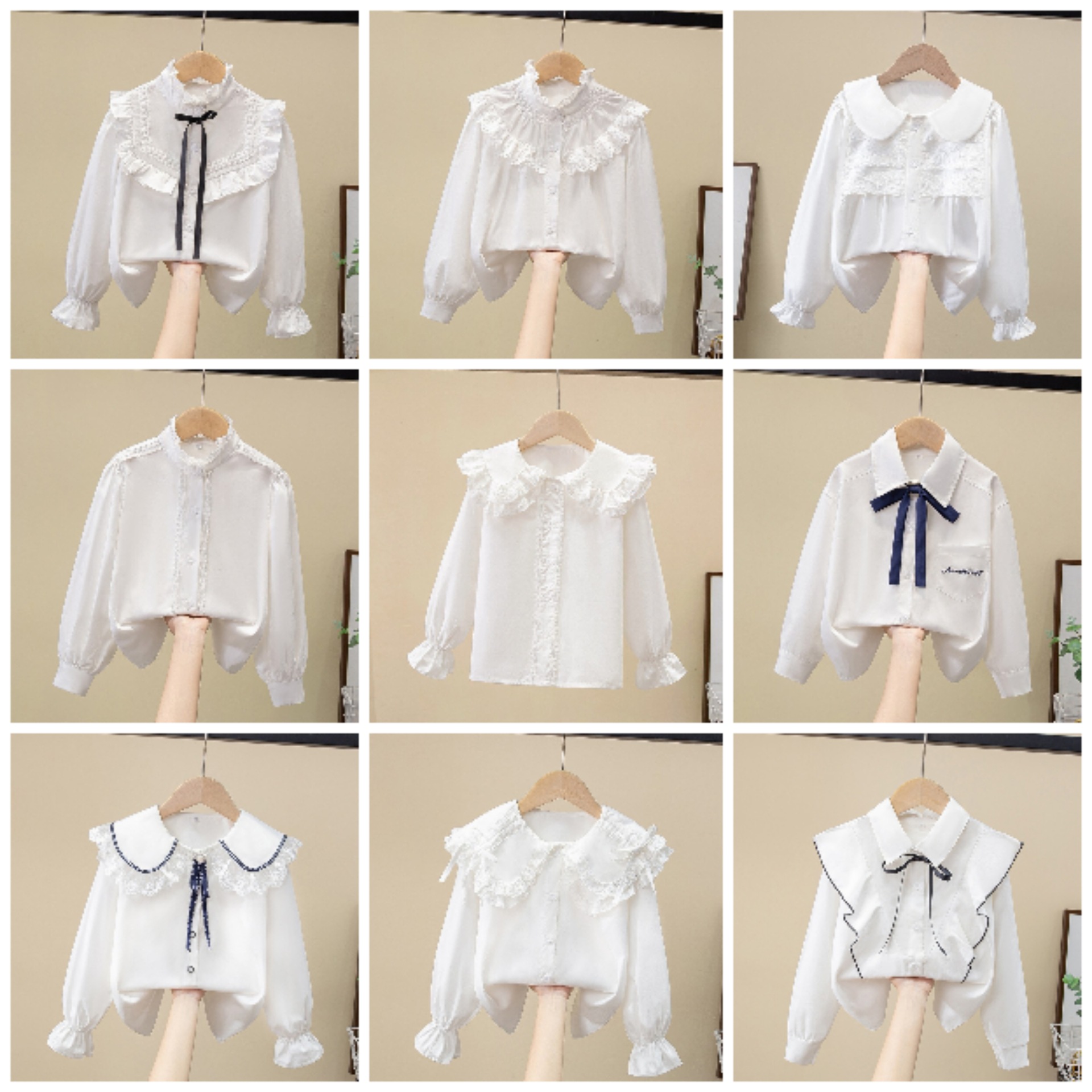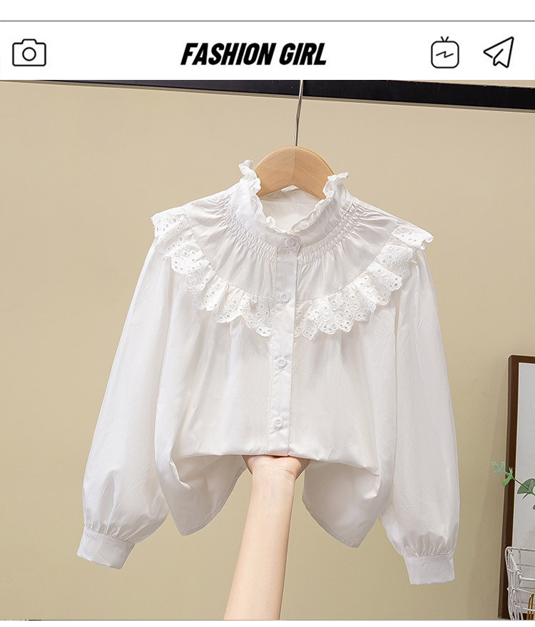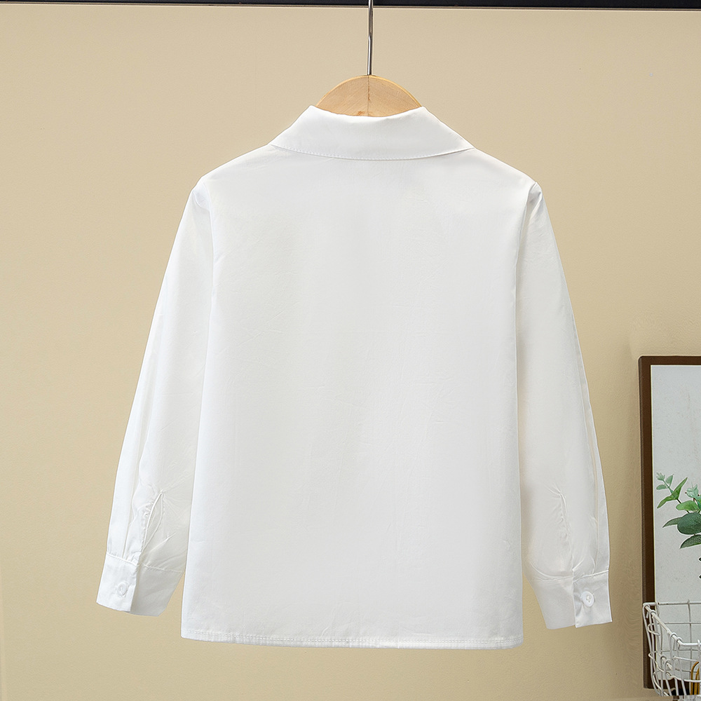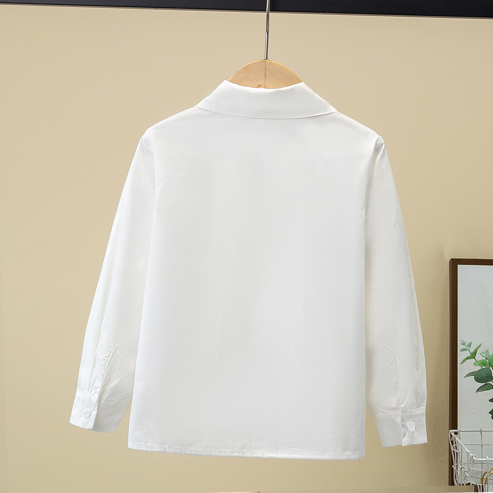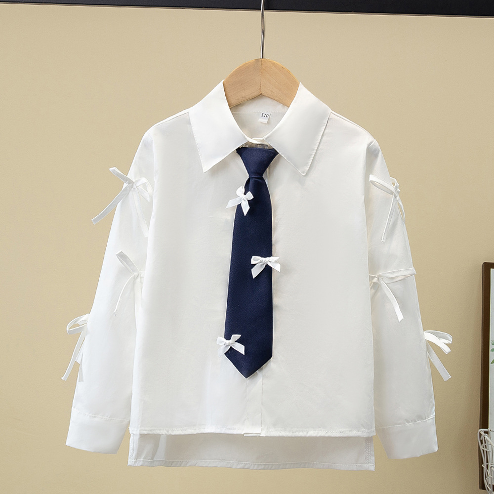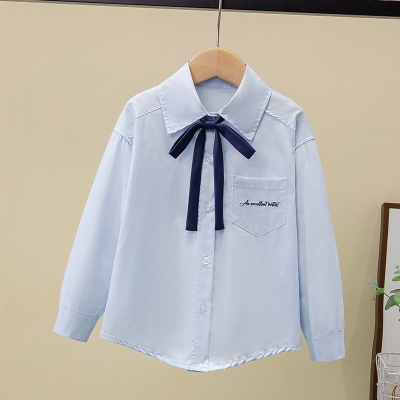 Внешняя торговля, белая рубашка для девочек, весенне-осенний кружевной новый топ, детский кукольный воротник с бантом, чистый хлопок, корейский стиль, стиль принцессы