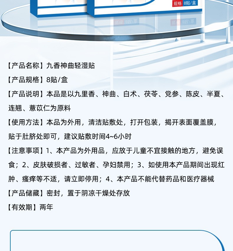Легкая влажная патч Jiuxiang Shenqu [8 пластырей в коробке]