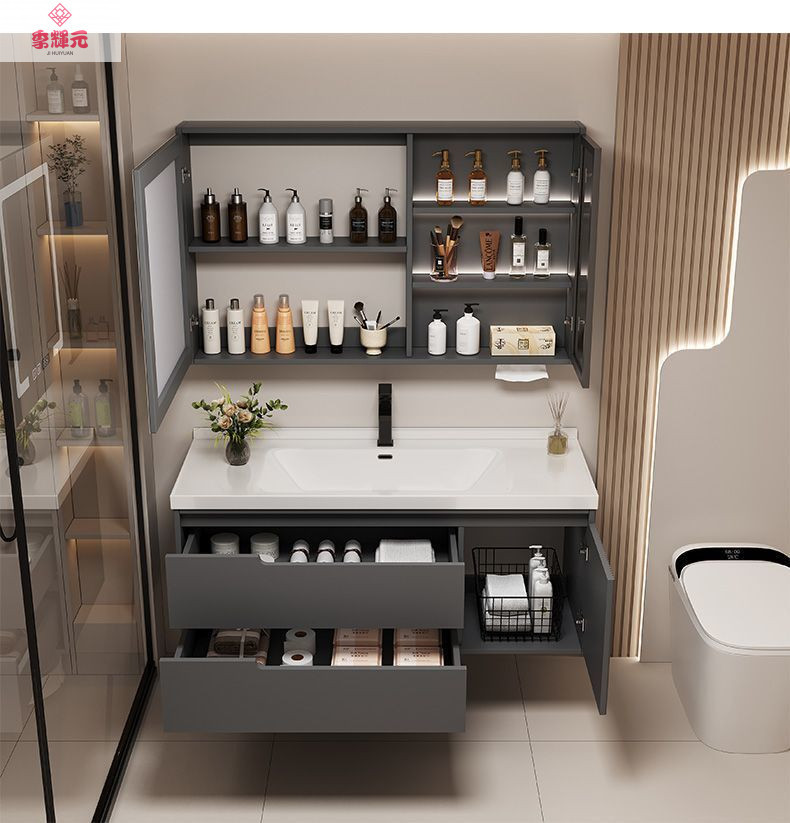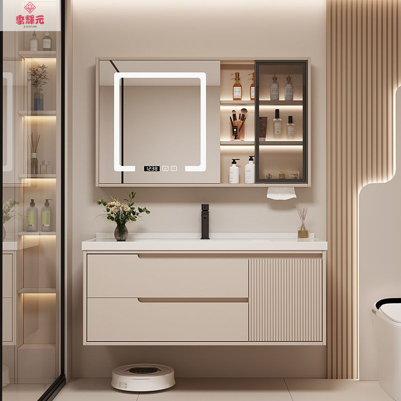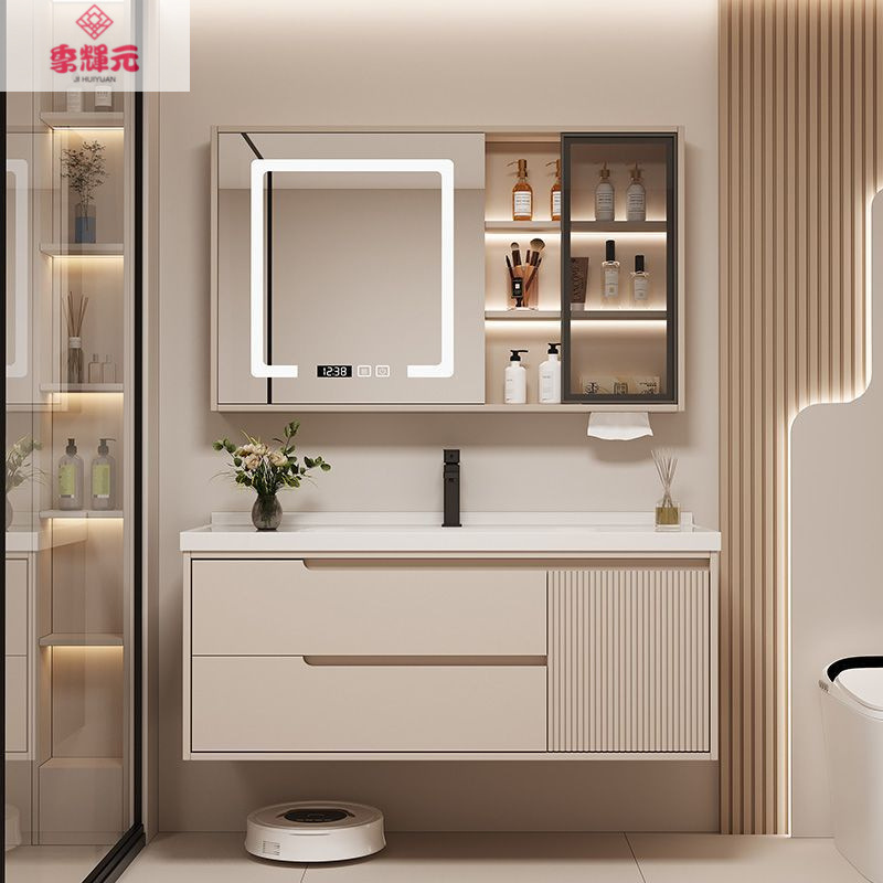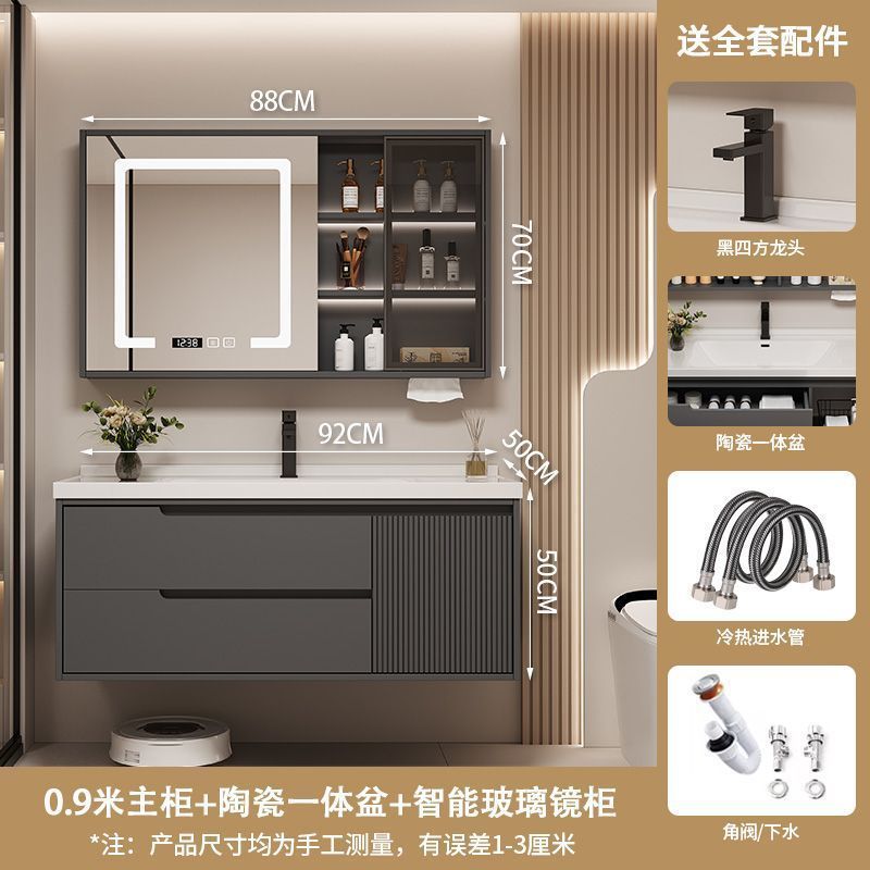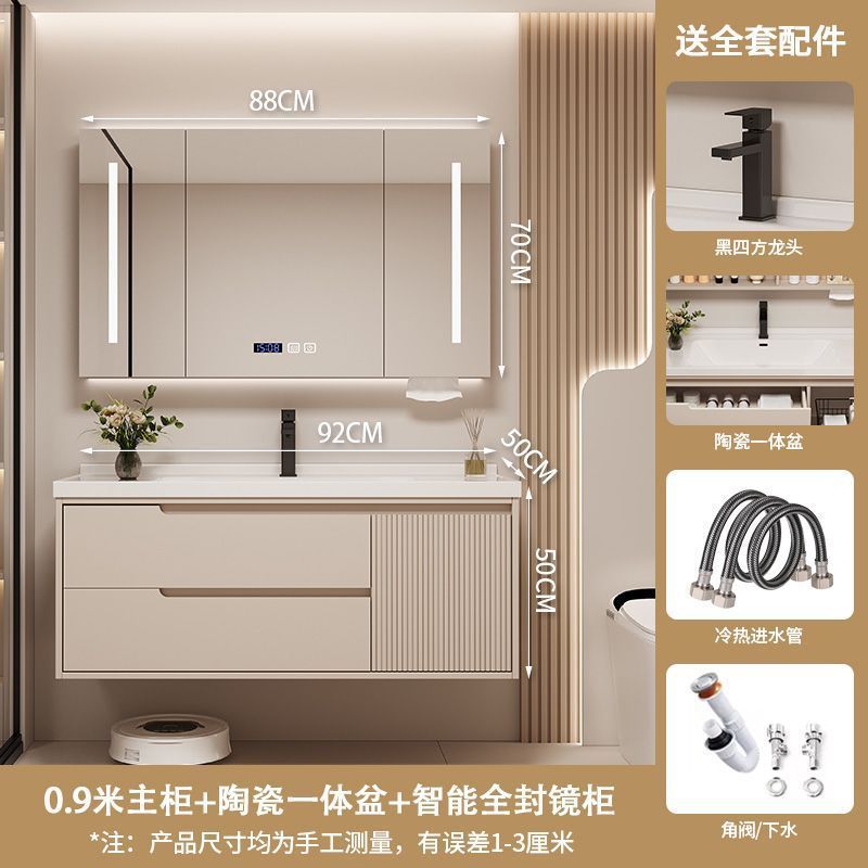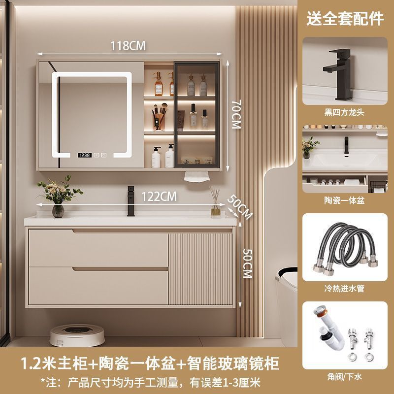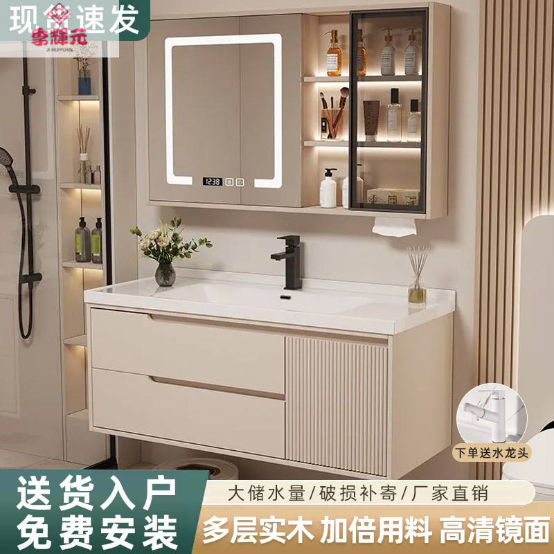 Керамический встроенный умный шкаф для ванной комнаты из утолщенного дуба, комбинированный керамический шкаф для ванной комнаты, туалетный настенный шкаф, настенный шкаф, напольная стойка