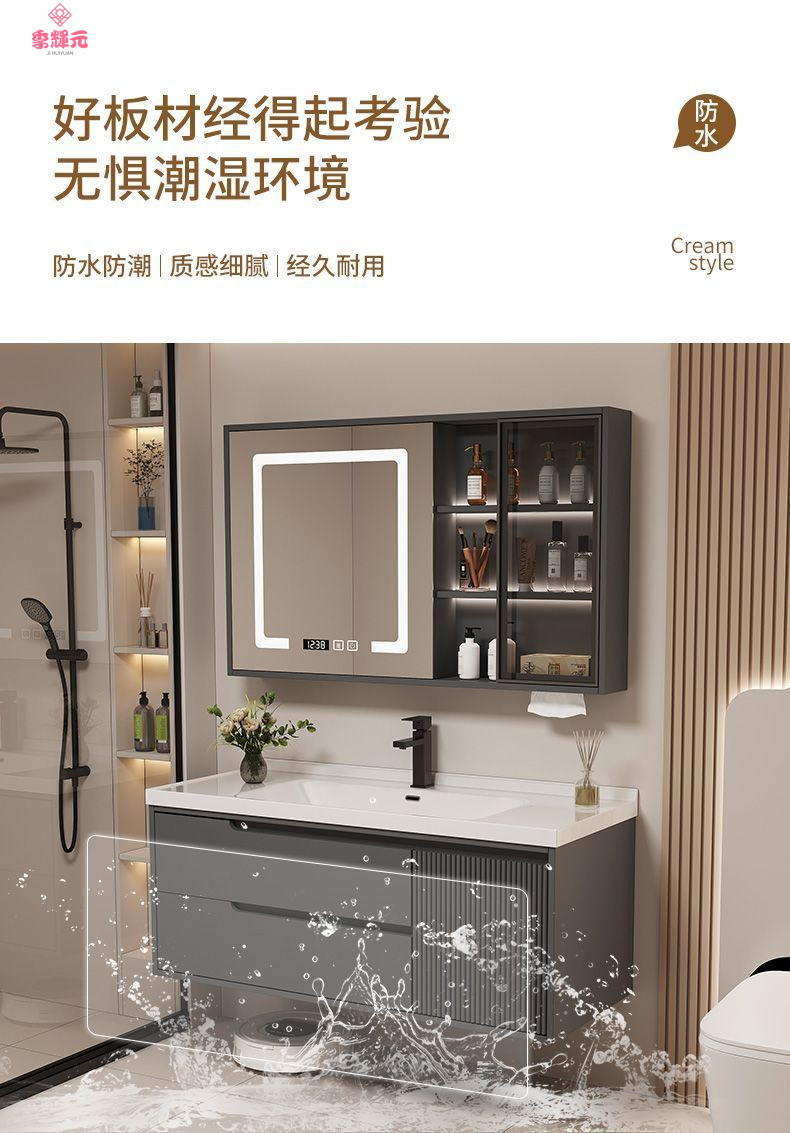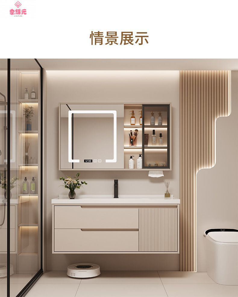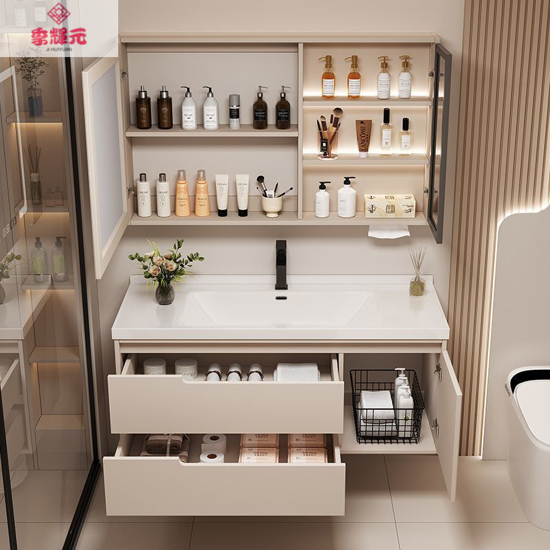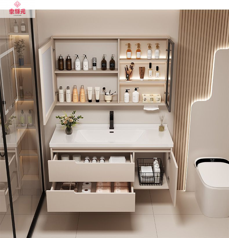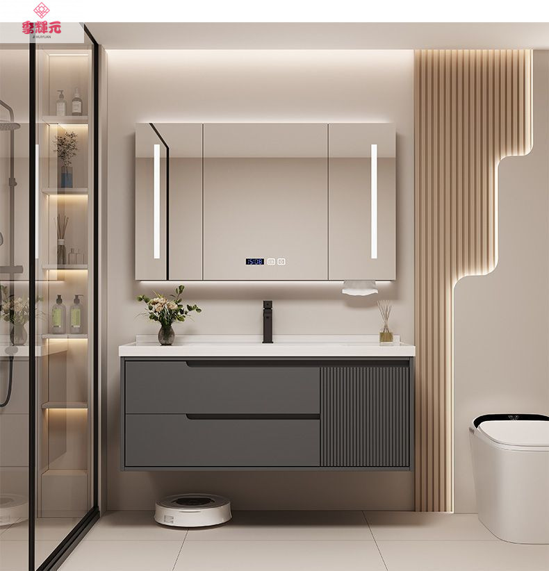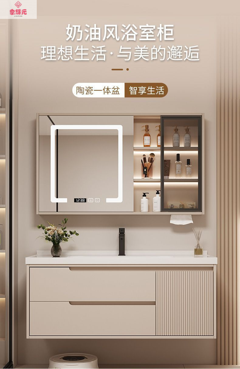 Керамический встроенный умный шкаф для ванной комнаты из утолщенного дуба, комбинированный керамический шкаф для ванной комнаты, туалетный настенный шкаф, настенный шкаф, напольная стойка