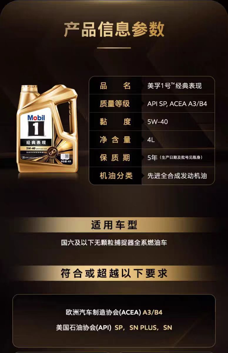 Моторное масло Mobil Classic Performance, полностью синтетическое, класс SP, 0W-40, для автомобильных двигателей, 1 л, специализированное