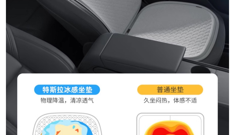 Подходит для модели подушки Tesla 3y, вентиляции сиденья и дышащей модели Ya, летний чехол для стула из ледяного шелка, автомобильные аксессуары