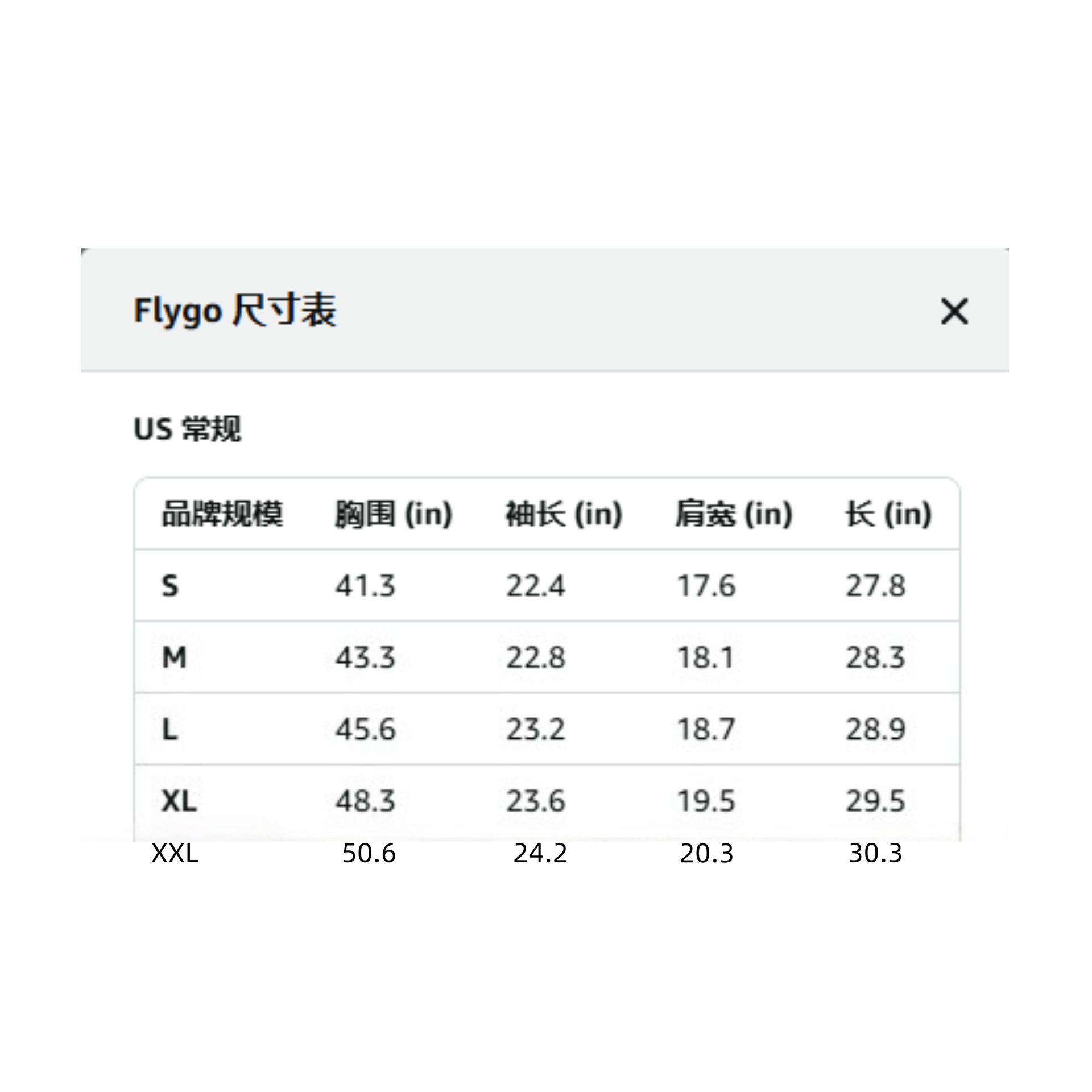 S; M; L; XL; XXL