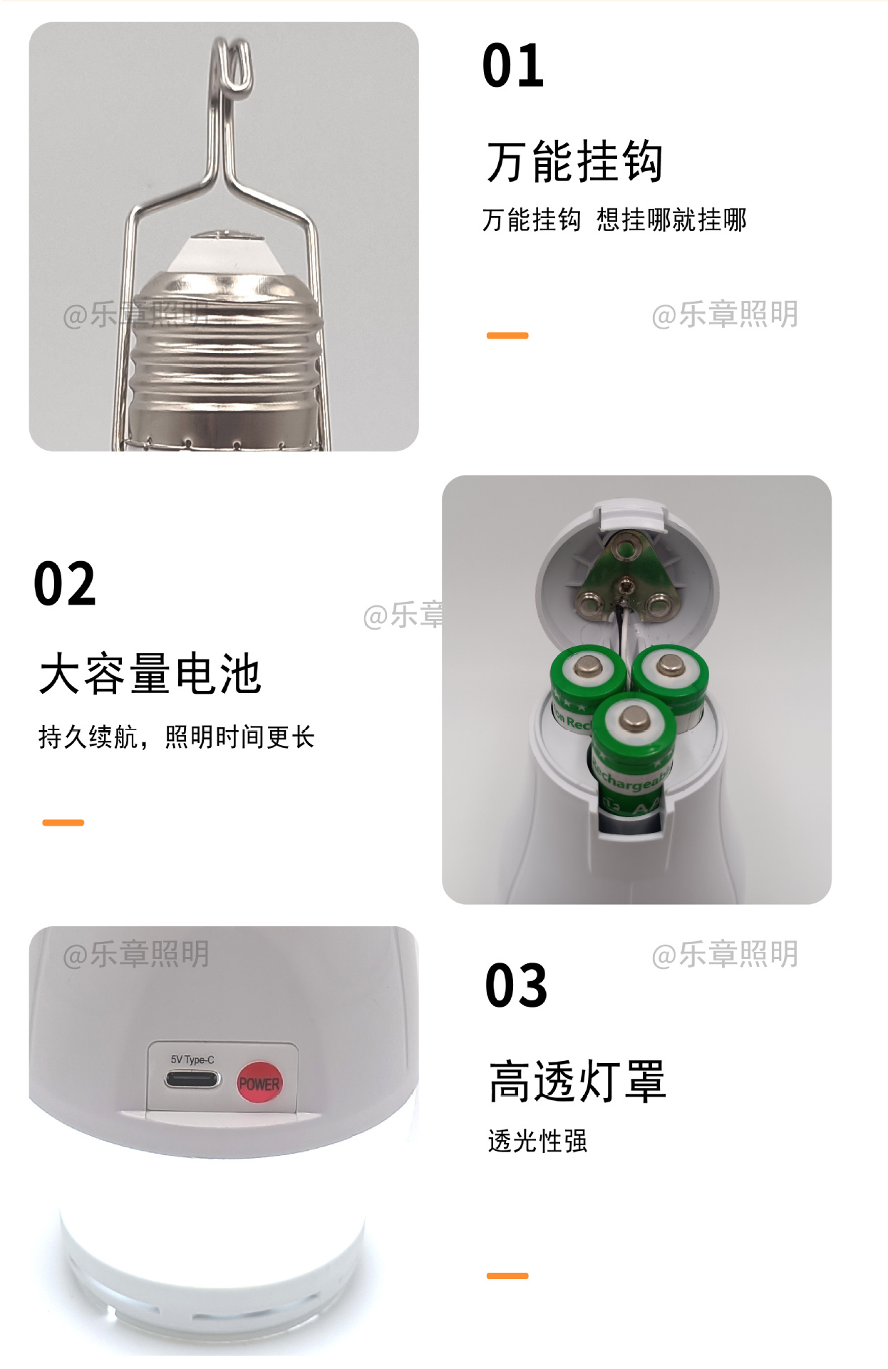 Съемный двойной аккумулятор мощностью 15 Вт, аккумулятор E27/2400 мАч.; Съемный тройной аккумулятор мощностью 20 Вт, аккумулятор E27/3600 мАч.