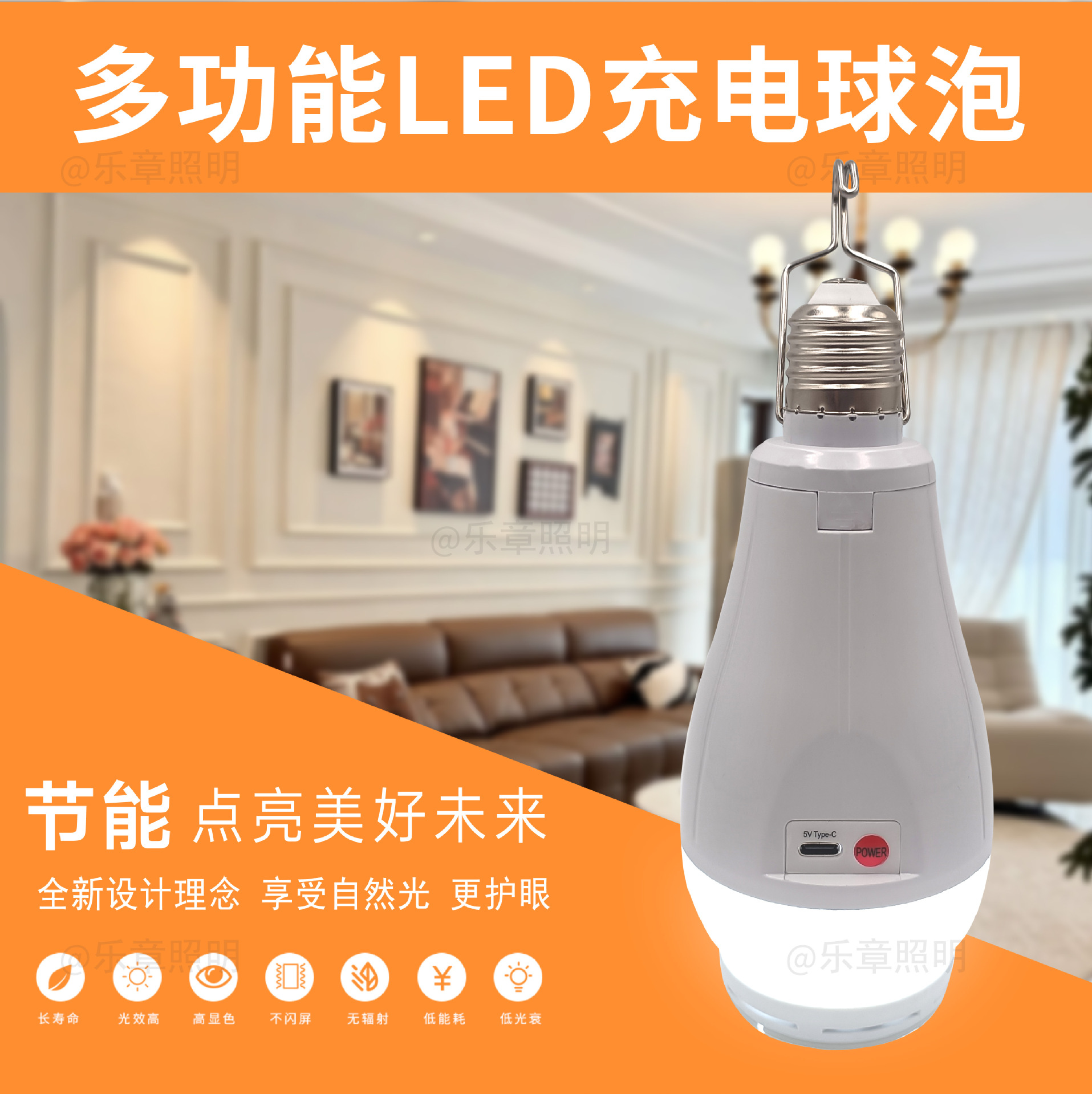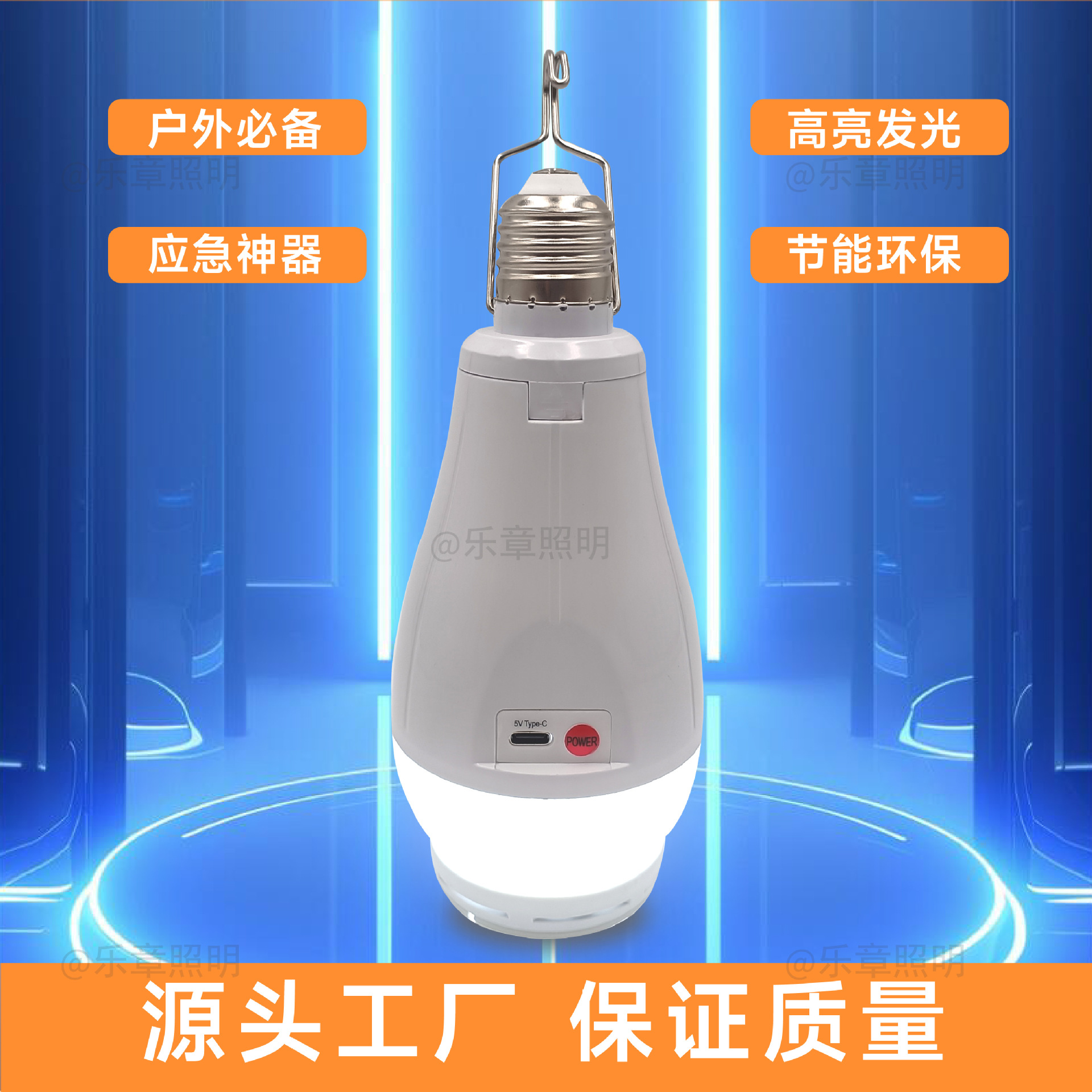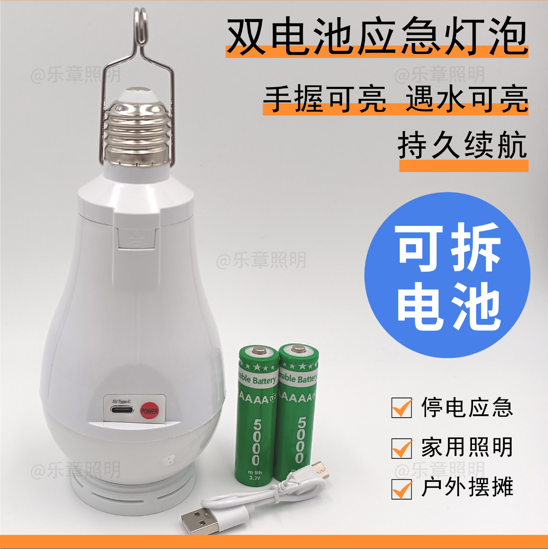 Заводская светодиодная лампа с двойным аккумулятором, съемная, цоколь E27, крестообразная, тип-C, аварийная лампа