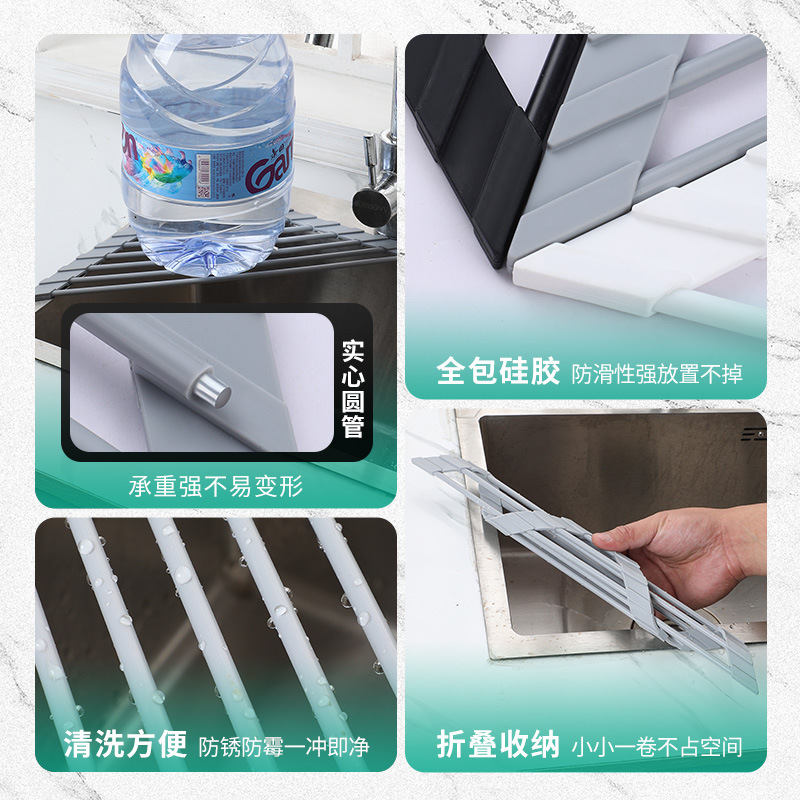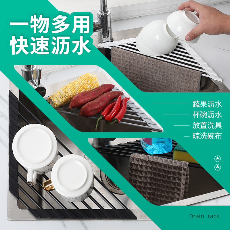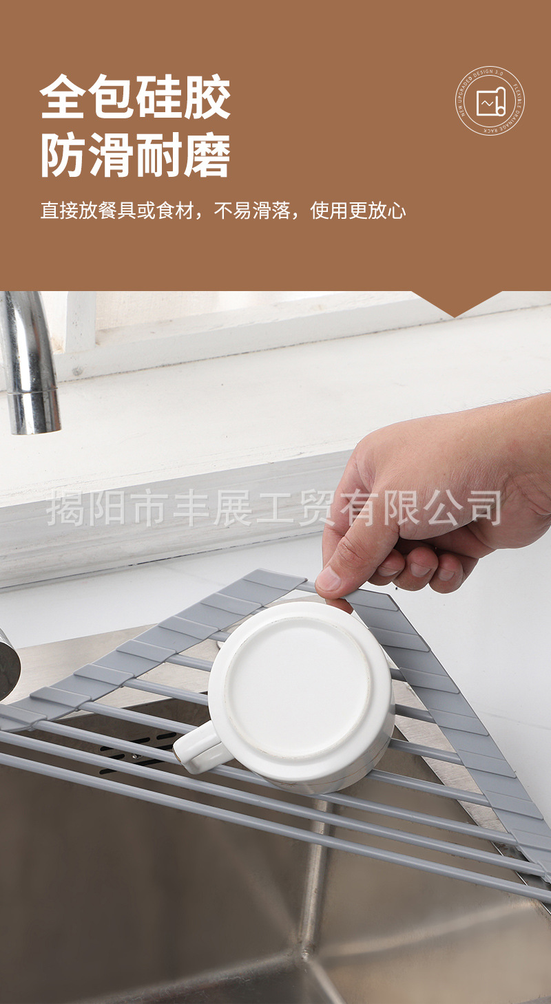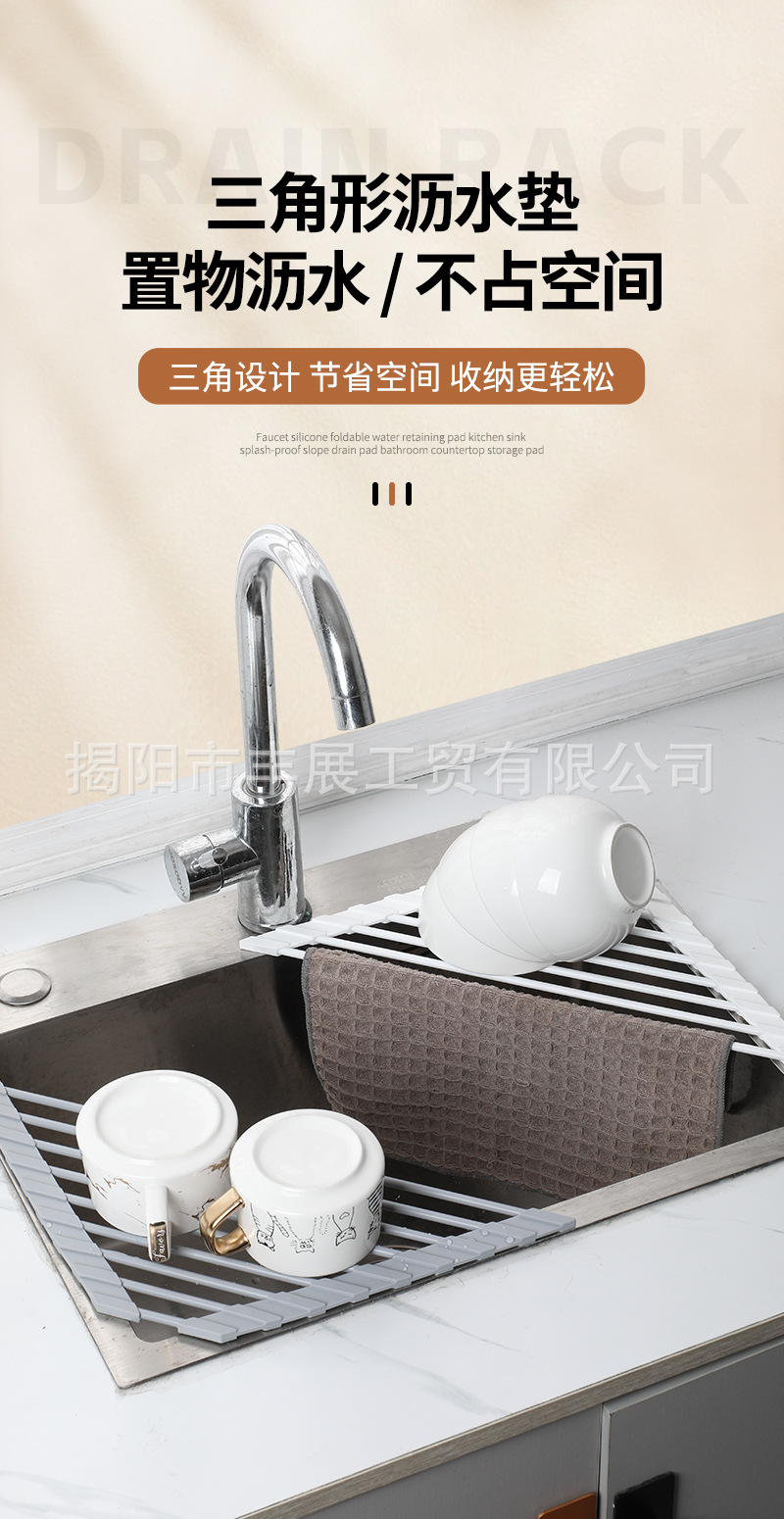 Складная силиконовая сушилка для кухонной раковины, треугольная изолированная стойка для фильтра для воды для фруктов и овощей, роликовая стойка для раковины, стеллаж для хранения посуды