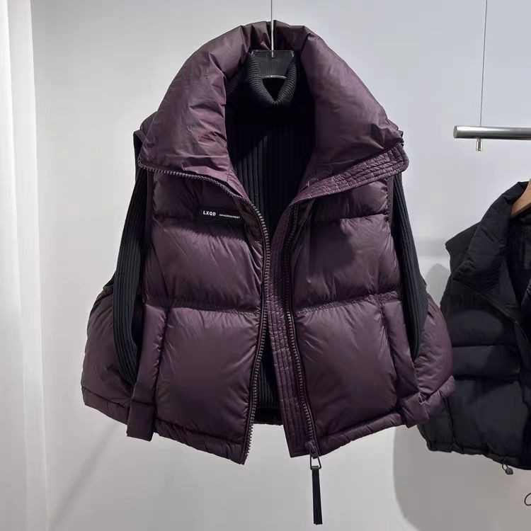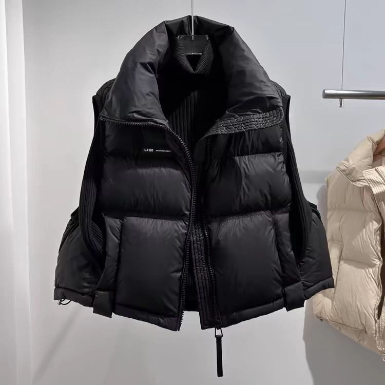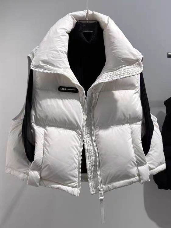 Пуховик для взрослых, женский жилет, белый утиный пух, воротник-стойка, осенне-зимний новый утолщенный маленький короткий свободный жилет, куртка