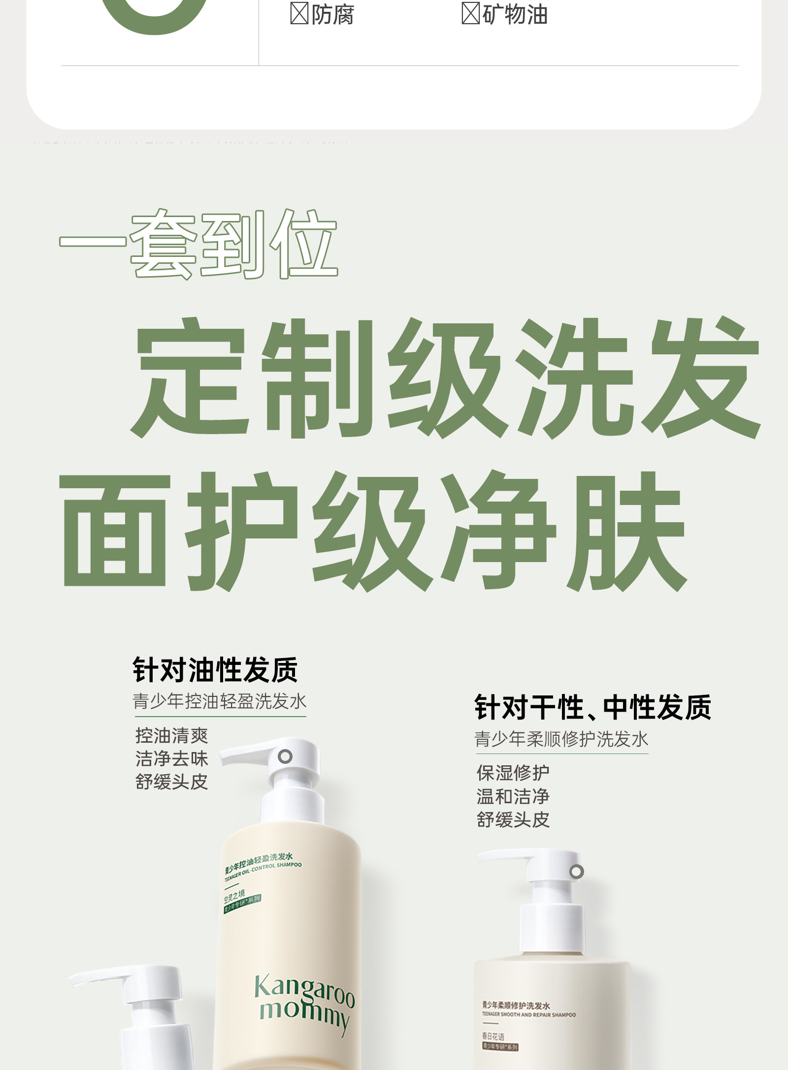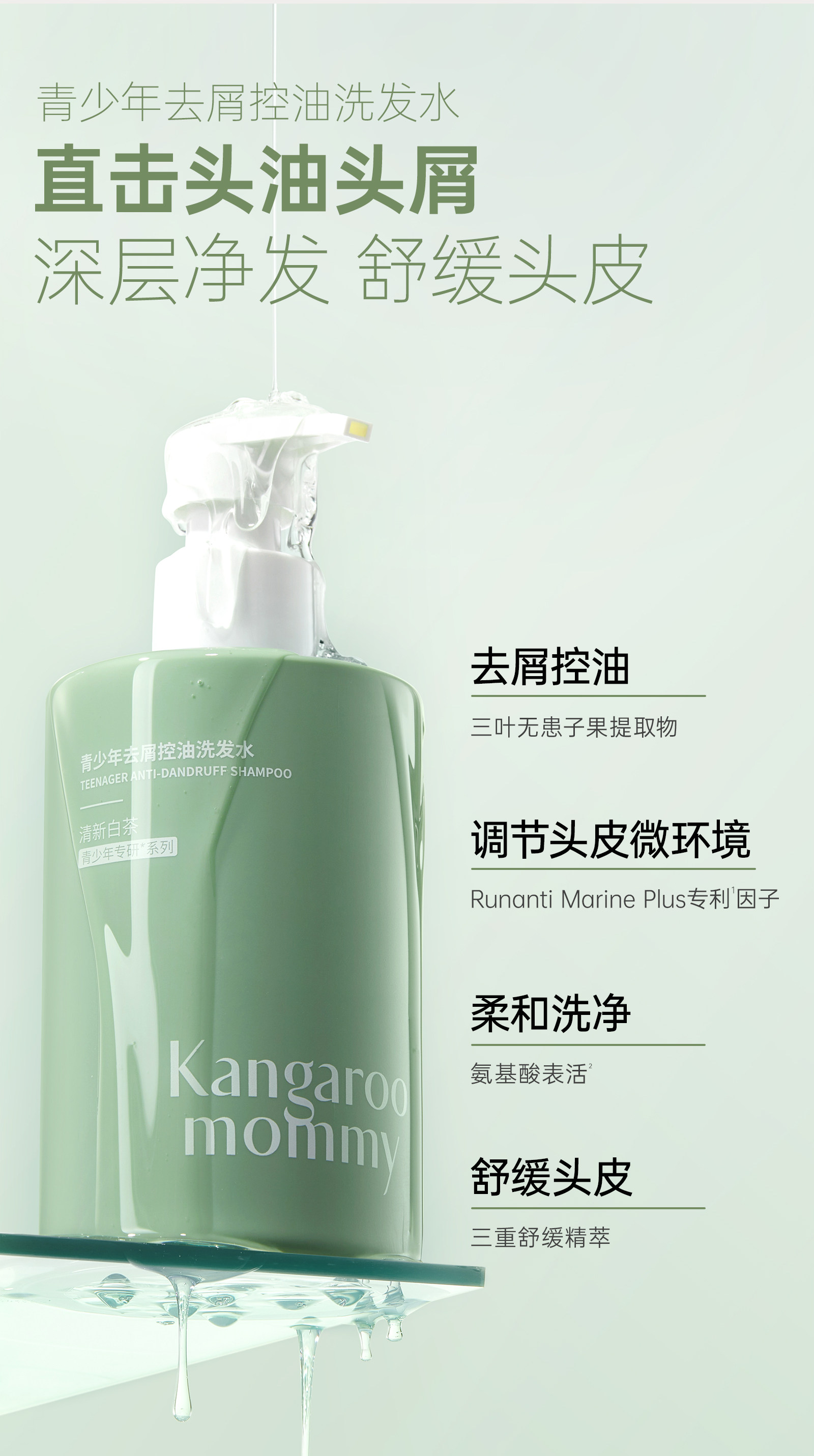 Kangaroo Mom Молодежный шампунь против перхоти для детей и девочек Специальный пушистый шампунь против зуда для контроля жирности для больших мальчиков