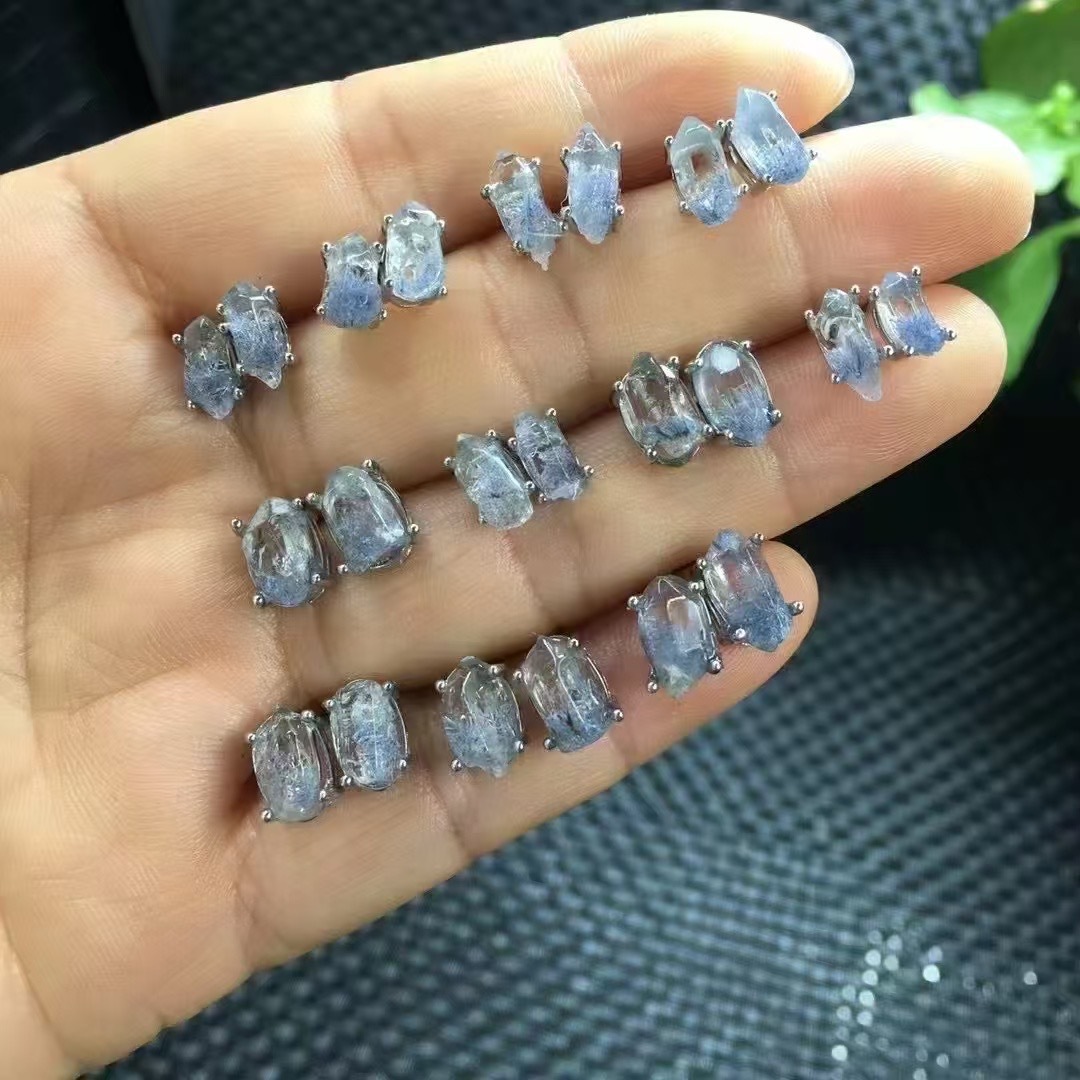 Случайные серьги из натурального камня синей линии, инкрустация серебром s925