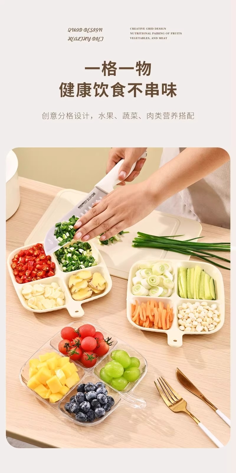 Тарелка для приготовления ингредиентов, новая обеденная тарелка с имбирем и чесноком, четырехсекционная бытовая кастрюля, кухонное хранилище, многофункциональная упаковка для гарнира
