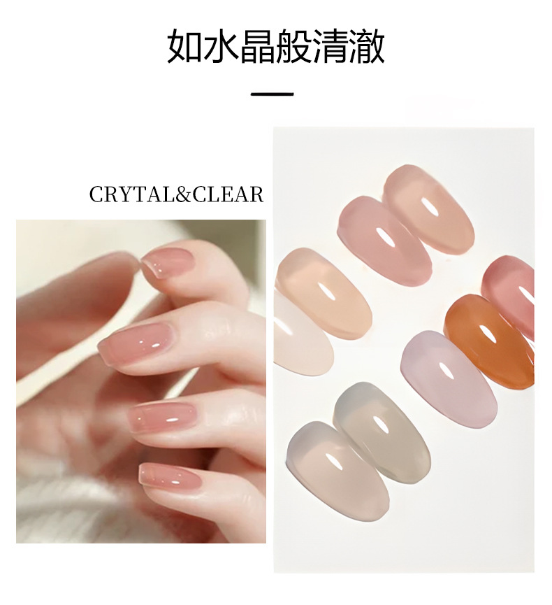 Телесный цвет, блестки, ледяной прозрачный лак для ногтей.