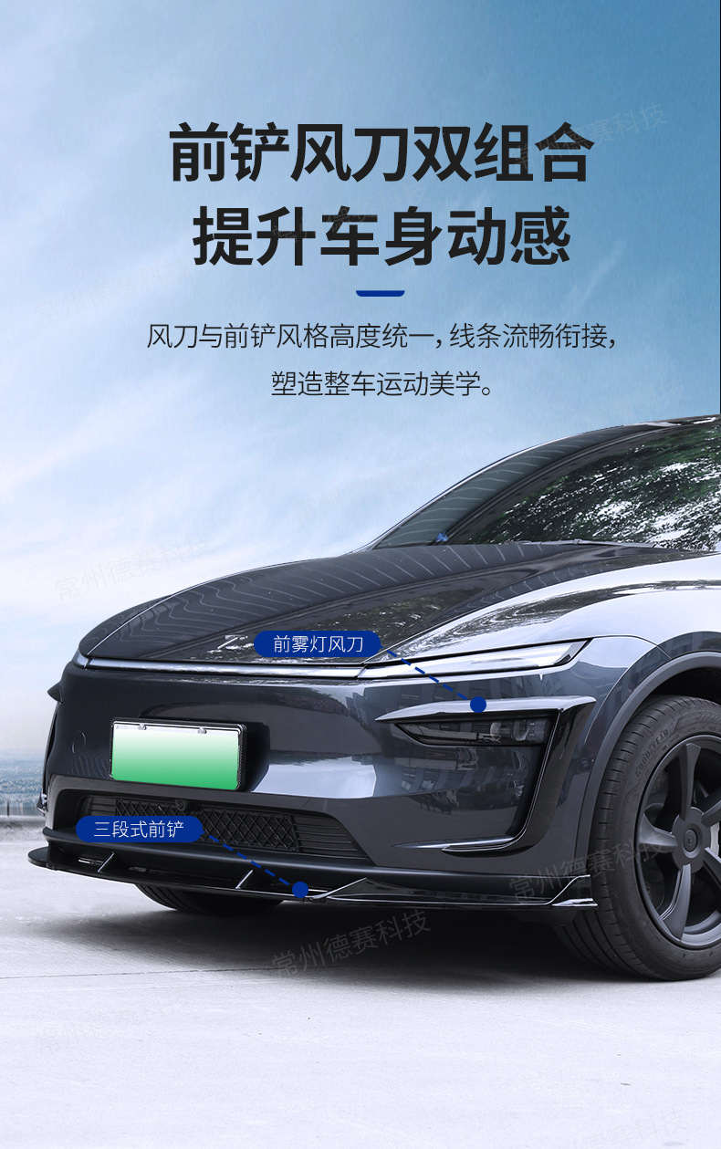 Подходит для новой версии передней лопатки Tesla Model Y, переднего края, противотуманных фар, модификации декоративных аксессуаров с большим ветровым ножом.