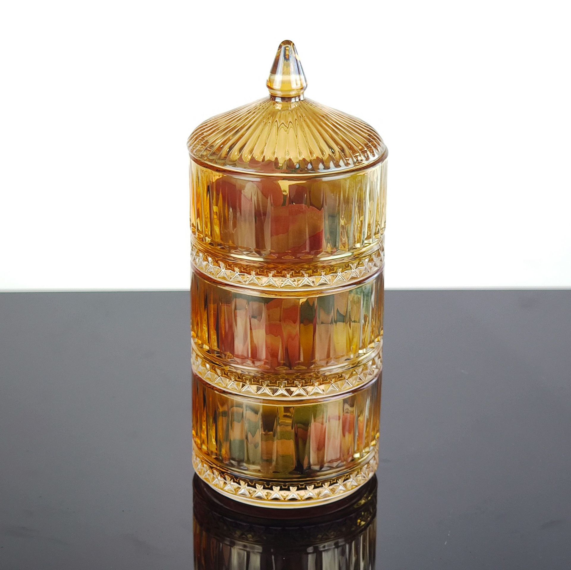 Новая трехслойная креативная большая чашка для хранения конфет из янтарного бессвинцового стекла с узором меча, банка для хранения сухофруктов и продуктов питания