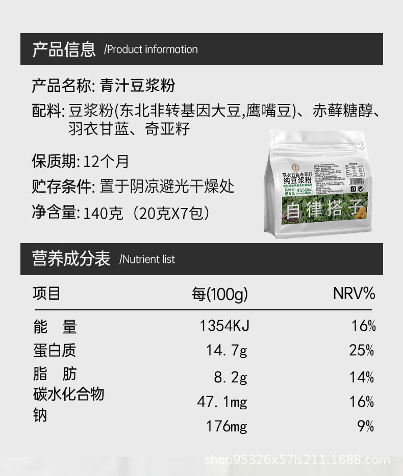 Guocundang Kale Chia Seed Соя Молоко в порошке 20 г * 7 полосок/пакет