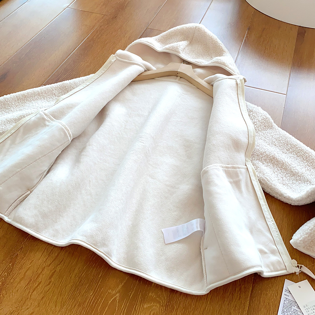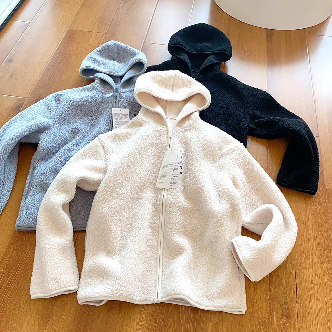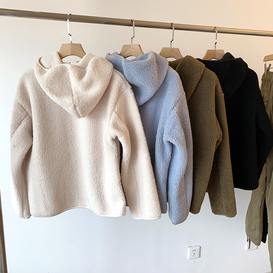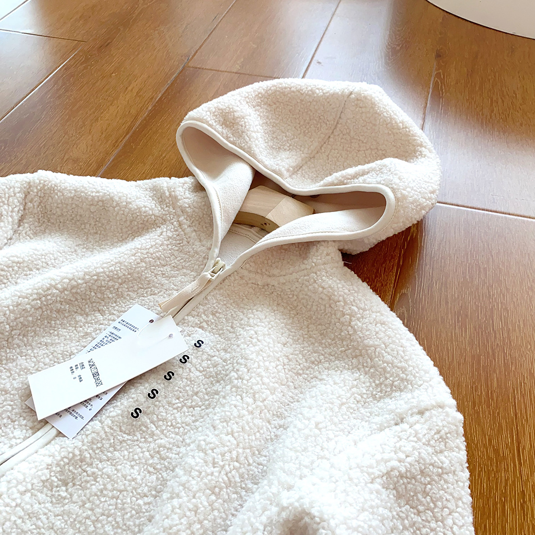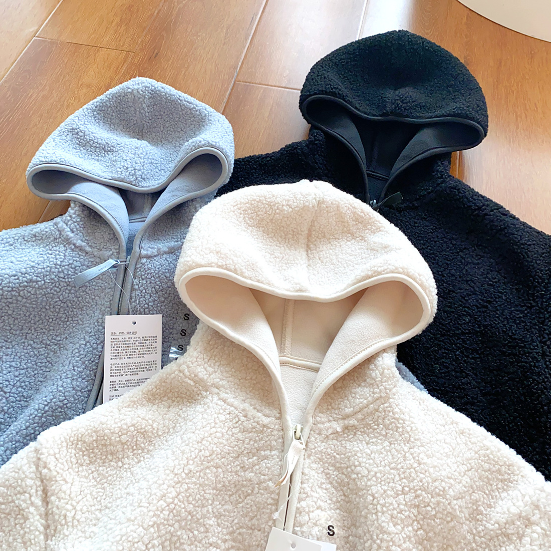 Осенняя свободная верхняя одежда из овечьей шерсти для женщин, повседневная модная теплая свободная верхняя одежда в корейском стиле на молнии с капюшоном и длинными рукавами для женщин
