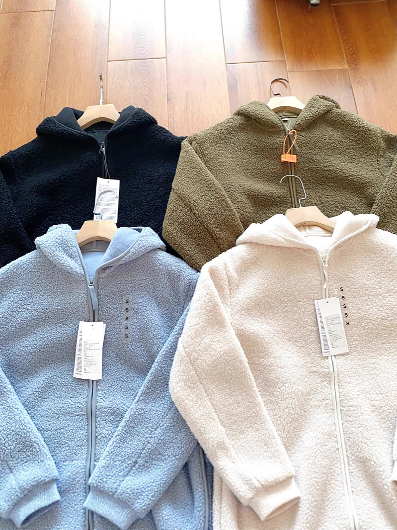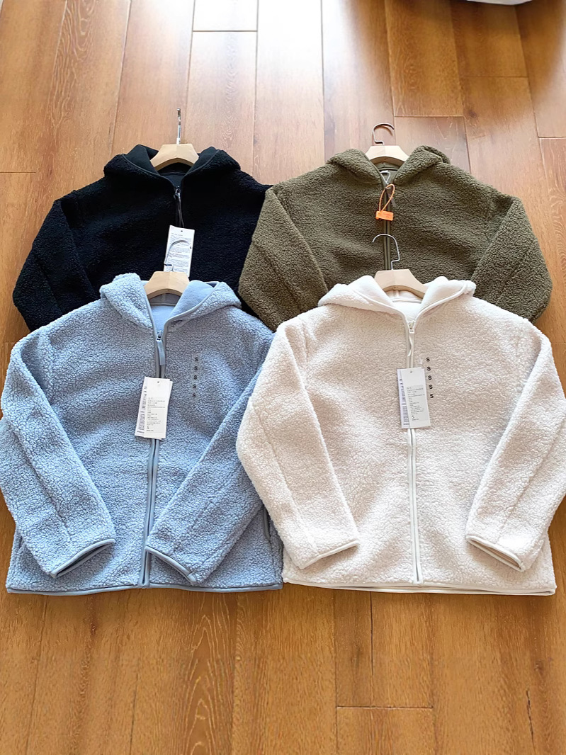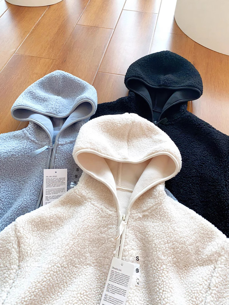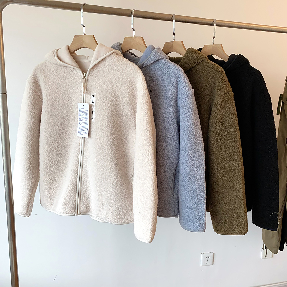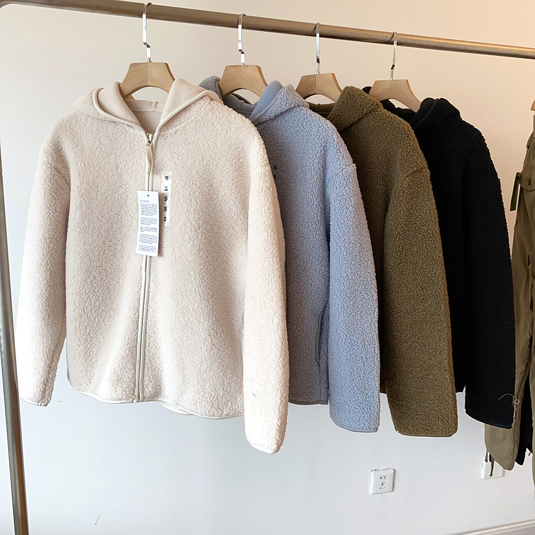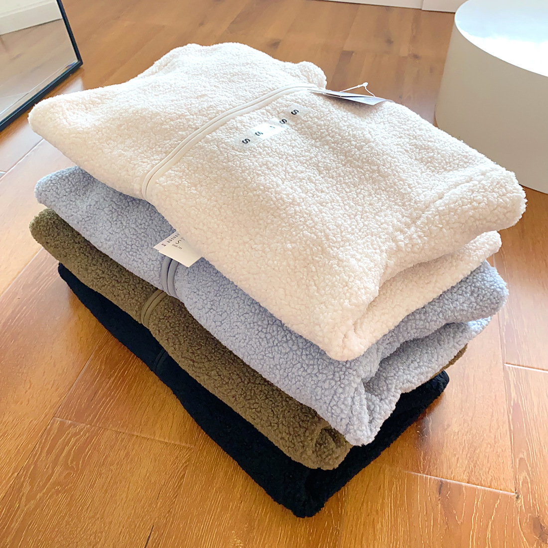 Осенняя свободная верхняя одежда из овечьей шерсти для женщин, повседневная модная теплая свободная верхняя одежда в корейском стиле на молнии с капюшоном и длинными рукавами для женщин