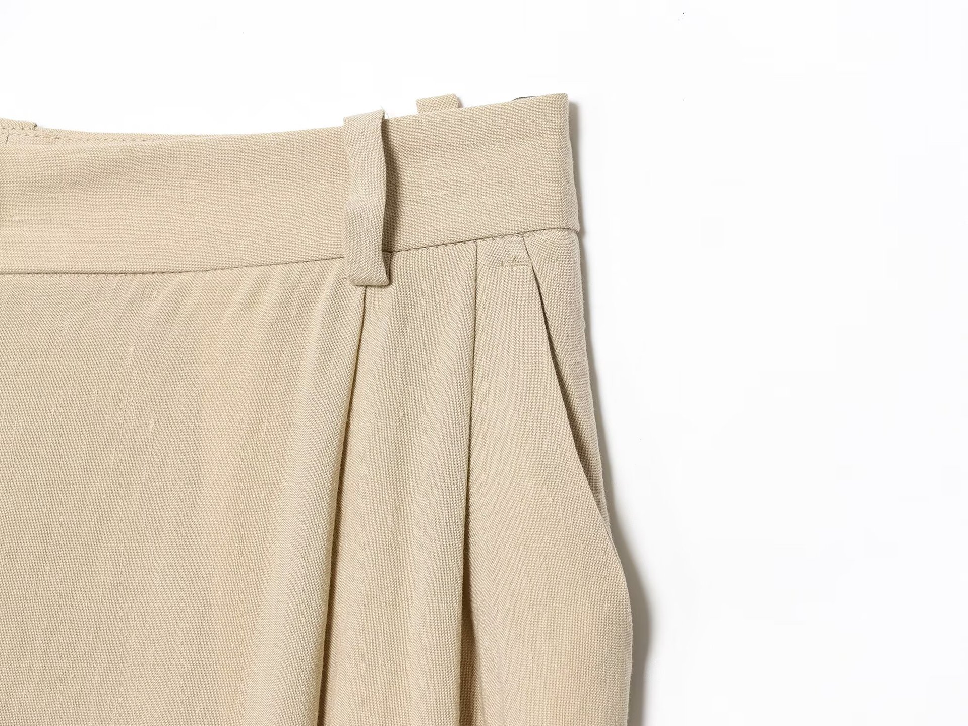 2025 новая женская одежда в европейском и американском стиле, костюм из смесового льна, пиджак и плиссированные брюки 3478848 3479848