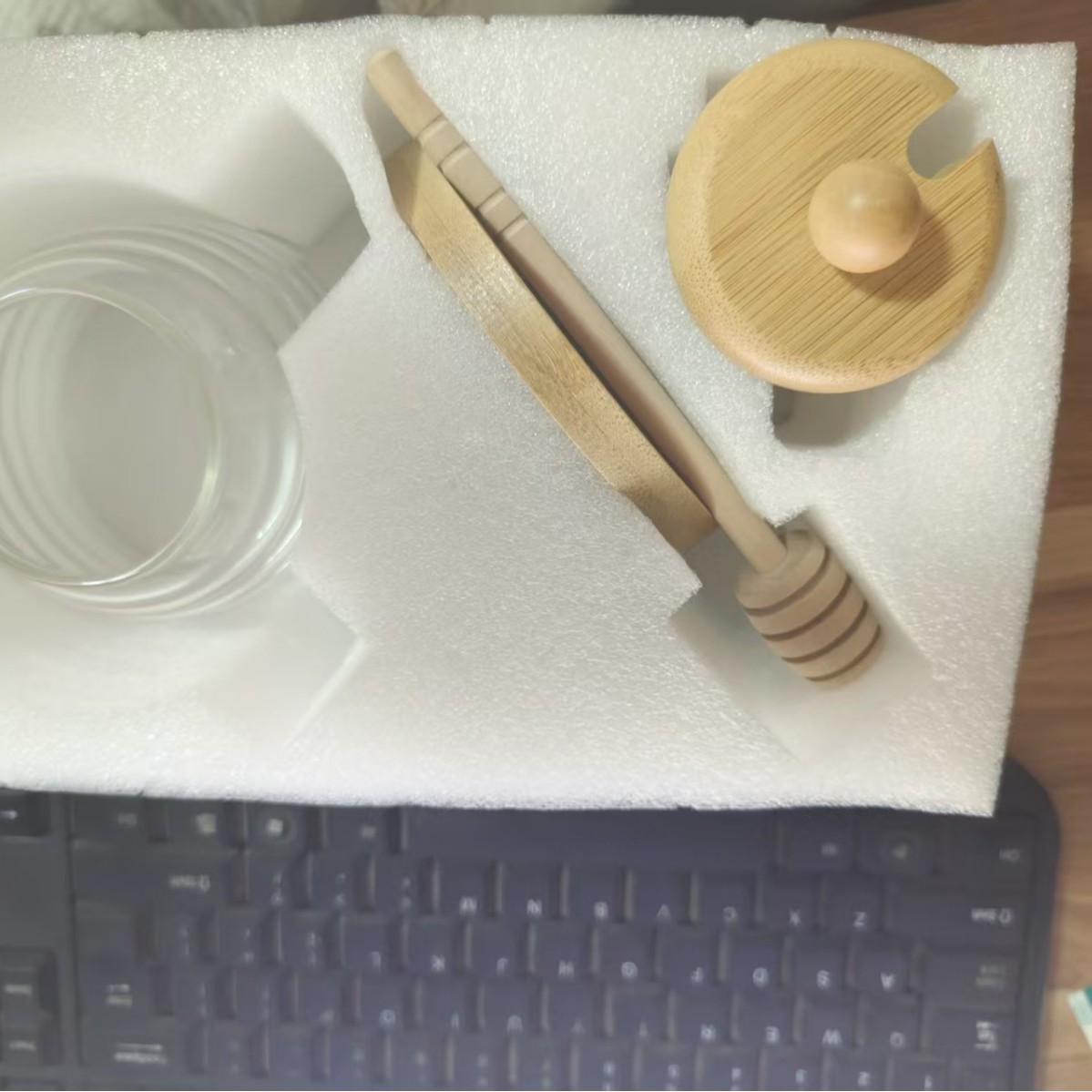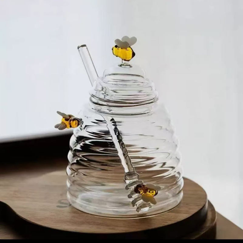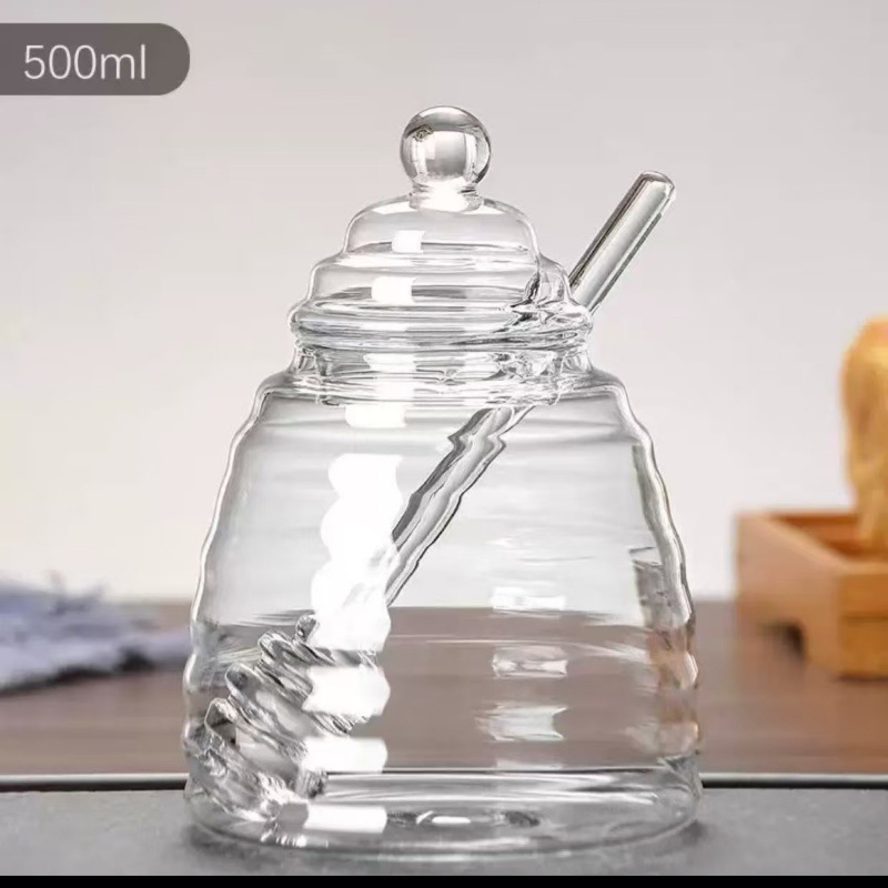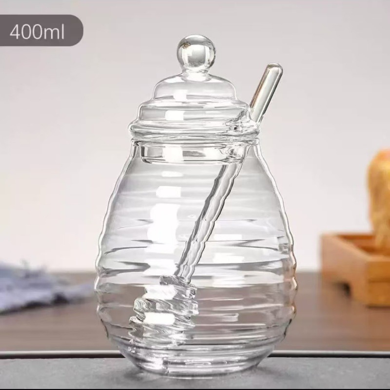 Производитель продает маленькие стеклянные баночки для меда в форме сот с крышками и палочками для перемешивания, креативные кухонные принадлежности.