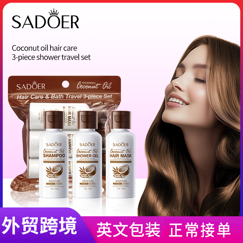 Набор для ухода за волосами SADOER с кокосовым маслом: шампунь, гель для душа, маска для волос (3 предмета), для путешествий и зарубежной торговли