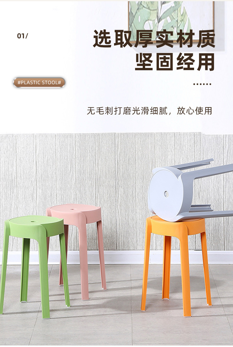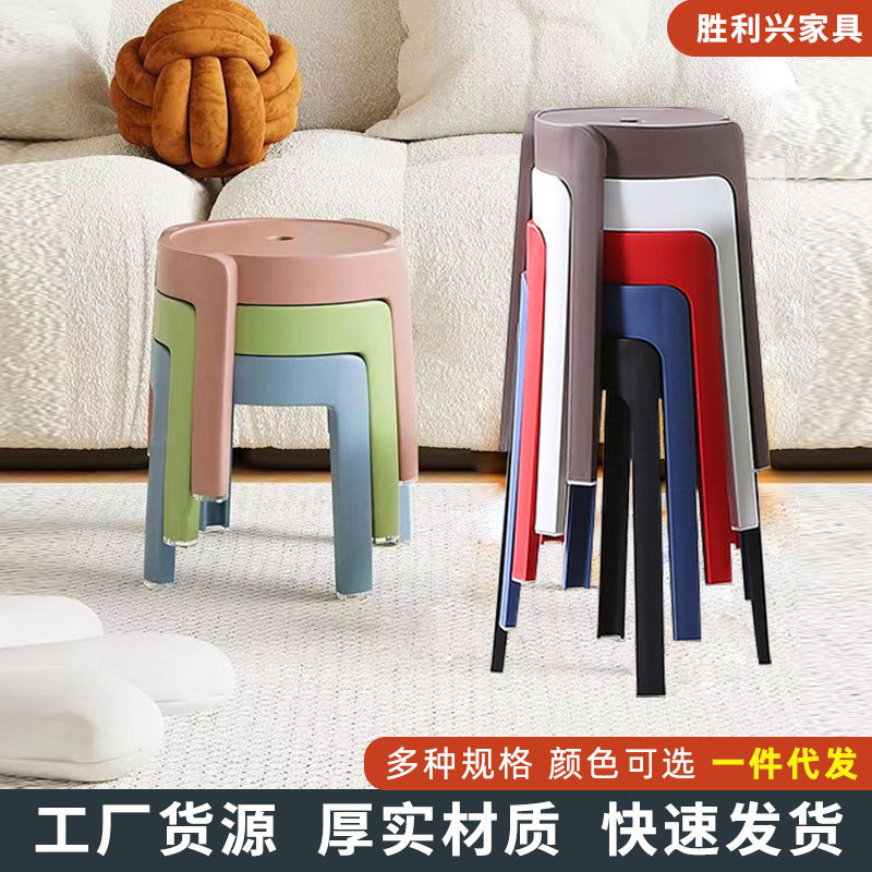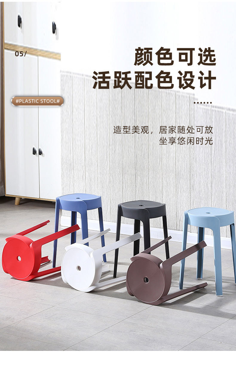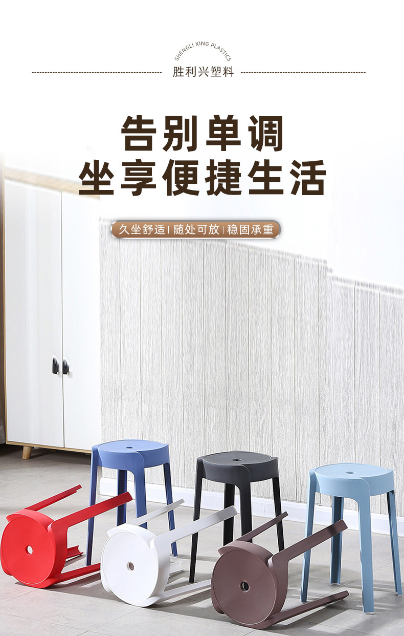 家用加厚餐桌旋风凳子客厅成人防滑圆板凳现代简约塑料凳子可叠放