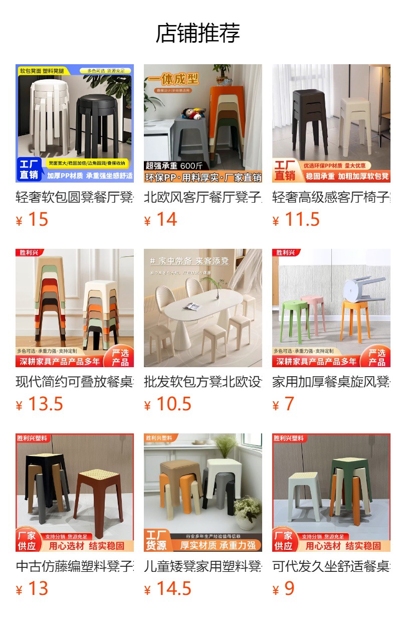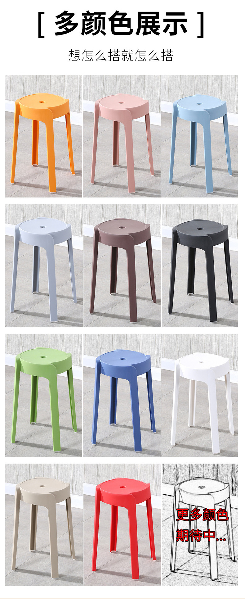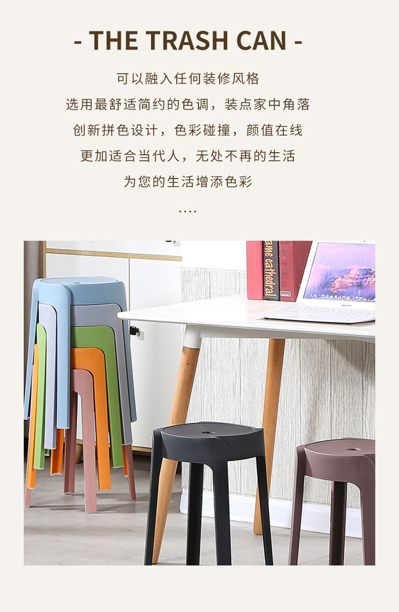 家用加厚餐桌旋风凳子客厅成人防滑圆板凳现代简约塑料凳子可叠放