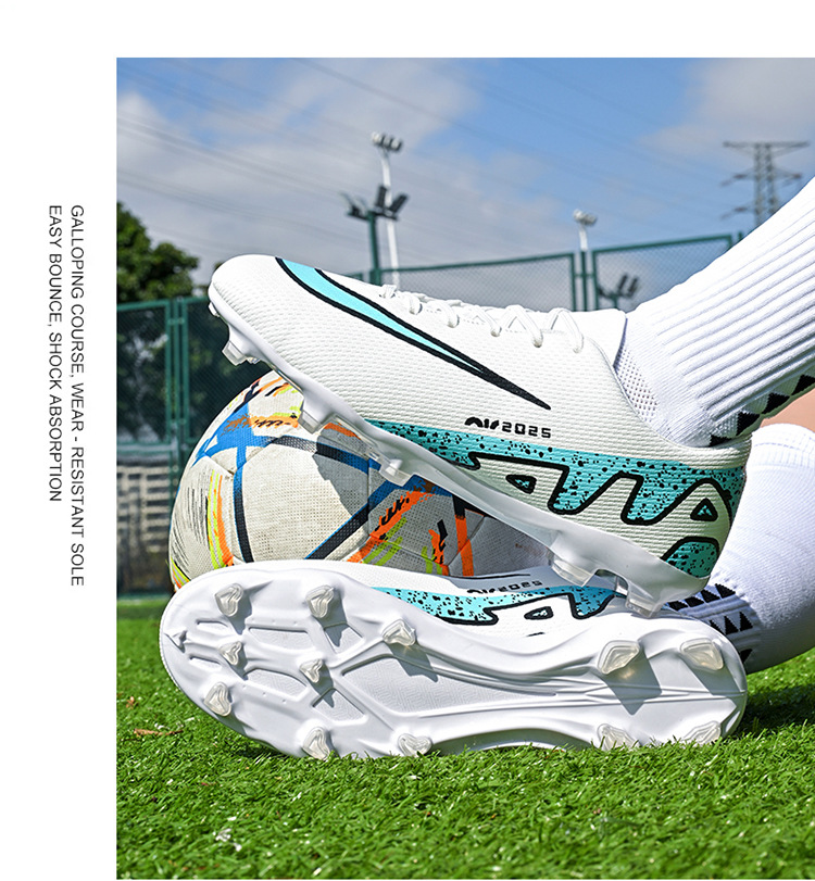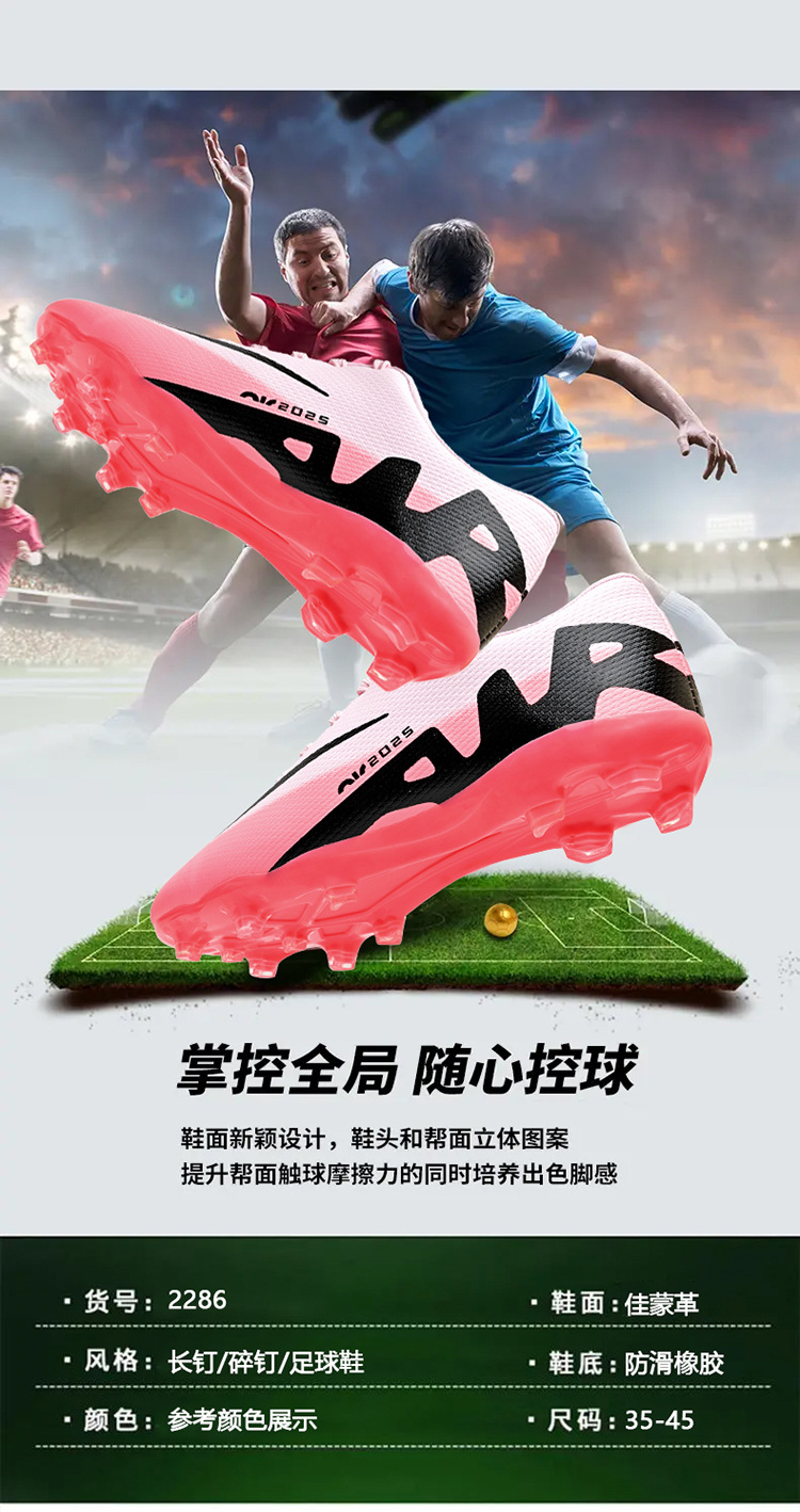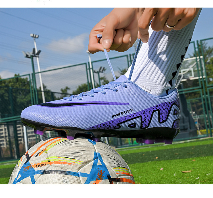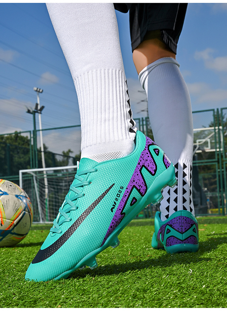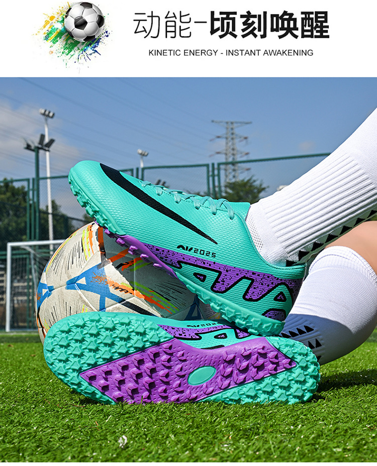 Популярные трансграничные 5-цветные детские и подростковые футбольные бутсы с длинными шипами и противоскользящей подошвой.