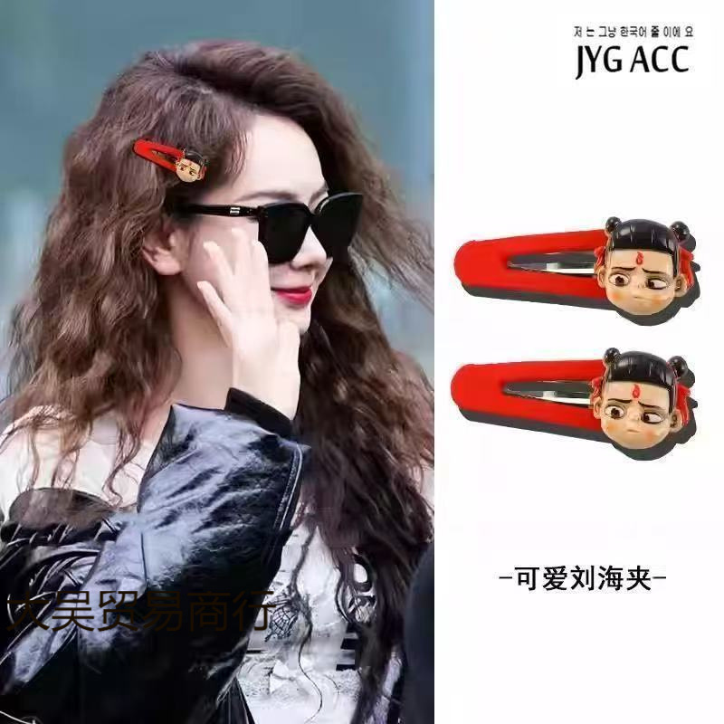 Красная заколка с боковой челкой, милая заколка с рисунком на лоб, аксессуар для волос для женщин.