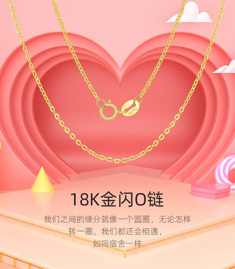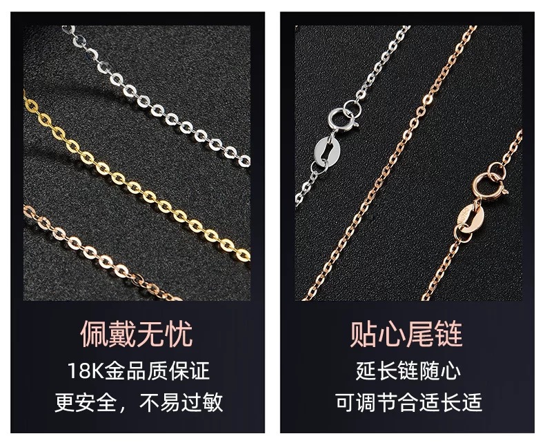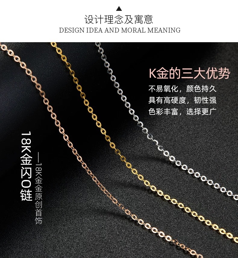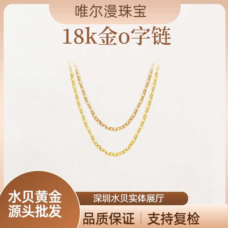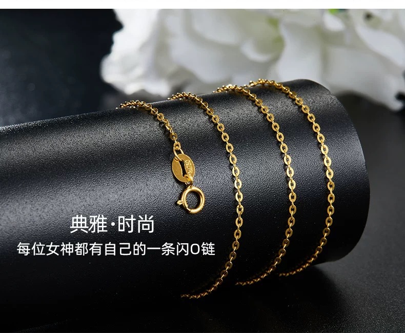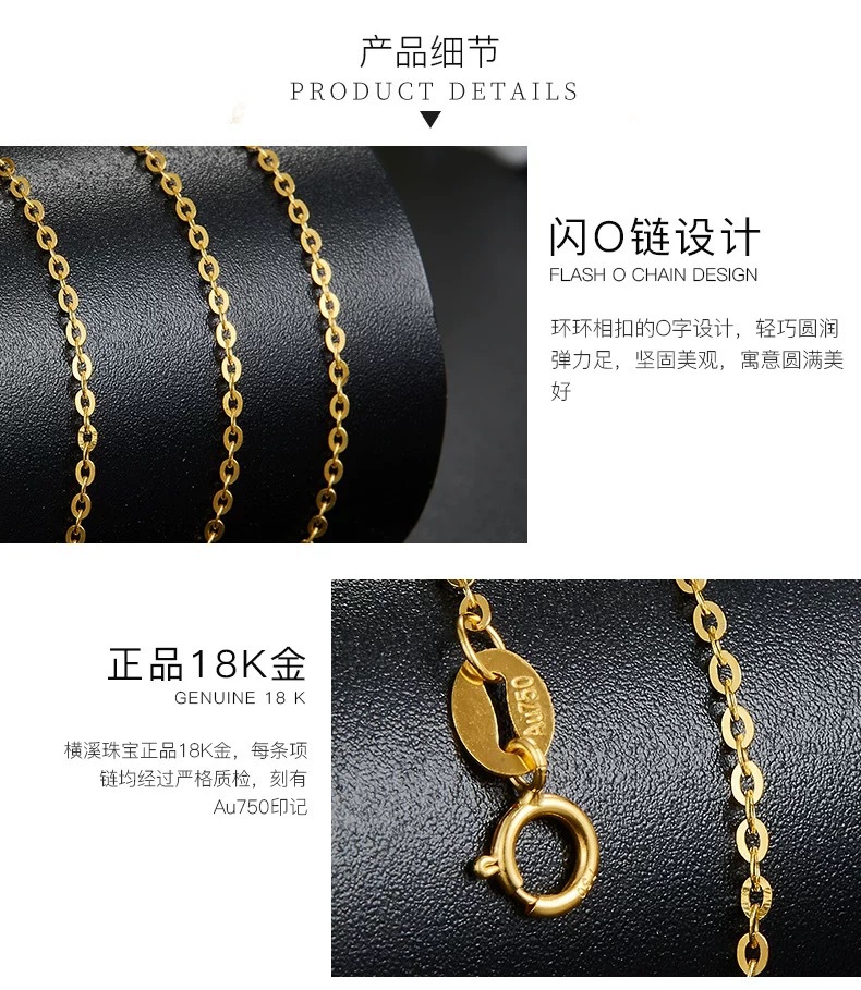 Золотая цепочка О-образной формы из золота 18К AU750, цветное золото, подлинная простая цепочка, регулируемая цепочка на ключицу, тонкое золотое колье с водяной ракушкой
