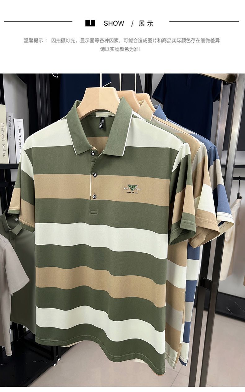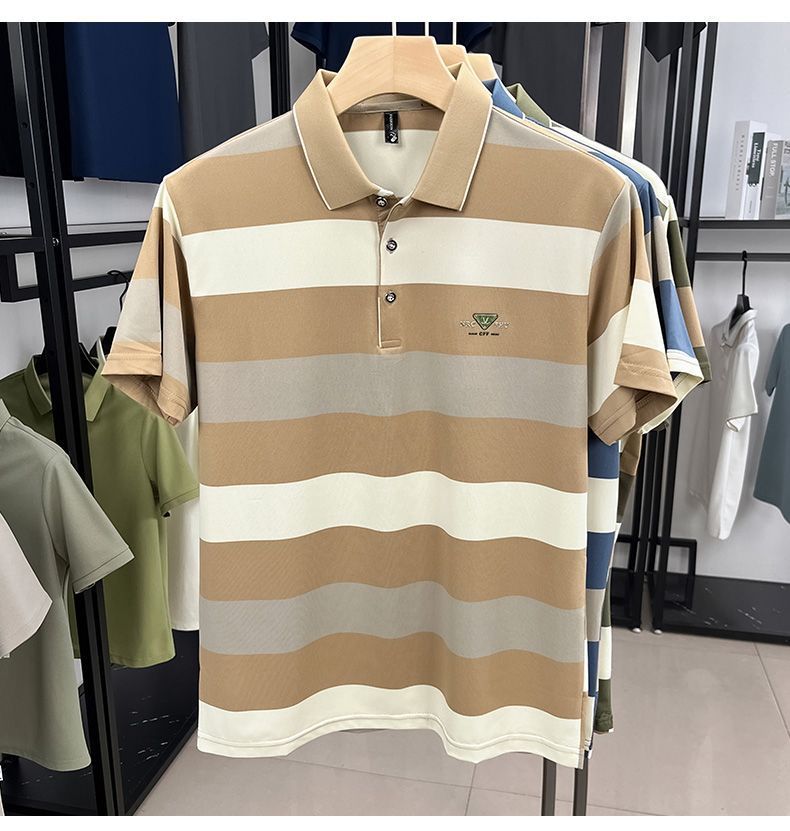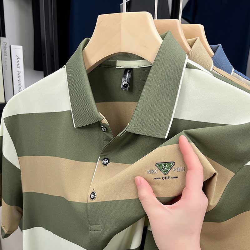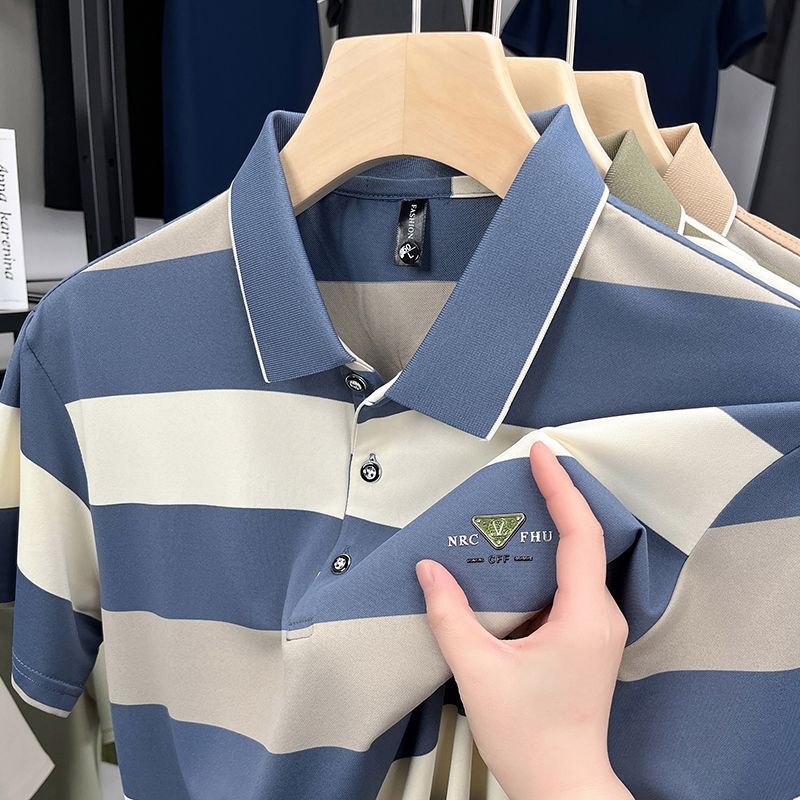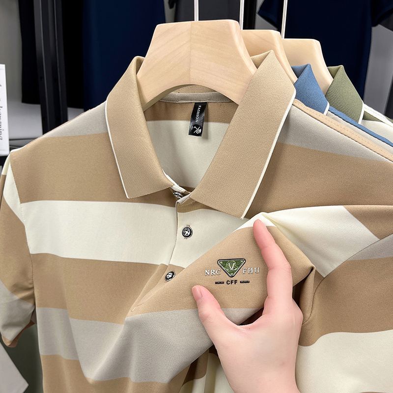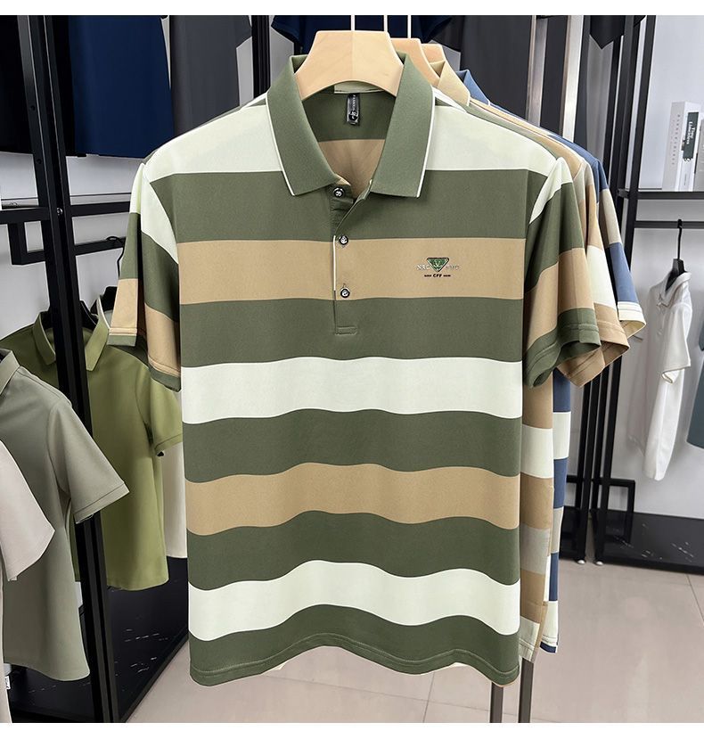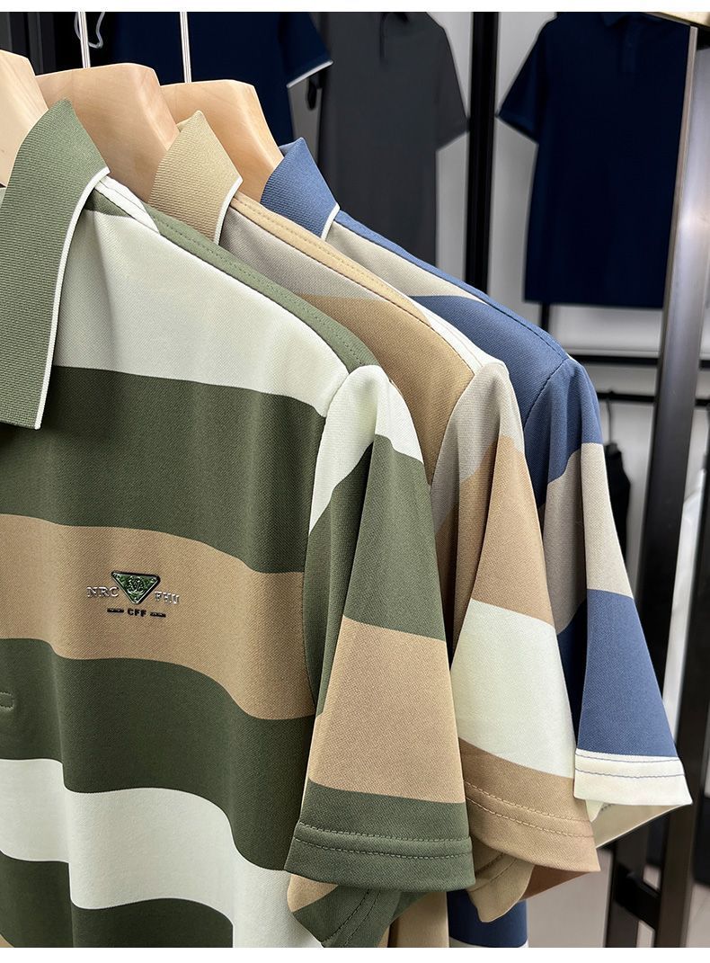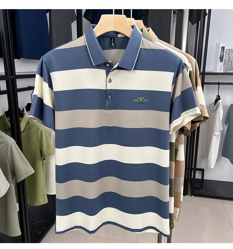 2025 новая летняя деловая повседневная рубашка-поло с короткими рукавами и широкими полосками с лацканами, футболка с короткими рукавами, одежда для папы