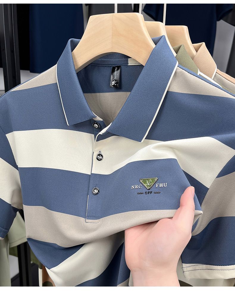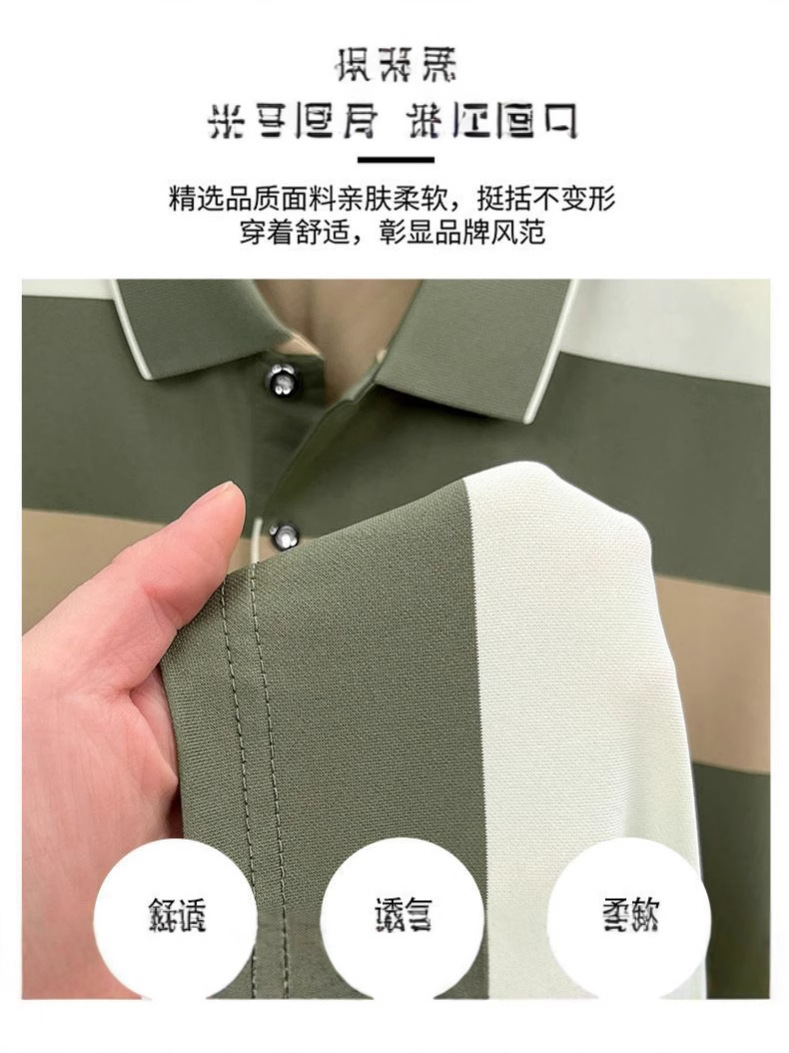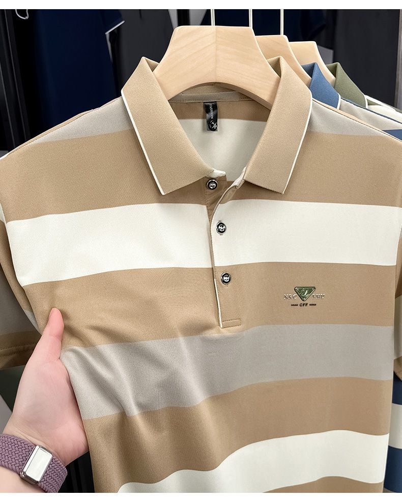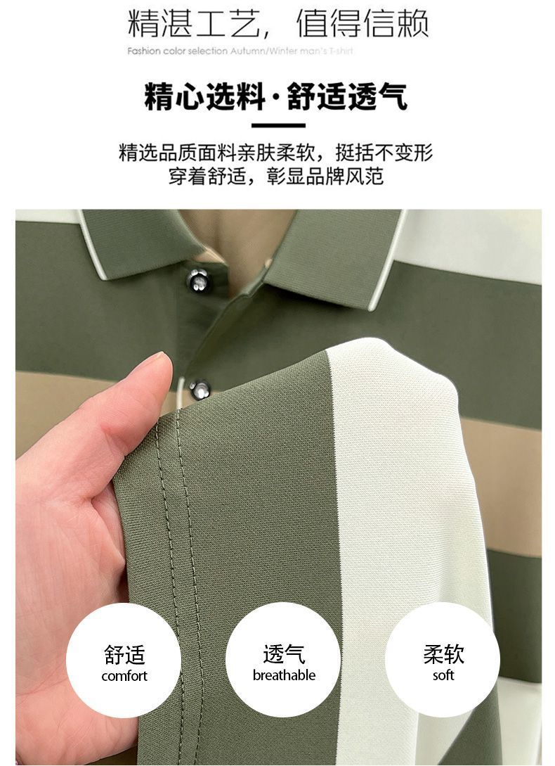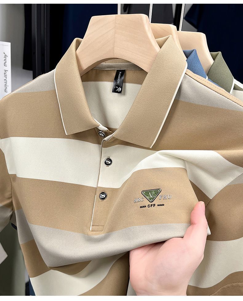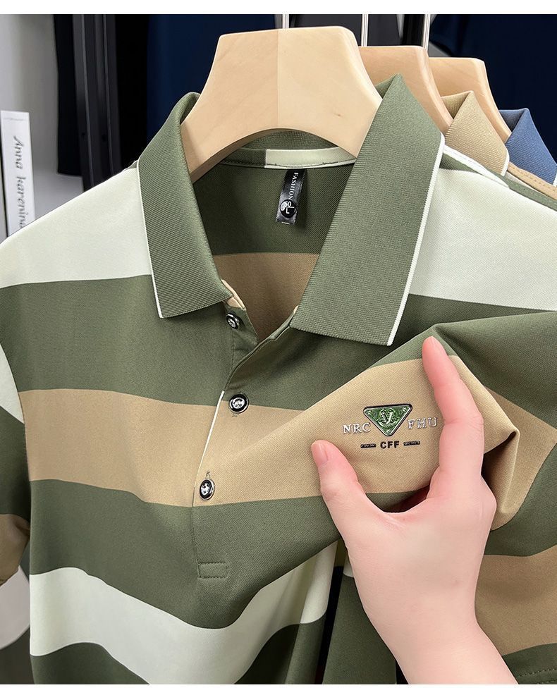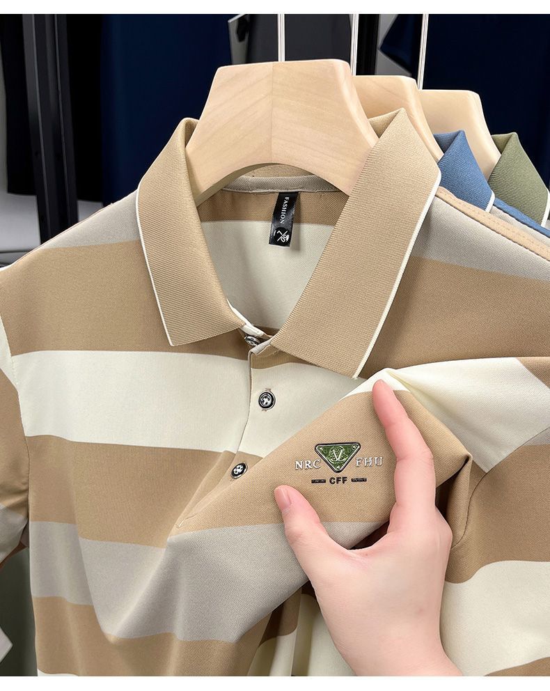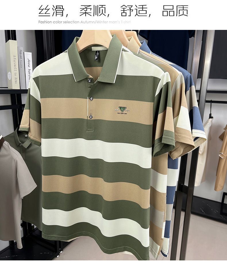 2025 новая летняя деловая повседневная рубашка-поло с короткими рукавами и широкими полосками с лацканами, футболка с короткими рукавами, одежда для папы