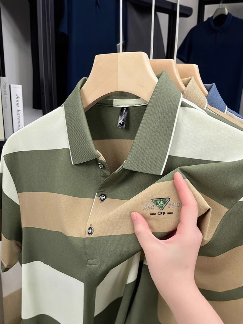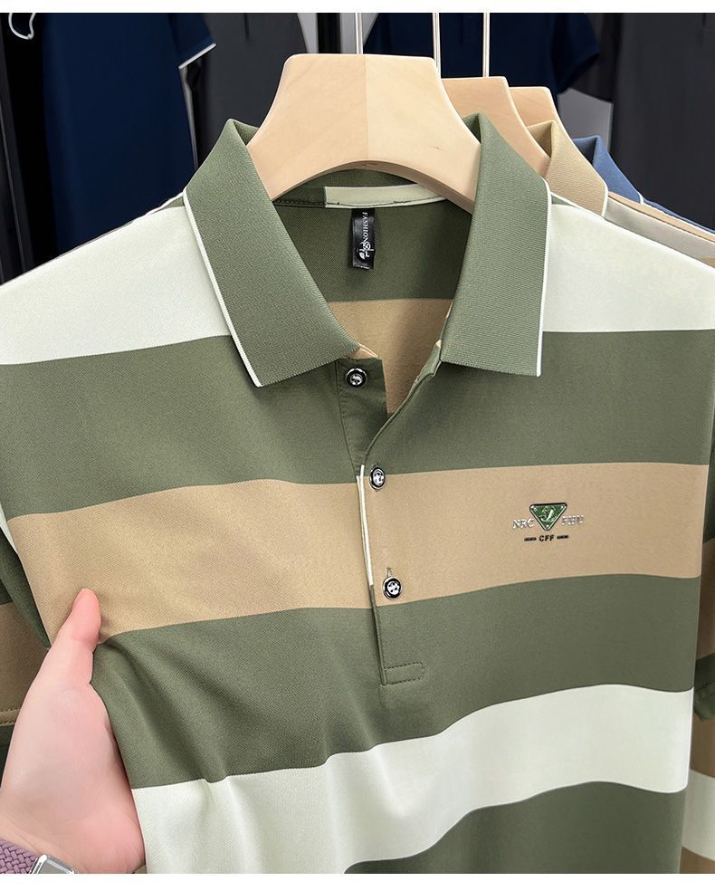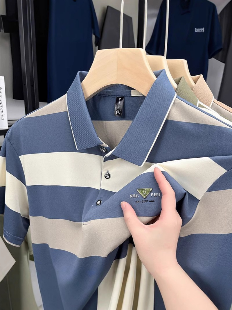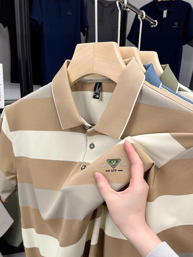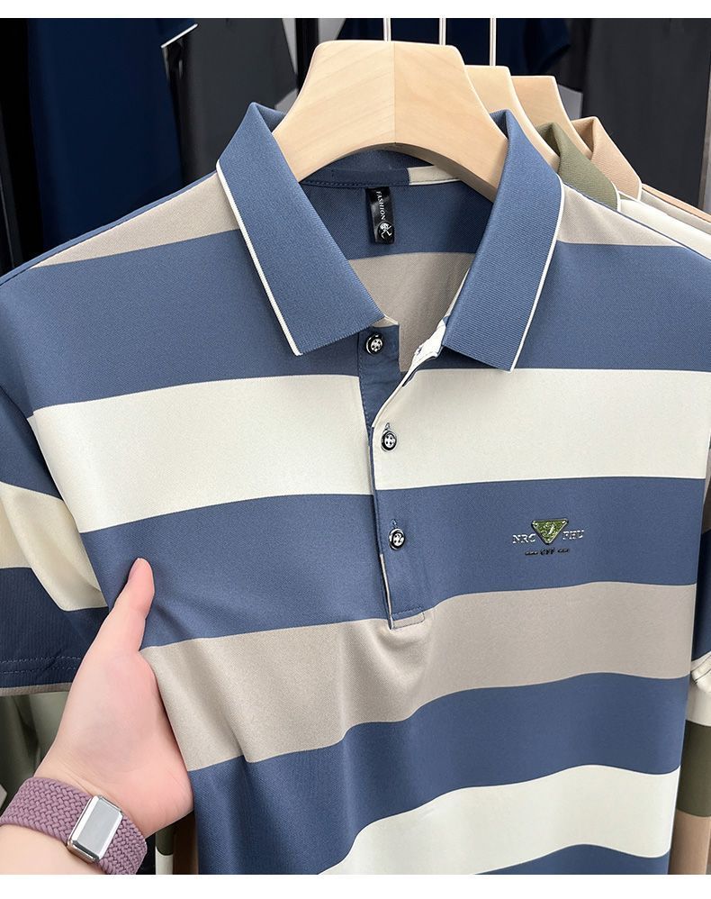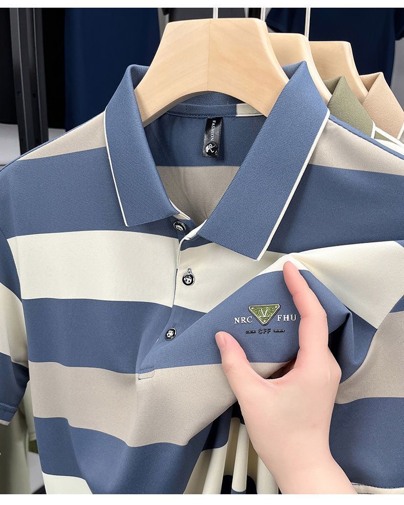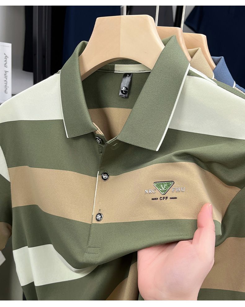 2025 новая летняя деловая повседневная рубашка-поло с короткими рукавами и широкими полосками с лацканами, футболка с короткими рукавами, одежда для папы