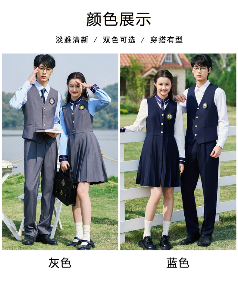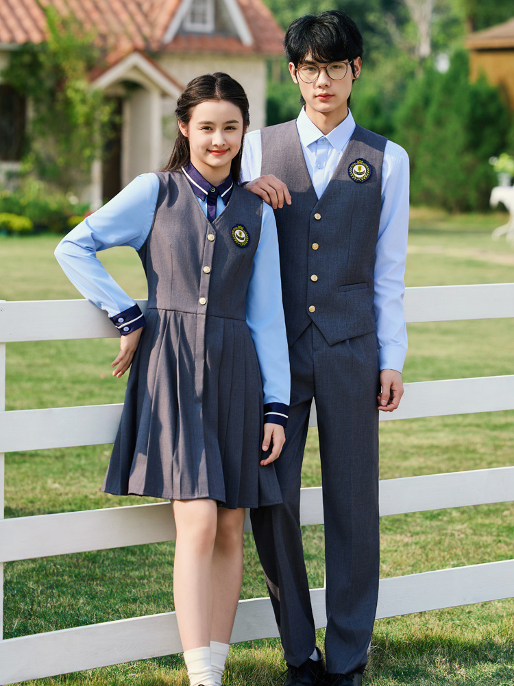 Мужской серый жилет; Мужские серые брюки; Мужской синий жилет; Мужские синие брюки; Женское серое платье; Женское синее платье; Мужской серый жилет + брюки; Мужской синий жилет + брюки; Женское серое платье + синяя короткая рубашка; Женское серое платье + синяя длинная рубашка; Женское синее платье + белая короткая рубашка; Женское синее платье + белая длинная рубашка; Мужской серый жилет + брюки + синяя короткая рубашка; Мужской серый жилет + брюки + синяя длинная рубашка; Мужской синий жилет + брюки + белая длинная рубашка