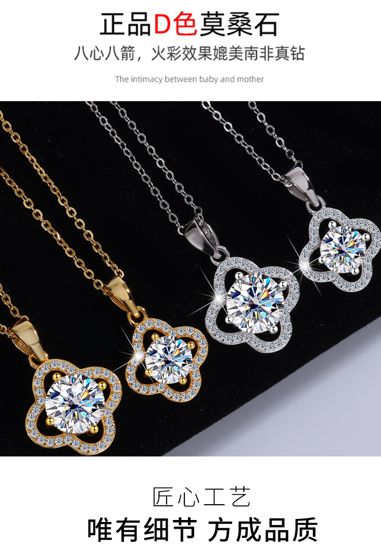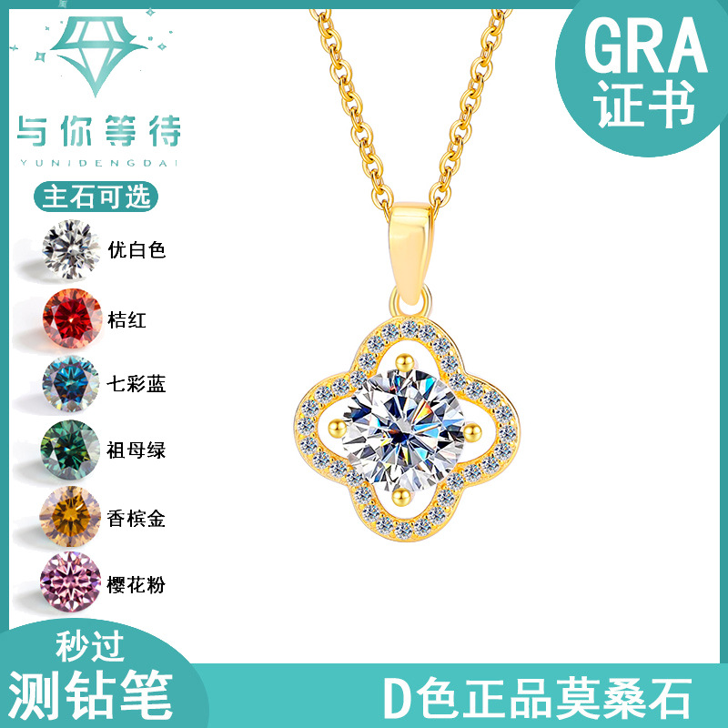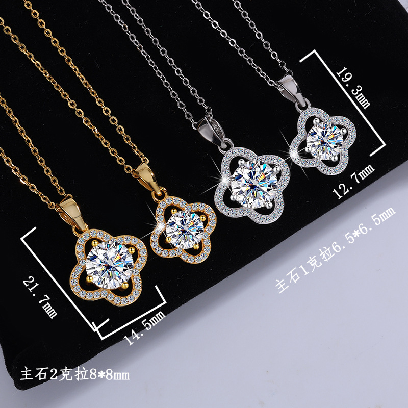Ожерелье из стерлингового серебра S925 с муассанитом и цветком, подвеска в виде четырехлистного клевера, доступная роскошная высококачественная цепочка на ключицу с муассанитом, оптовая продажа с фабрики