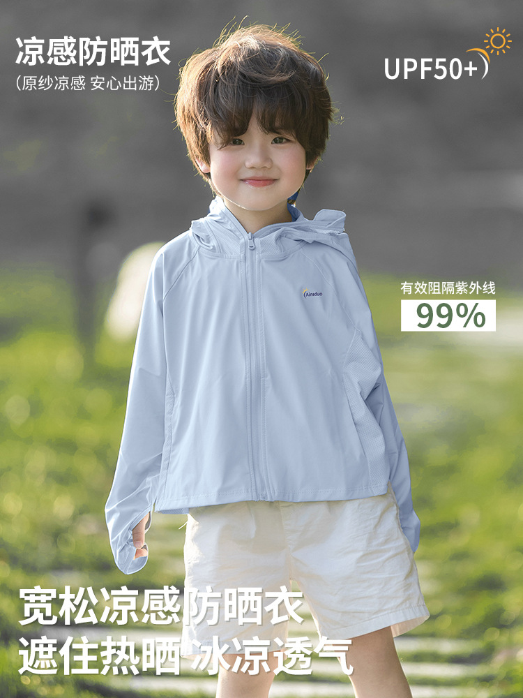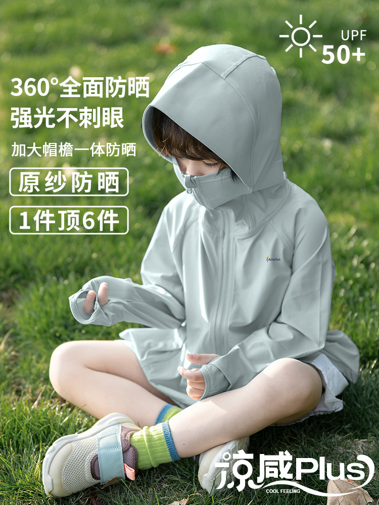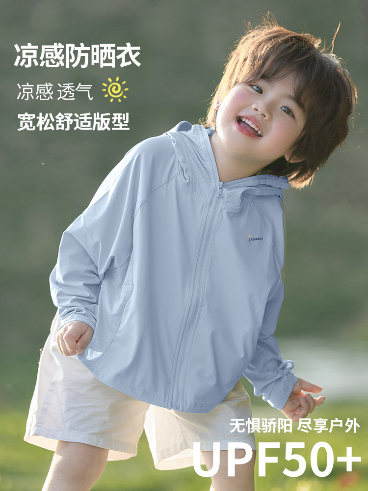 Детская солнцезащитная одежда, новинка 2025 года, стильная одежда для мальчиков и девочек из ледяного шелка, легкая и дышащая солнцезащитная одежда с большими полями для маленьких мальчиков, куртка