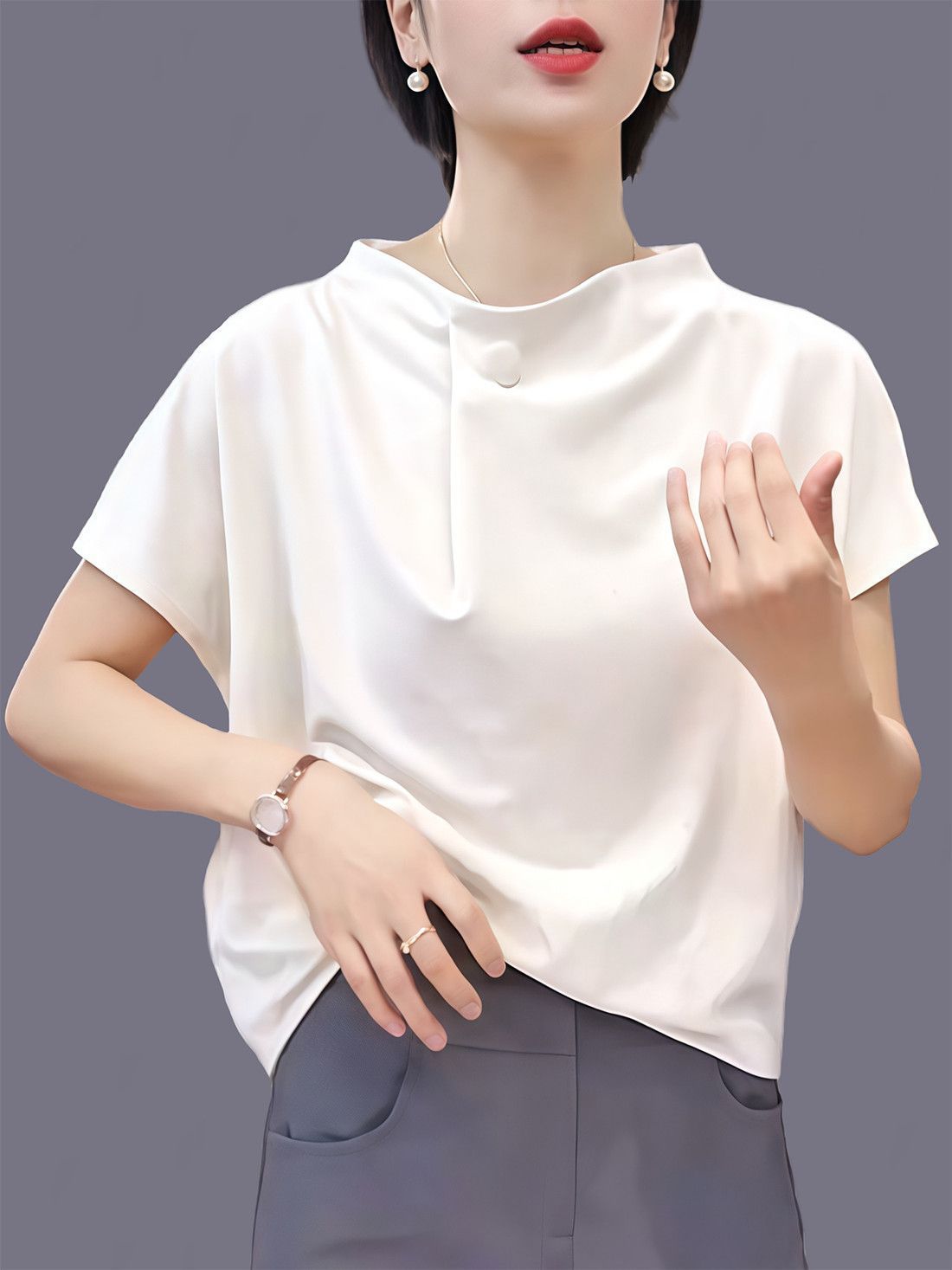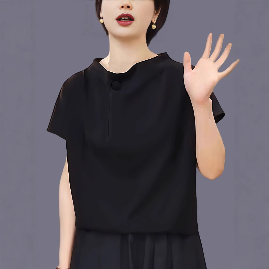 Аутентичная высококачественная летняя однотонная толстовка, свободный пуловер большого размера, нижняя рубашка для женщин среднего возраста с уменьшающим возраст дизайном.