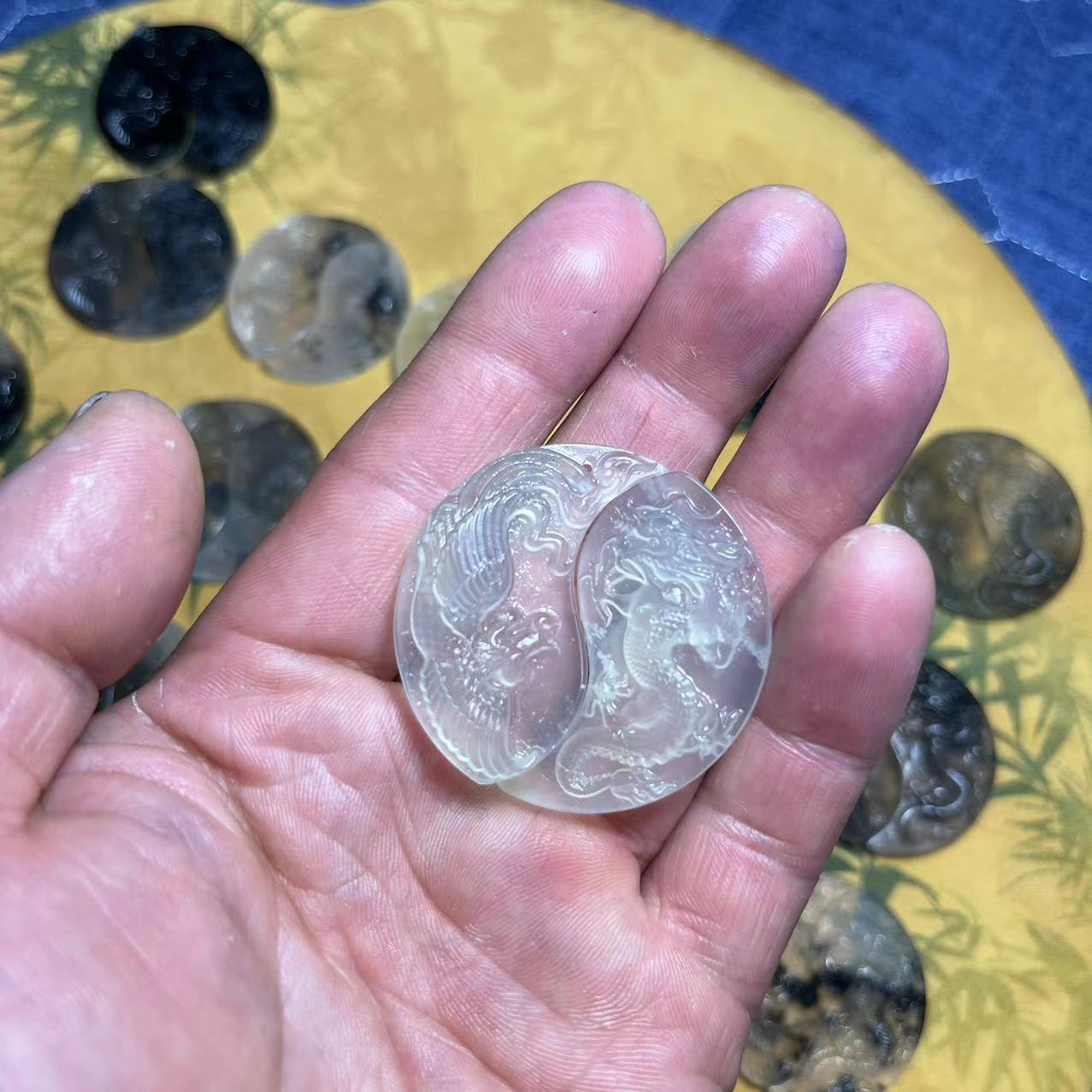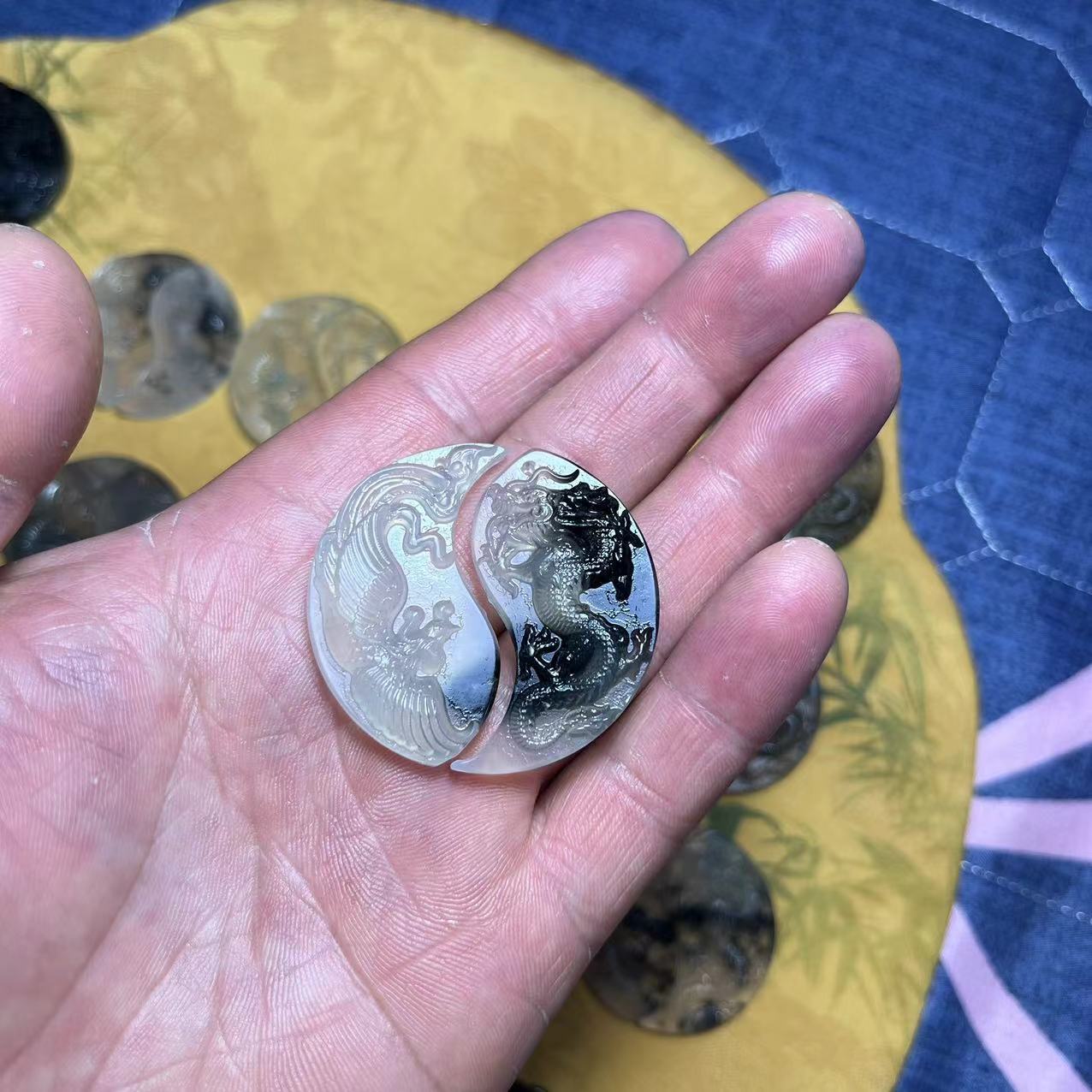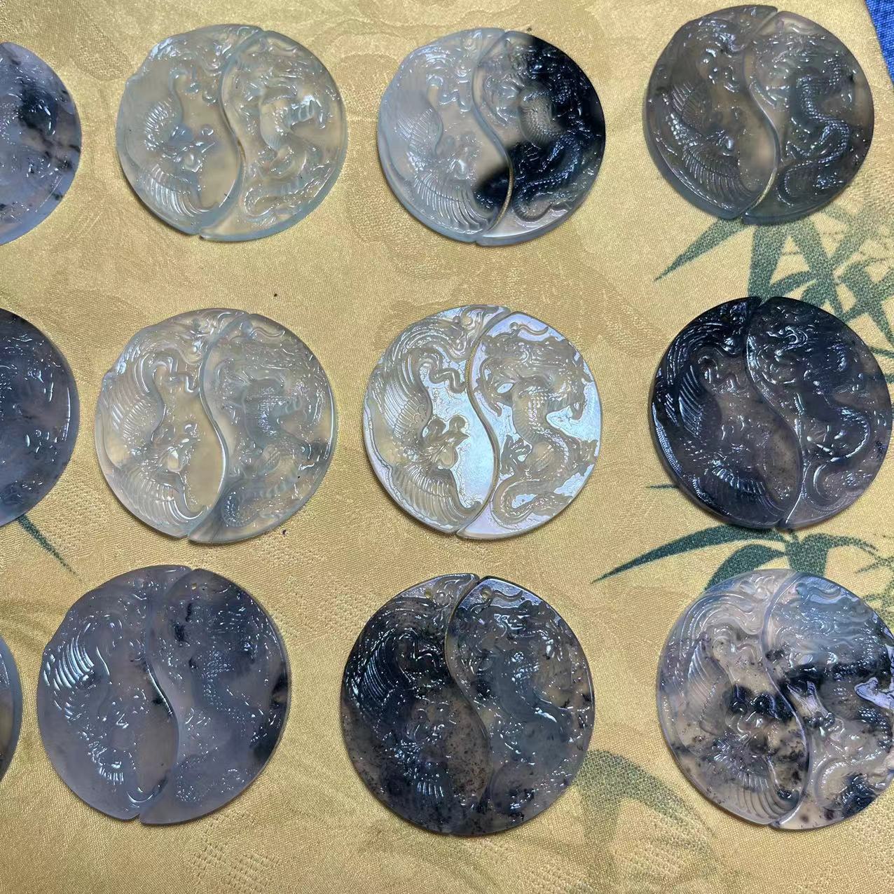 Натуральный жадеит Xiu, подвеска с драконом и фениксом, амулет с драконом и фениксом, оптовая продажа от производителя Bagua Dragon and Phoenix