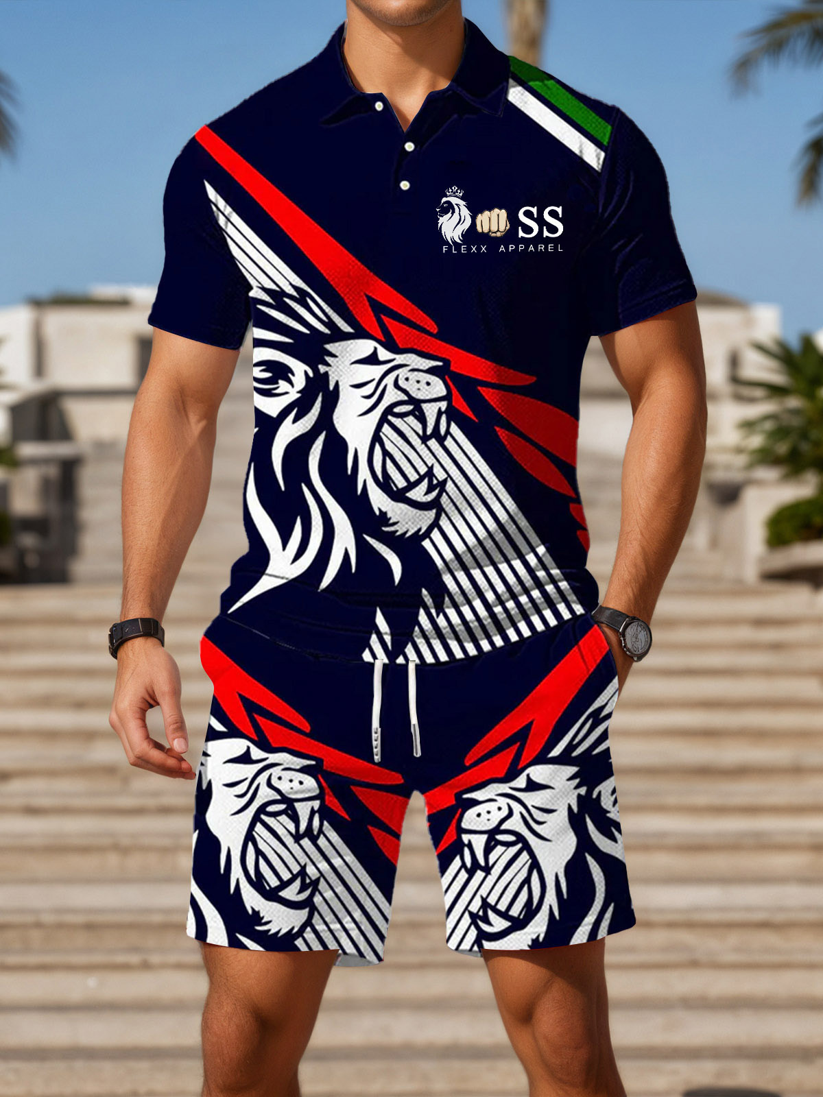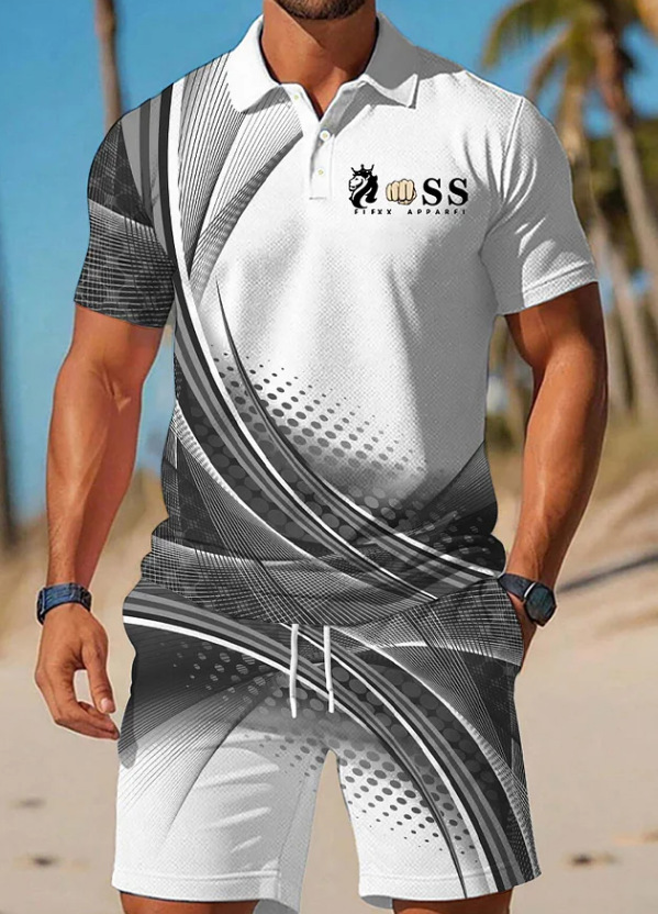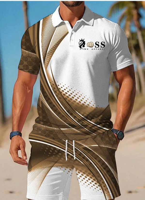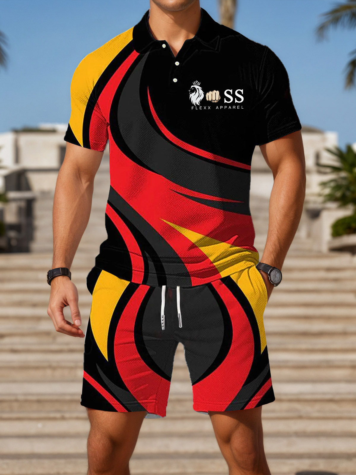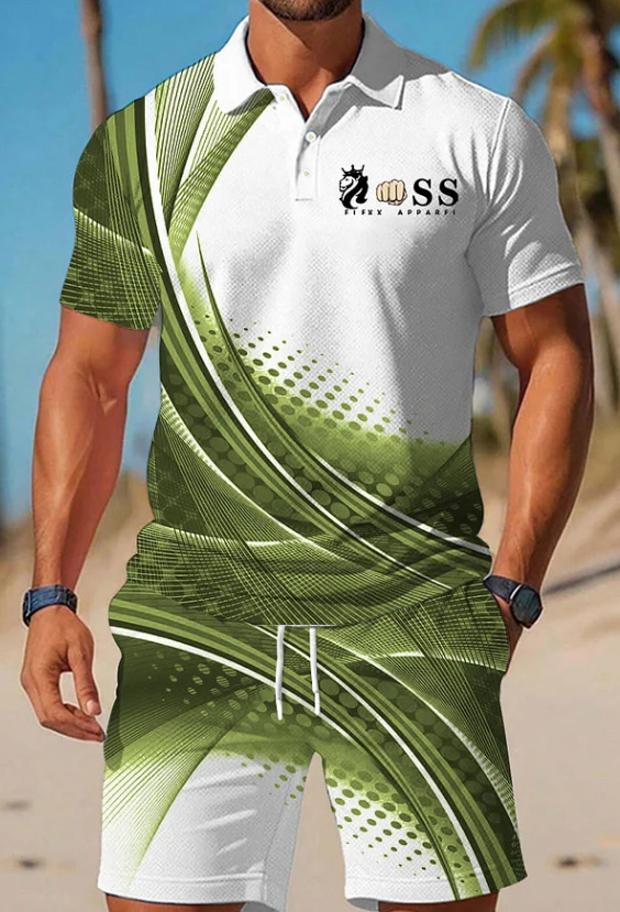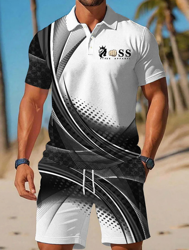 Самый продаваемый в Amazon европейский и американский трансграничный модный новый цветной мужской костюм-поло с короткими рукавами и 3D-цифровой печатью